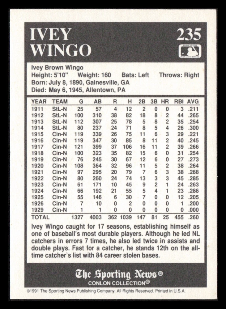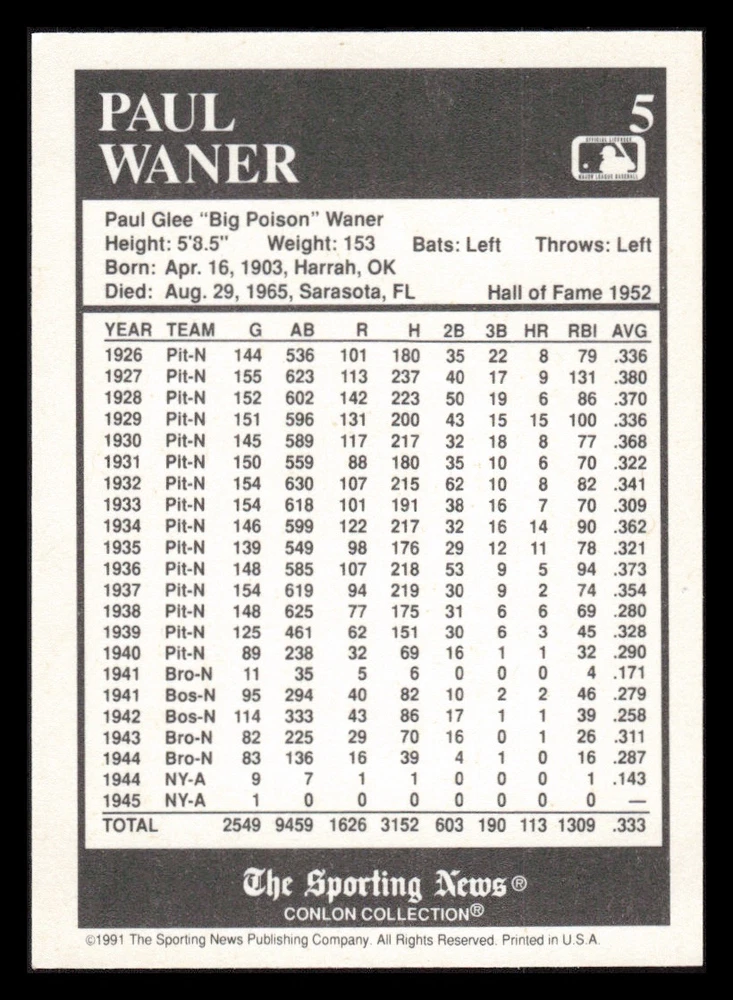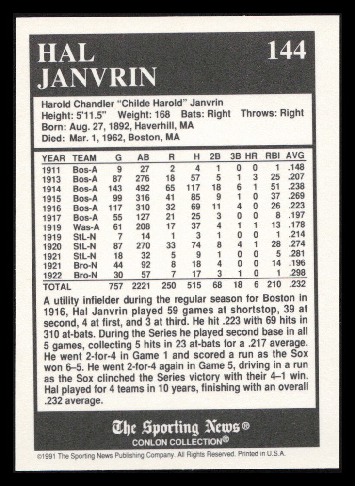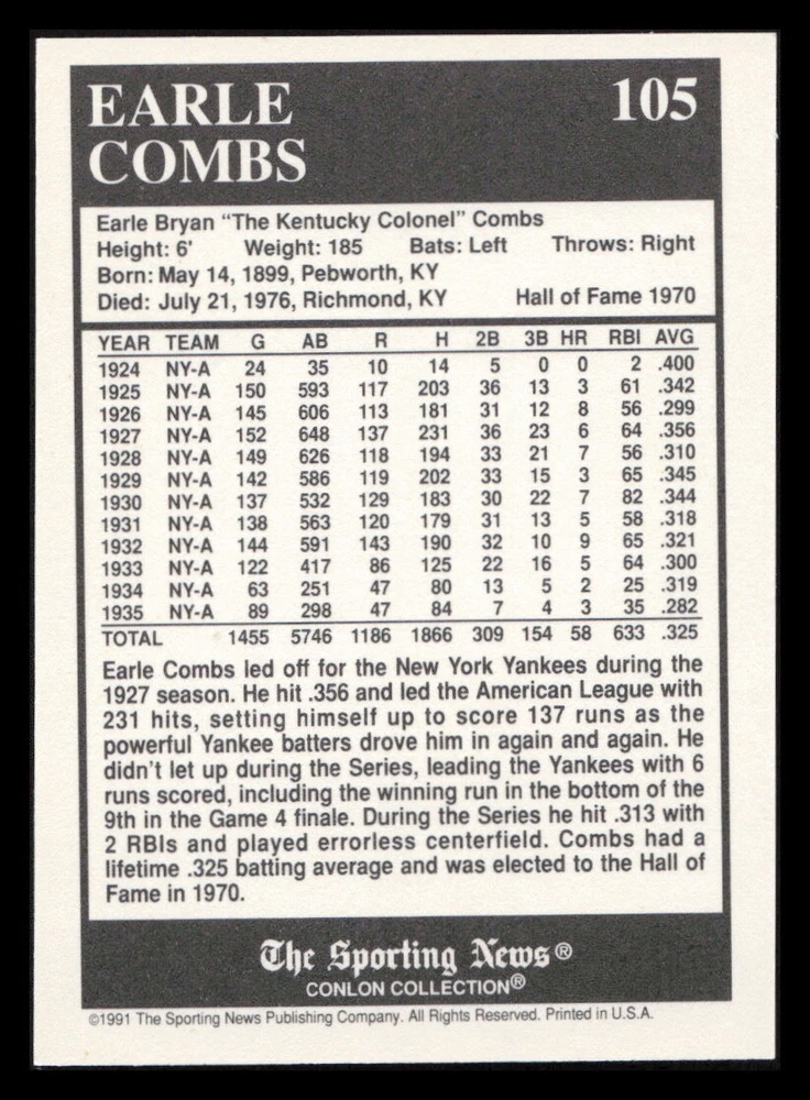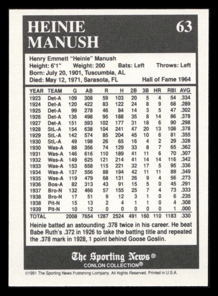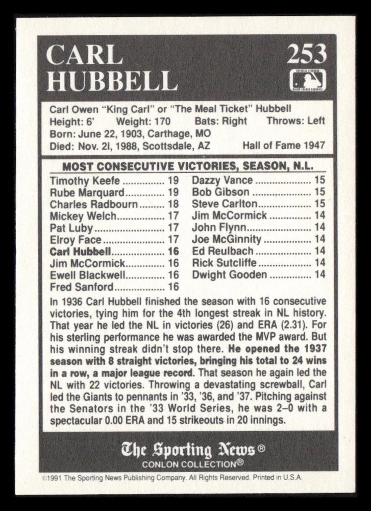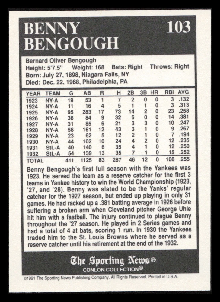 | Set | 1991 The Sporting News Conlon Collection |