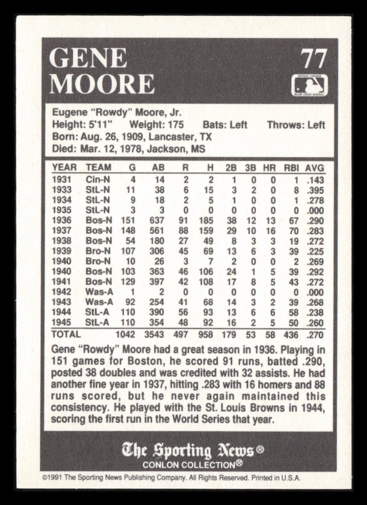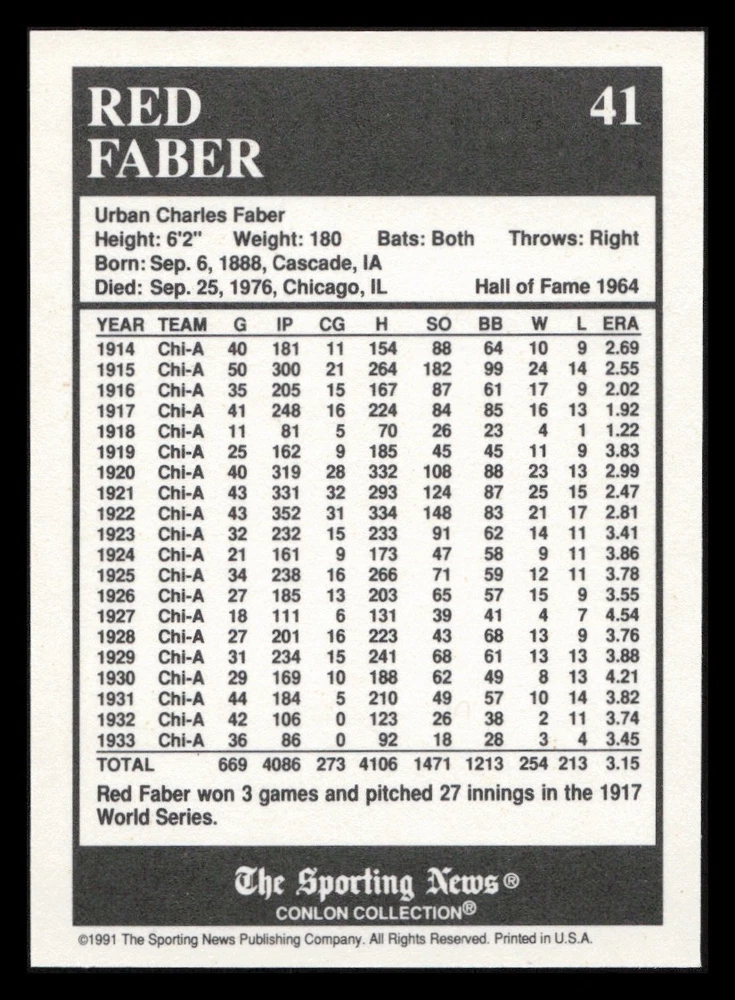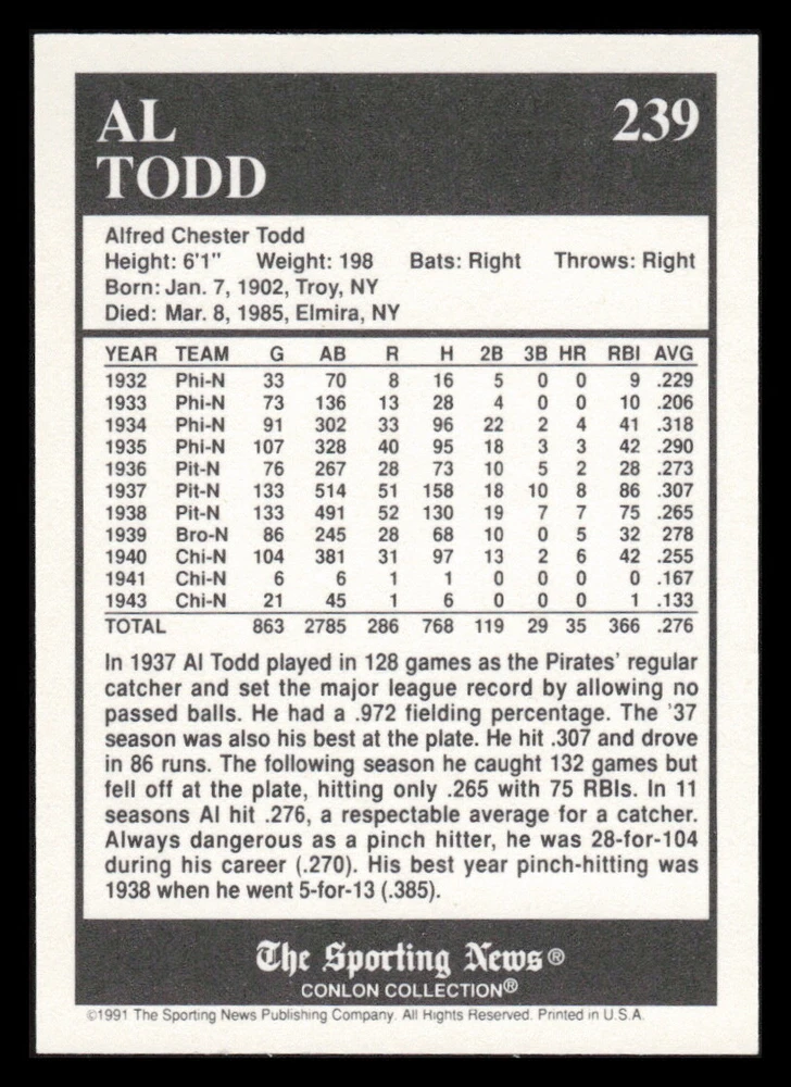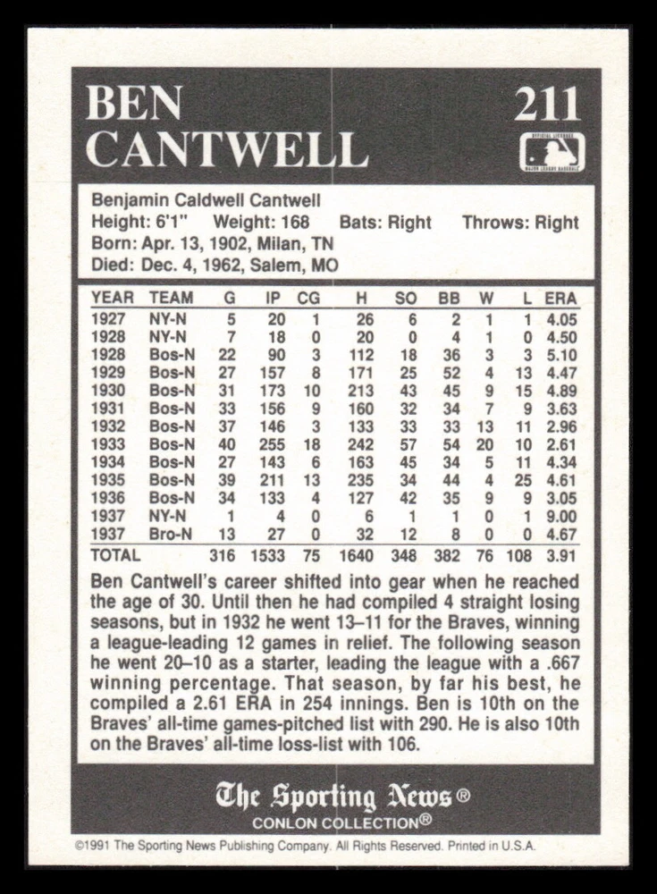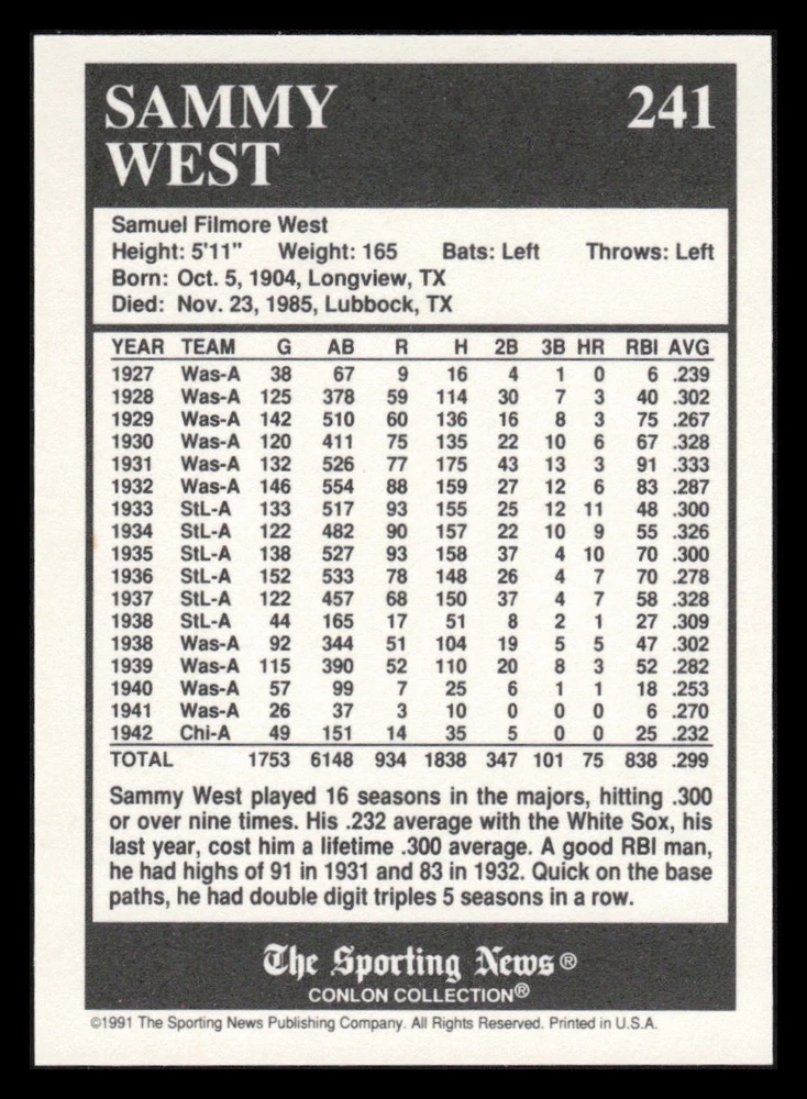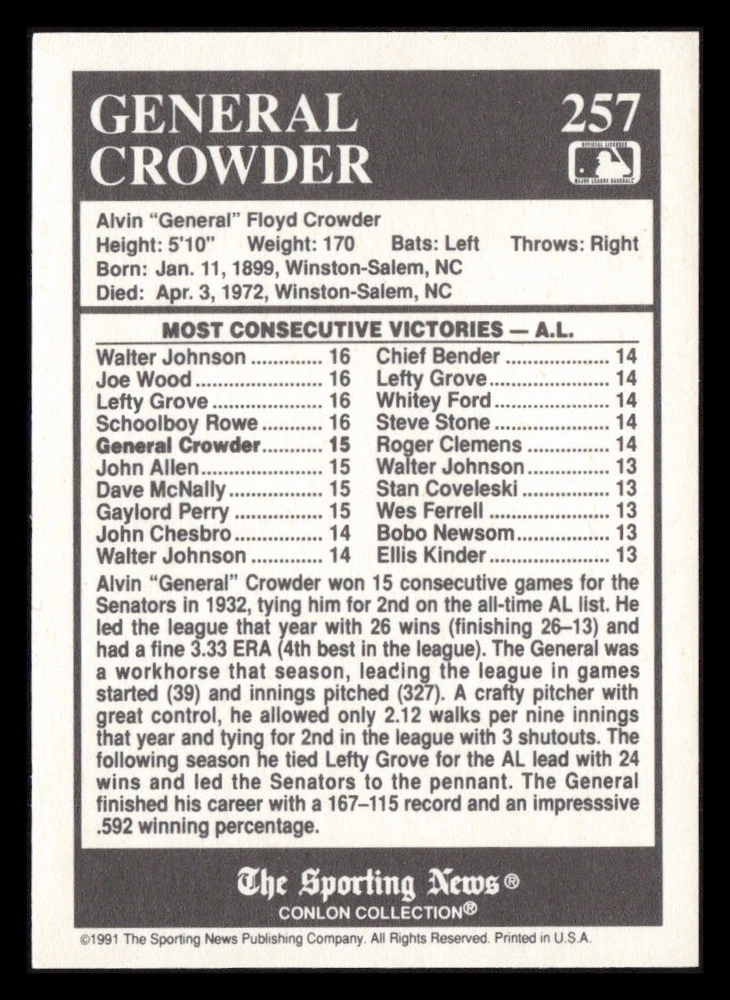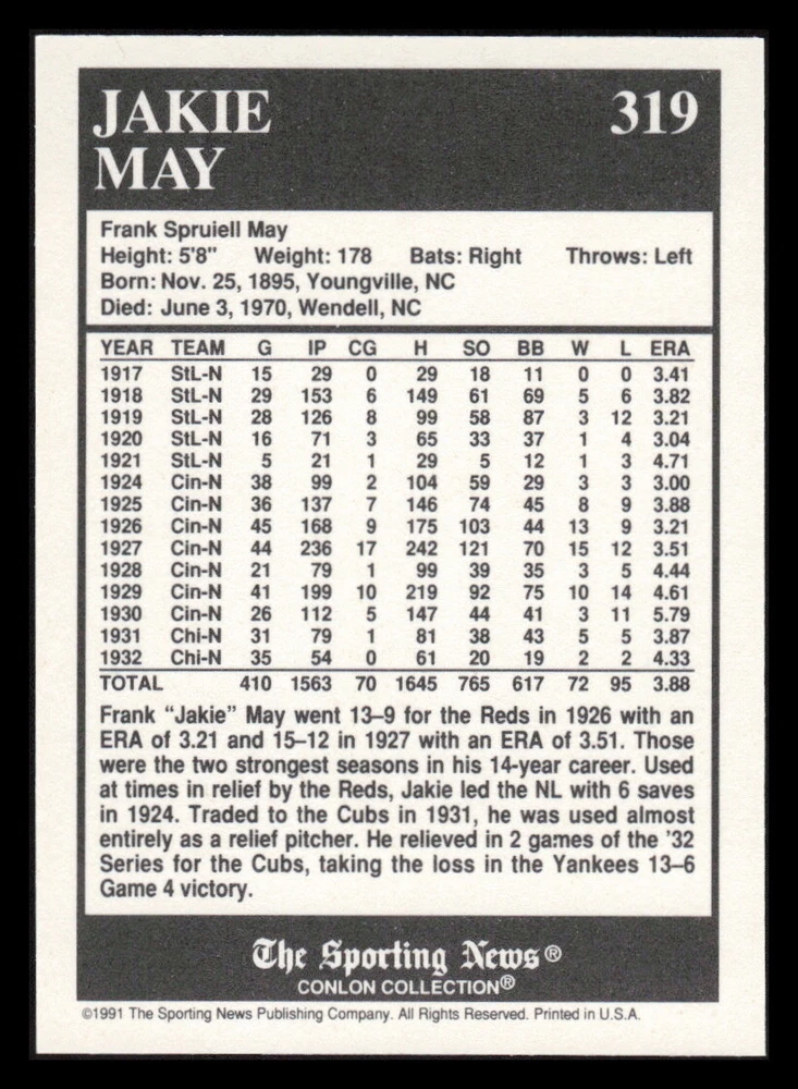 | Set | 1991 The Sporting News Conlon Collection |