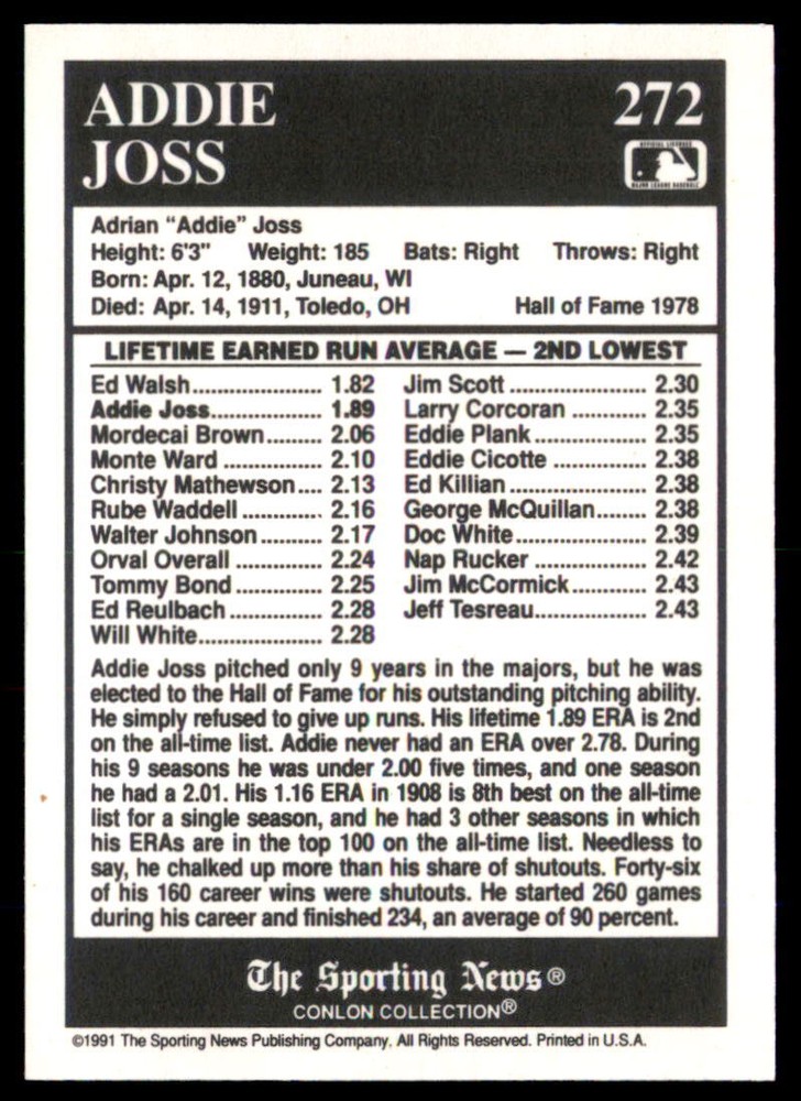 | Player/Athlete | Addie Joss |