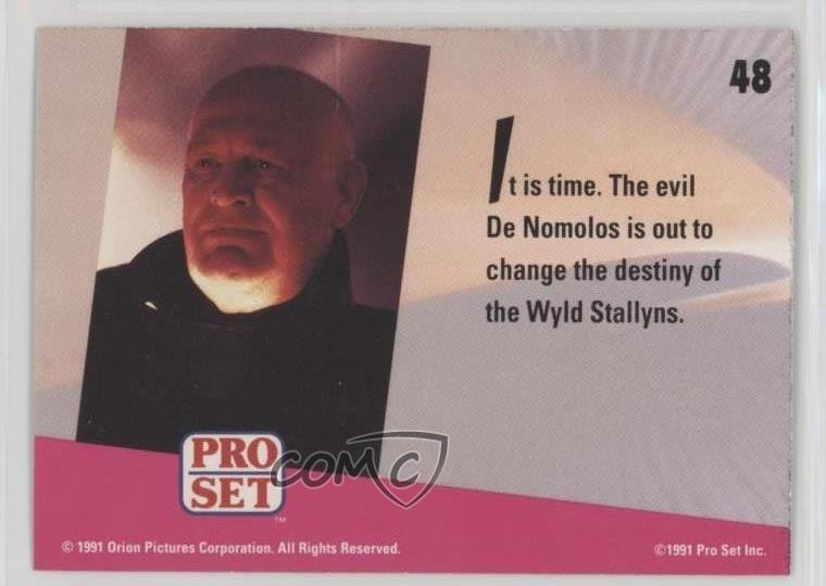 1991 Pro Set Bill & Ted's Most Atypical Movie Set - [Base] #48 It is time. The evil De Nomolos... COMC Item: 45774535 - Non-Sports Card - Featuring Joss Ackland Search for more: 1991 Pro Set Bill & Ted's Most Atypical Movie Set Search for more: 1991 Pro Set Bill & Ted's Most Atypical Movie Set - [Base] View all of our Listings Auctions Buy It Now About Us Located in the beautiful Pacific Northwest, COMC (Check Out My Cards) is the world's largest consignment service for trading card singles. More than 10,000 people have used our consignment service to list over 50 million trading cards. Find out how we can help you consign your items on eBay by contacting us through eBay messaging. COMC -- "The Safe & Easy Way to Buy & Sell" Raw Condition for Modern Cards Unless otherwise noted, raw modern cards are listed in Near Mint-Mint condition or better. A NM-MT card appears to be Mint at first glance, but upon closer inspection, may exhibit some of the following: minor print defects (e.g. roller marks, print line, dimple), minor scratches, slight edge wear, and slight corner wear. Centering is clearly visible in the images provided and does not factor into our condition assessment. Raw Condition for Vintage Cards Unless otherwise noted, raw vintage cards are listed in Excellent condition or better. An EX card may exhibit some of the following: minor rounding of corners, surface wear, print defects, light scratches, and slight edge wear/chipping. Centering is clearly visible in the images provided and does not factor into our condition assessment. Domestic Shipping Combined shipping for multiple items is available. To receive combined shipping, please ensure all desired items are in your eBay shopping cart before proceeding to checkout. eBay limits orders to 40 items per order. We automatically combine multiple orders placed on the same day. If you place multiple orders on the same day, please contact us to request a refund of applicable shipping costs. Signature confirmation may be required on invoices over $400. All cards are protected and shipped securely. International Shipping COMC offers eBay's International Shipping (EIS) for international orders under $2,500* (see country exceptions below). All duties and import fees are paid at checkout; in the rare event that there are additional import fees upon delivery, these are borne by the buyer. EIS packages route through a shipping hub in Erlanger, KY before shipping to their final destination. Please note that EIS does not allow for combined shipments. The shipping rates are determined by eBay and cannot be adjusted. *Maximum sale price exceptions: Colombia, Kuwait ($2,000); Taiwan ($1,539); Chile, Costa Rica, Guatemala, Honduras, Trinidad and Tobago ($1,000); Antigua and Barbuda, Aruba, Belize, Dominica, Grenada, Philippines, Saint Kitts and Nevis, Saint Lucia, Montserrat, Turks and Caicos Islands ($500); Dominican Republic, El Salvador ($200). Please request a shipping quote through eBay messaging for orders that exceed the maximum sale price supported by eBay's International Shipping. You will be responsible for all duties and import fees for international orders shipped outside the EIS. All cards are protected and shipped securely. Payment COMC does not accept offers on our cards through our eBay storefront. COMC utilizes eBay’s managed payments system. If you are experiencing difficulties making a payment, please contact eBay for assistance. Return Policy Returns are only accepted on the rare occasion the item is not as described. If you are making a return, please initiate the return process through eBay so a mailing label can be provided for you. Prior to listing, our expert team carefully assessed this item to represent it accurately. Please review the description and high-definition images prior to purchasing to ensure this item meets your satisfaction. We welcome you to contact us if you have further questions about this item. Trust and Integrity COMC carefully assesses each item consigned to us to prevent fraudulent items from entering the marketplace. If you believe an item offered on COMC may be fraudulent, please contact us with details so we can investigate the issue. Items we determine are outside our supported items policy may be removed. Last Modified: 7/12/2025 7:54:19 PM PDT