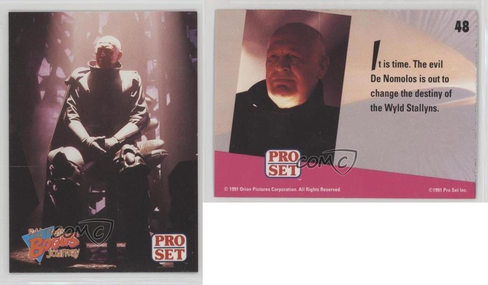 1991 Pro Set Bill & Ted's Most Atypical Movie Set - [Base] #48 It is time. The evil De Nomolos... COMC Item: 45774535 - Non-Sports Card - Featuring Joss Ackland Search for more: 1991 Pro Set Bill & Ted's Most Atypical Movie Set Search for more: 1991 Pro Set Bill & Ted's Most Atypical Movie Set - [Base] View all of our Listings Auctions Buy It Now About Us Located in the beautiful Pacific Northwest, COMC (Check Out My Cards) is the world's largest consignment service for trading card singles. More than 10,000 people have used our consignment service to list over 50 million trading cards. Find out how we can help you consign your items on eBay by contacting us through eBay messaging. COMC -- "The Safe & Easy Way to Buy & Sell" Raw Condition for Modern Cards Unless otherwise noted, raw modern cards are listed in Near Mint-Mint condition or better. A NM-MT card appears to be Mint at first glance, but upon closer inspection, may exhibit some of the following: minor print defects (e.g. roller marks, print line, dimple), minor scratches, slight edge wear, and slight corner wear. Centering is clearly visible in the images provided and does not factor into our condition assessment. Raw Condition for Vintage Cards Unless otherwise noted, raw vintage cards are listed in Excellent condition or better. An EX card may exhibit some of the following: minor rounding of corners, surface wear, print defects, light scratches, and slight edge wear/chipping. Centering is clearly visible in the images provided and does not factor into our condition assessment. Domestic Shipping Combined shipping for multiple items is available. To receive combined shipping, please ensure all desired items are in your eBay shopping cart before proceeding to checkout. eBay limits orders to 40 items per order. We automatically combine multiple orders placed on the same day. If you place multiple orders on the same day, please contact us to request a refund of applicable shipping costs. Signature confirmation may be required on invoices over $400. All cards are protected and shipped securely. International Shipping COMC offers eBay's International Shipping (EIS) for international orders under $2,500* (see country exceptions below). All duties and import fees are paid at checkout; in the rare event that there are additional import fees upon delivery, these are borne by the buyer. EIS packages route through a shipping hub in Erlanger, KY before shipping to their final destination. Please note that EIS does not allow for combined shipments. The shipping rates are determined by eBay and cannot be adjusted. *Maximum sale price exceptions: Colombia, Kuwait ($2,000); Taiwan ($1,539); Chile, Costa Rica, Guatemala, Honduras, Trinidad and Tobago ($1,000); Antigua and Barbuda, Aruba, Belize, Dominica, Grenada, Philippines, Saint Kitts and Nevis, Saint Lucia, Montserrat, Turks and Caicos Islands ($500); Dominican Republic, El Salvador ($200). Please request a shipping quote through eBay messaging for orders that exceed the maximum sale price supported by eBay's International Shipping. You will be responsible for all duties and import fees for international orders shipped outside the EIS. All cards are protected and shipped securely. Payment COMC does not accept offers on our cards through our eBay storefront. COMC utilizes eBay’s managed payments system. If you are experiencing difficulties making a payment, please contact eBay for assistance. Return Policy Returns are only accepted on the rare occasion the item is not as described. If you are making a return, please initiate the return process through eBay so a mailing label can be provided for you. Prior to listing, our expert team carefully assessed this item to represent it accurately. Please review the description and high-definition images prior to purchasing to ensure this item meets your satisfaction. We welcome you to contact us if you have further questions about this item. Trust and Integrity COMC carefully assesses each item consigned to us to prevent fraudulent items from entering the marketplace. If you believe an item offered on COMC may be fraudulent, please contact us with details so we can investigate the issue. Items we determine are outside our supported items policy may be removed. Last Modified: 3/21/2025 10:53:57 AM PDT