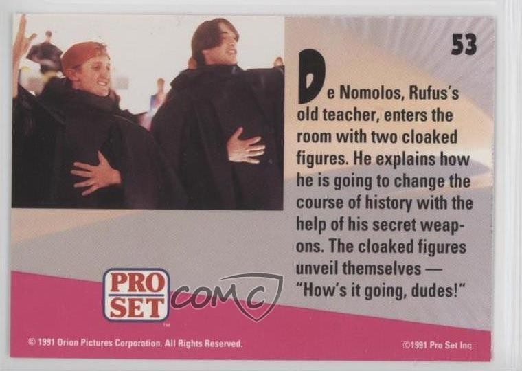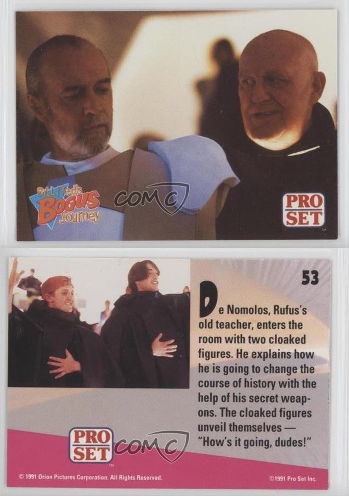 1991 Pro Set Bill & Ted's Most Atypical Movie Set - [Base] #53 De Nomolos, Rufus's old teacher… COMC Item: 45019476 - Non-Sports Card - Featuring Joss Ackland and George Carlin Search for more: 1991 Pro Set Bill & Ted's Most Atypical Movie Set Search for more: 1991 Pro Set Bill & Ted's Most Atypical Movie Set - [Base] View all of our Listings Auctions Buy It Now About Us Located in the beautiful Pacific Northwest, COMC (Check Out My Cards) is the world's largest consignment service for trading card singles. More than 10,000 people have used our consignment service to list over 50 million trading cards. Find out how we can help you consign your items on eBay by contacting us through eBay messaging. COMC -- "The Safe & Easy Way to Buy & Sell" Raw Condition for Modern Cards Unless otherwise noted, raw modern cards are listed in Near Mint-Mint condition or better. A NM-MT card appears to be Mint at first glance, but upon closer inspection, may exhibit some of the following: minor print defects (e.g. roller marks, print line, dimple), minor scratches, slight edge wear, and slight corner wear. Centering is clearly visible in the images provided and does not factor into our condition assessment. Raw Condition for Vintage Cards Unless otherwise noted, raw vintage cards are listed in Excellent condition or better. An EX card may exhibit some of the following: minor rounding of corners, surface wear, print defects, light scratches, and slight edge wear/chipping. Centering is clearly visible in the images provided and does not factor into our condition assessment. Domestic Shipping Combined shipping for multiple items is available. To receive combined shipping, please ensure all desired items are in your eBay shopping cart before proceeding to checkout. eBay limits orders to 40 items per order. We automatically combine multiple orders placed on the same day. If you place multiple orders on the same day, please contact us to request a refund of applicable shipping costs. Signature confirmation may be required on invoices over $400. All cards are protected and shipped securely. International Shipping COMC offers eBay's International Shipping (EIS) for international orders under $2,500* (see country exceptions below). All duties and import fees are paid at checkout; in the rare event that there are additional import fees upon delivery, these are borne by the buyer. EIS packages route through a shipping hub in Erlanger, KY before shipping to their final destination. Please note that EIS does not allow for combined shipments. The shipping rates are determined by eBay and cannot be adjusted. *Maximum sale price exceptions: Colombia, Kuwait ($2,000); Taiwan ($1,539); Chile, Costa Rica, Guatemala, Honduras, Trinidad and Tobago ($1,000); Antigua and Barbuda, Aruba, Belize, Dominica, Grenada, Philippines, Saint Kitts and Nevis, Saint Lucia, Montserrat, Turks and Caicos Islands ($500); Dominican Republic, El Salvador ($200). Please request a shipping quote through eBay messaging for orders that exceed the maximum sale price supported by eBay's International Shipping. You will be responsible for all duties and import fees for international orders shipped outside the EIS. All cards are protected and shipped securely. Payment COMC does not accept offers on our cards through our eBay storefront. COMC utilizes eBay’s managed payments system. If you are experiencing difficulties making a payment, please contact eBay for assistance. Return Policy Returns are only accepted on the rare occasion the item is not as described. If you are making a return, please initiate the return process through eBay so a mailing label can be provided for you. Prior to listing, our expert team carefully assessed this item to represent it accurately. Please review the description and high-definition images prior to purchasing to ensure this item meets your satisfaction. We welcome you to contact us if you have further questions about this item. Trust and Integrity COMC carefully assesses each item consigned to us to prevent fraudulent items from entering the marketplace. If you believe an item offered on COMC may be fraudulent, please contact us with details so we can investigate the issue. Items we determine are outside our supported items policy may be removed. Last Modified: 5/7/2025 8:03:06 PM PDT