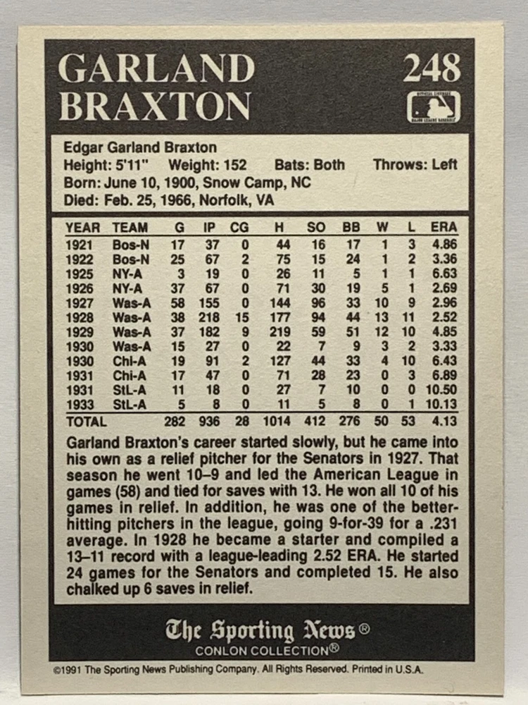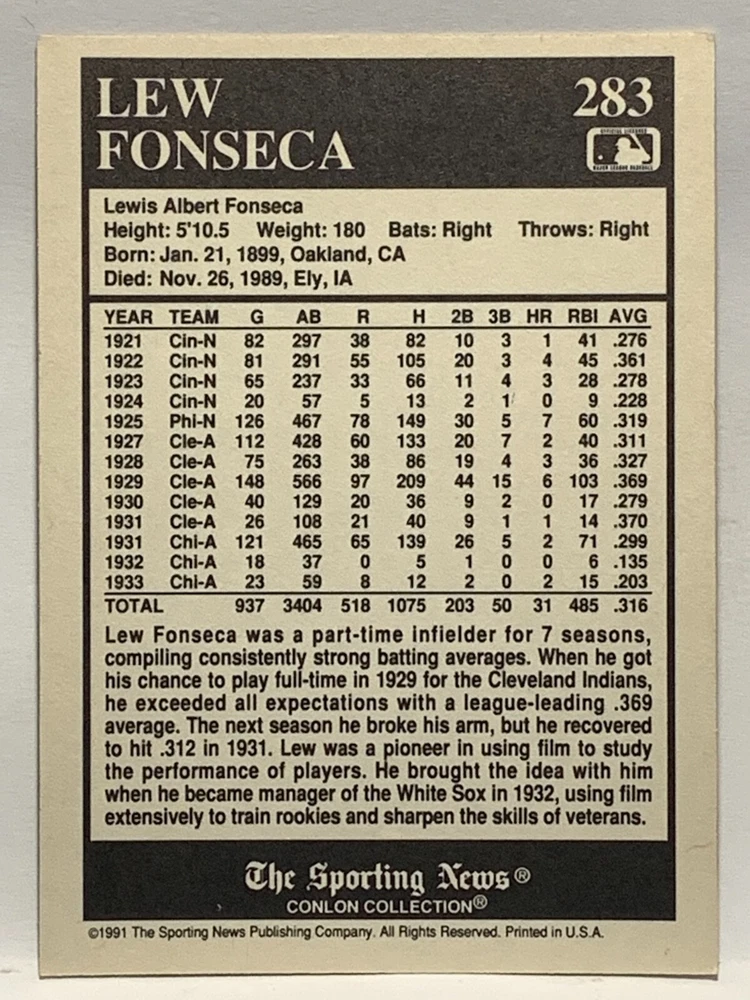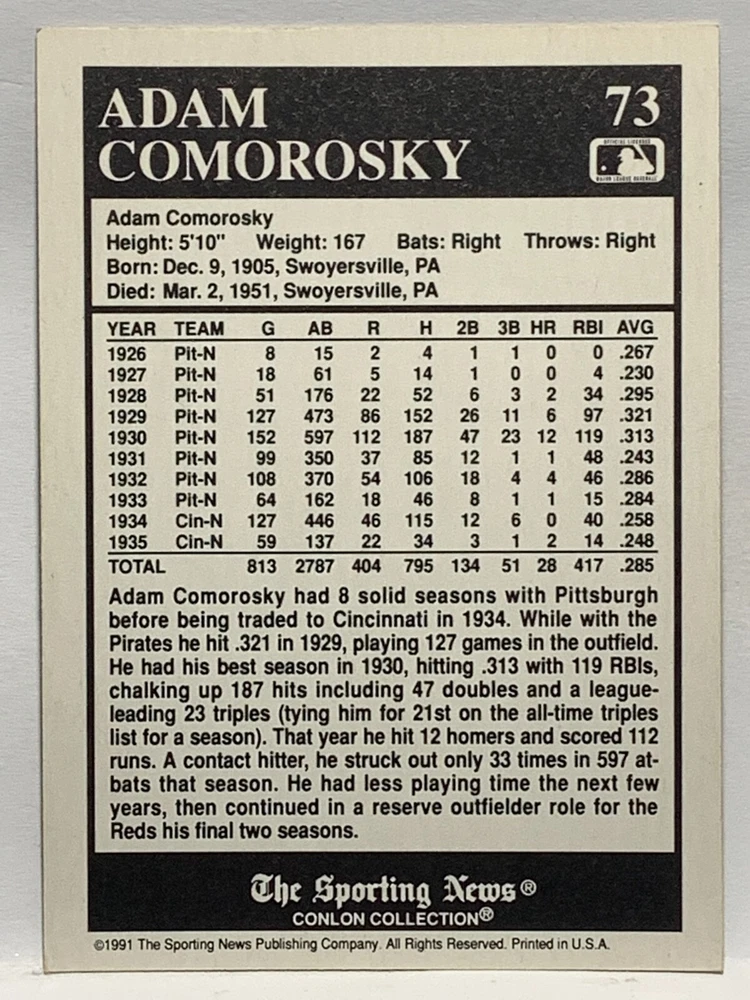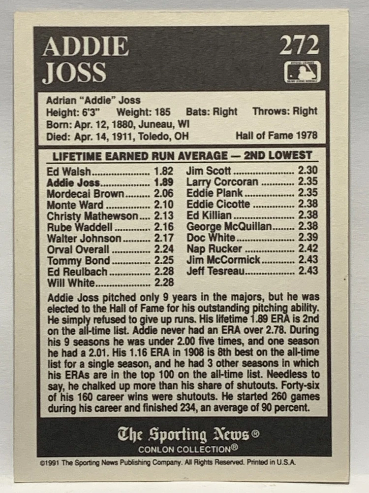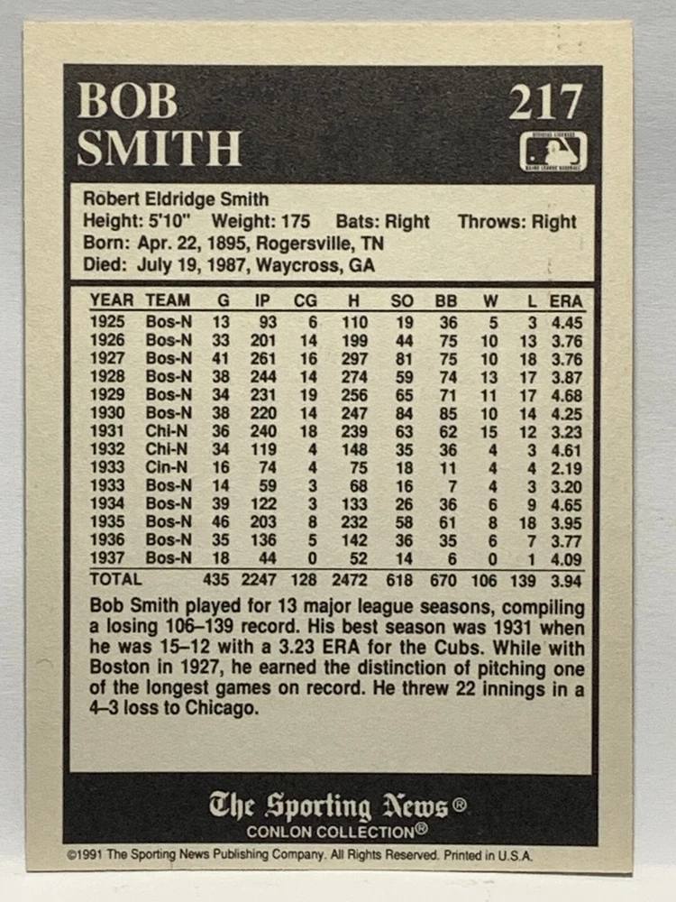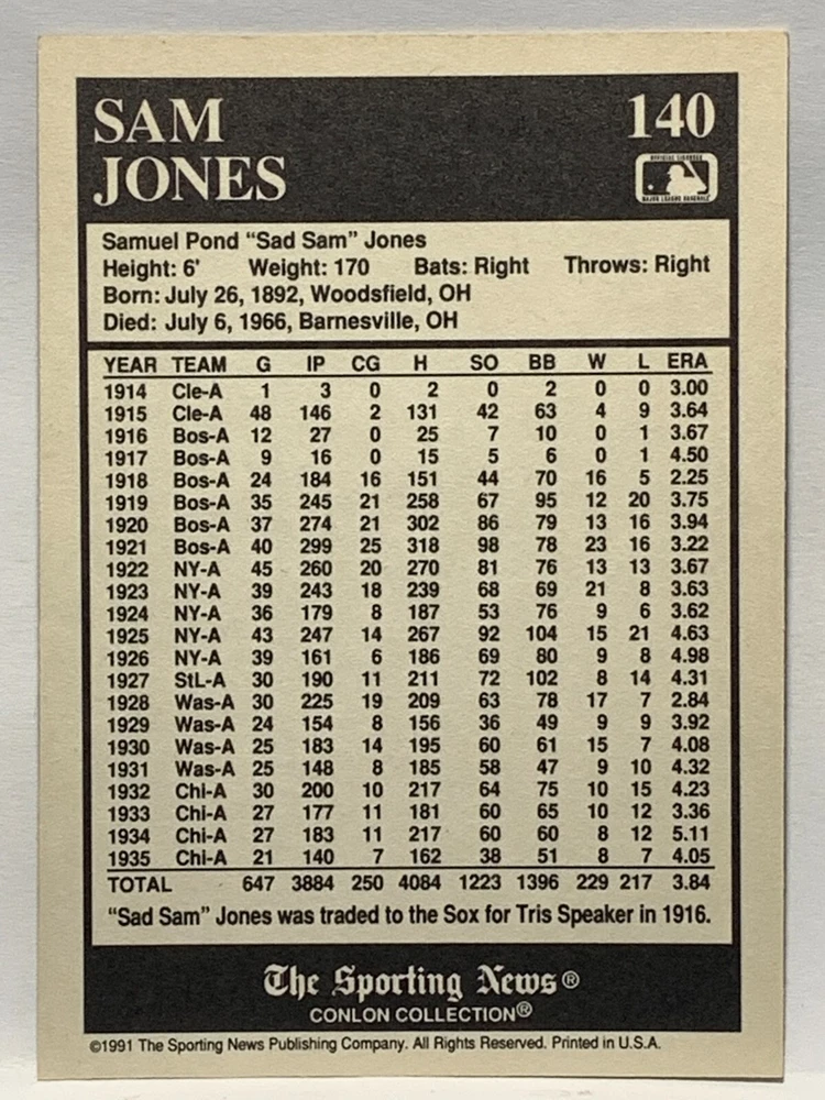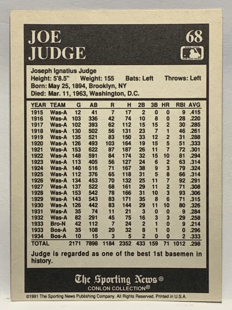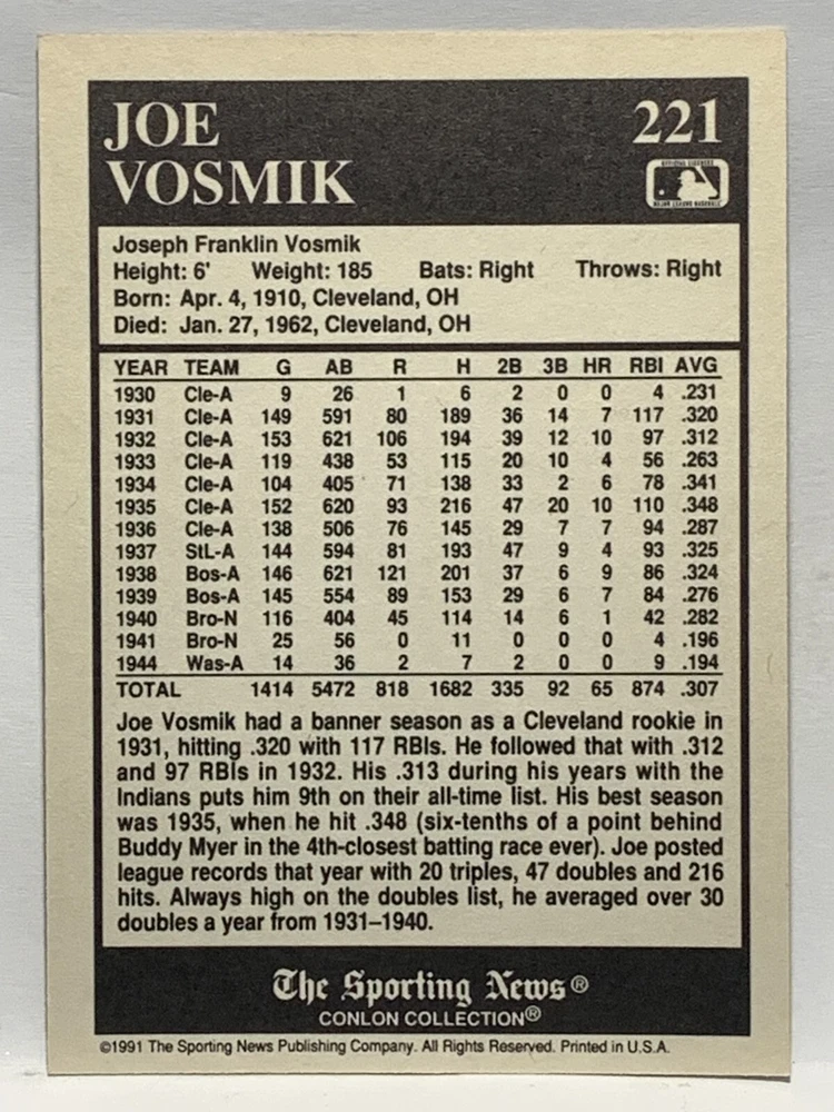 The 1991 Sporting News - Conlon Collection Baseball trading card set features cards numbered 1-325, with notable players like Babe Ruth, Honus Wagner, and Hank Greenberg from Major League Baseball. This collectors' edition set includes a checklist and is considered near mint or better in condition. Manufactured by The Sporting News, this set is a valuable addition to any baseball card collection, with cards representing various teams such as the New York Yankees, New York Giants, and St. Louis Cardinals for the 2022 season.