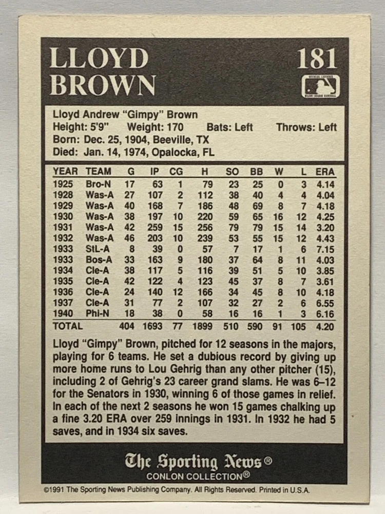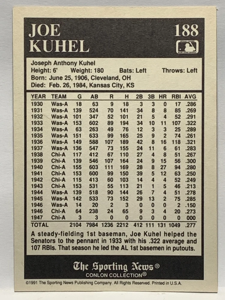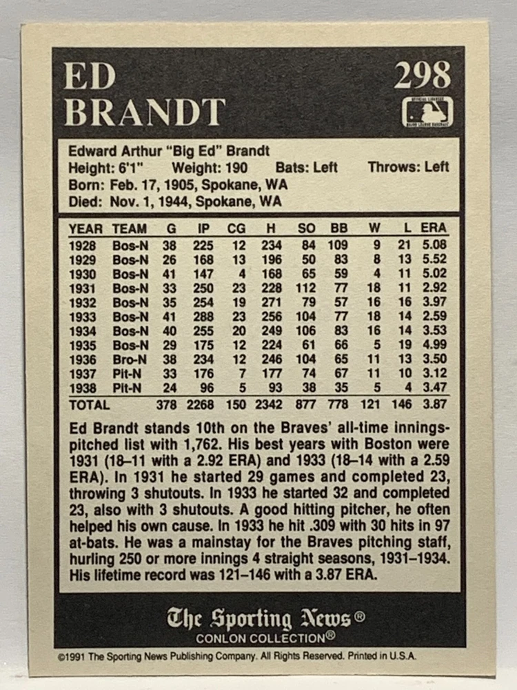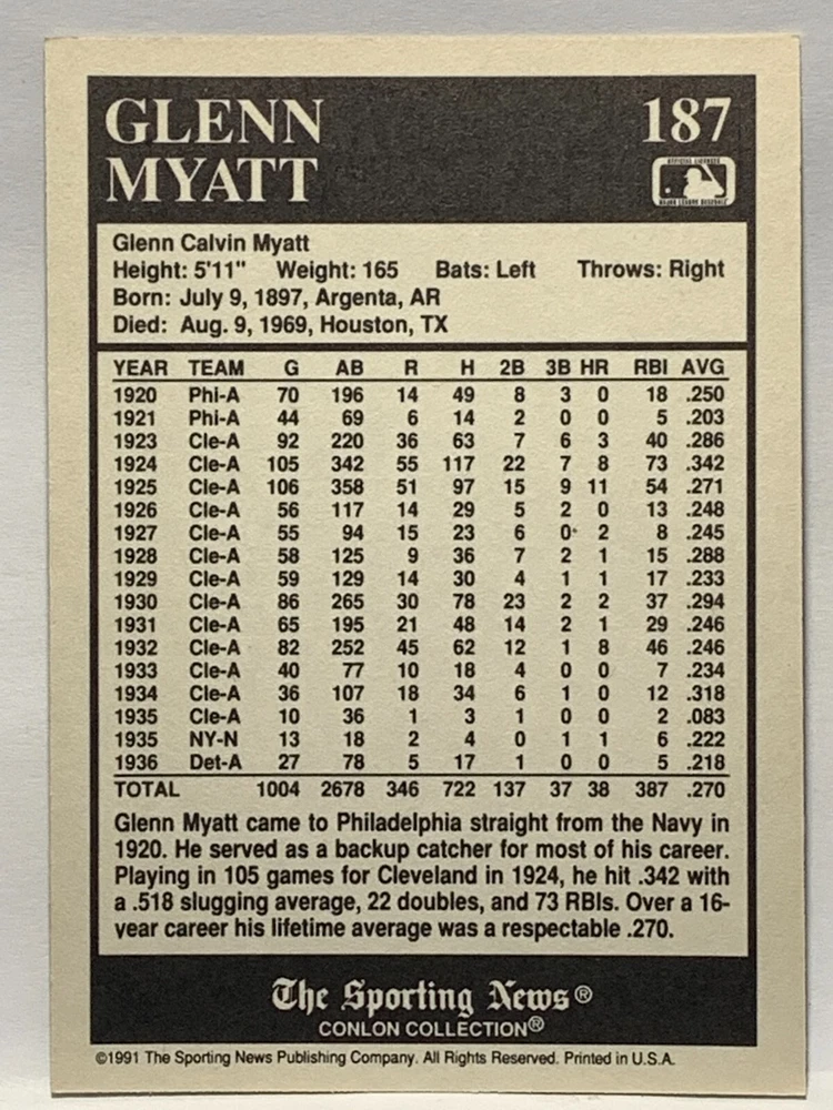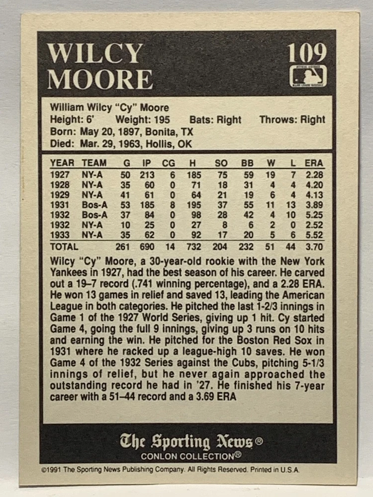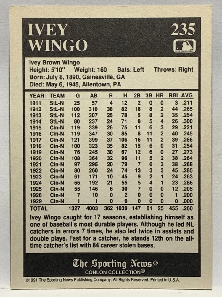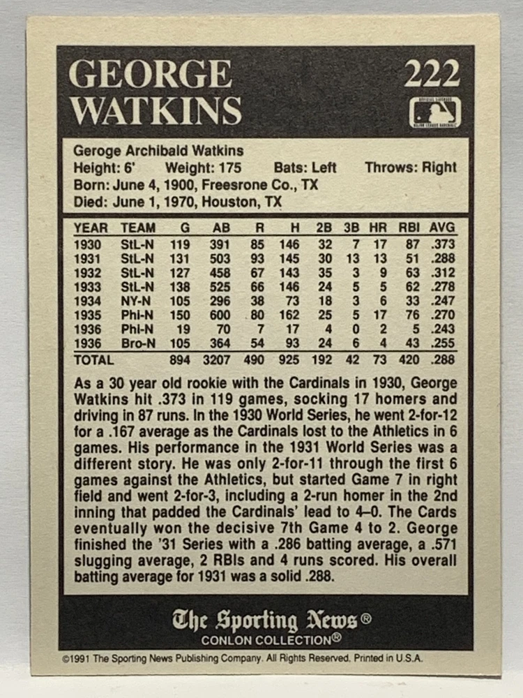 The 1991 Sporting News - Conlon Collection Baseball trading card set features cards numbered 1-325, with notable players like Babe Ruth, Honus Wagner, and Hank Greenberg from Major League Baseball. This collectors' edition set includes a checklist and is considered near mint or better in condition. Manufactured by The Sporting News, this set is a valuable addition to any baseball card collection, with cards representing various teams such as the New York Yankees, New York Giants, and St. Louis Cardinals for the 2022 season.