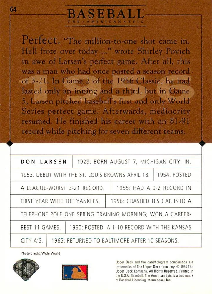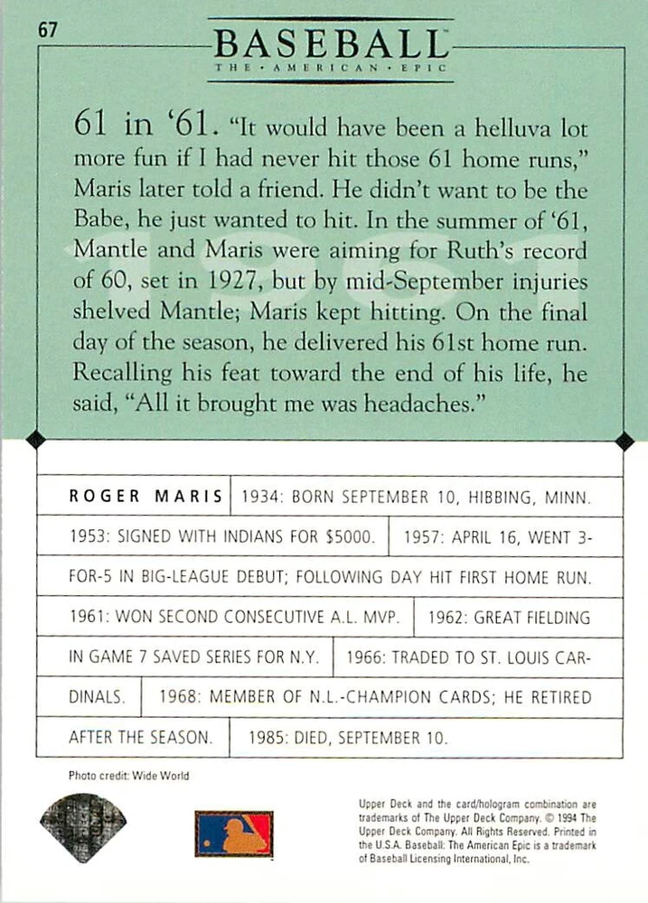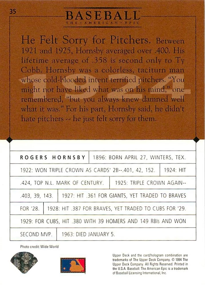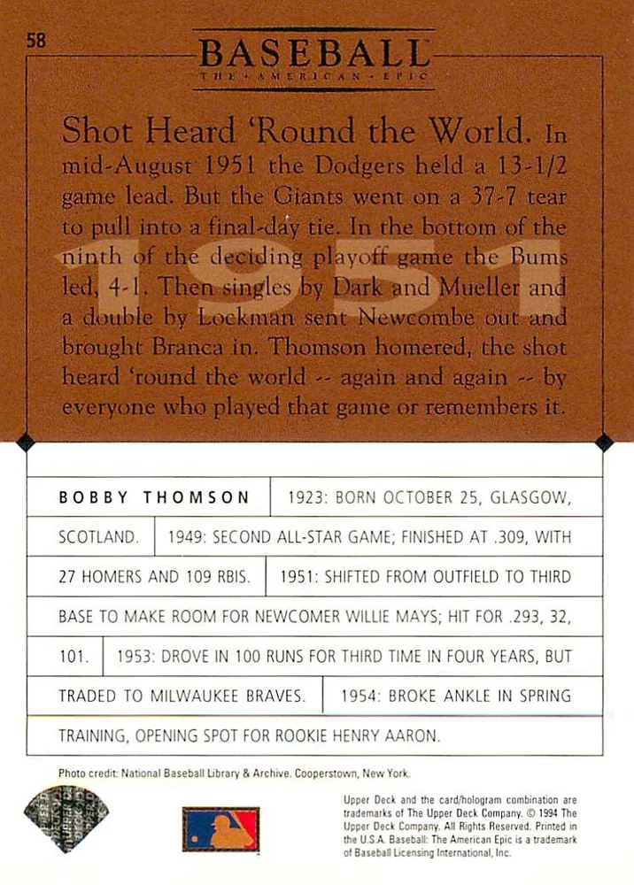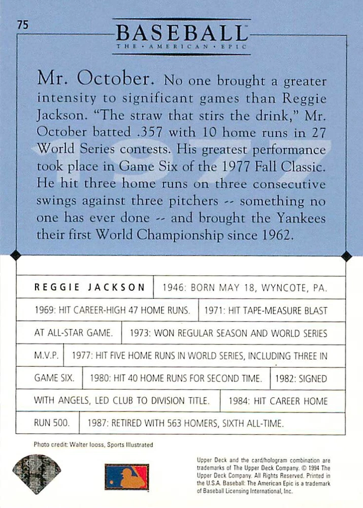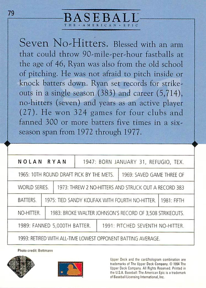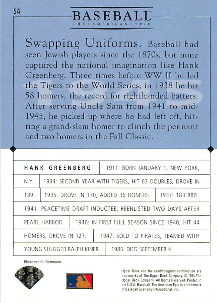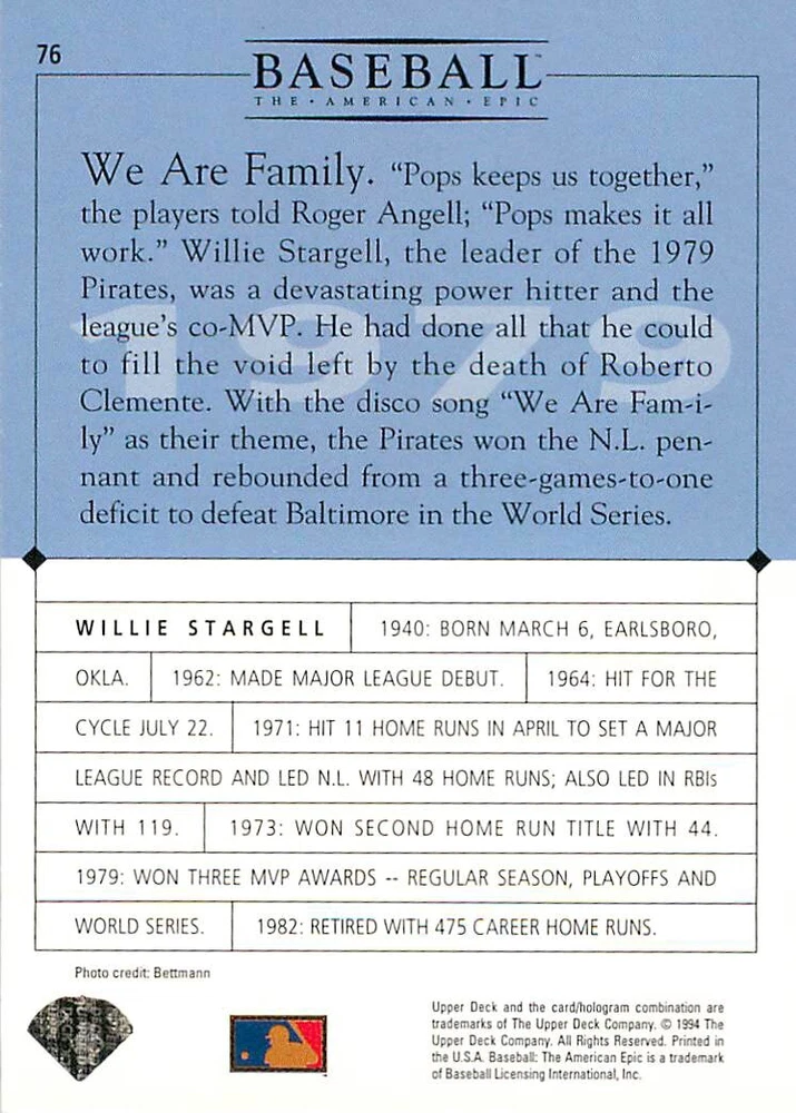 1994 Upper Deck Ken Burns Baseball THE AMERICAN EPIC - Your Choice - Baseball Card Stock pictures. We always ship the best available card, and all cards of this set go straight from the original package into a soft sleeve. Please ask for a picture of the card you want before paying if needed. $0.99 Shipping with tracking for as many cards as you'd like, if paid with one payment! Add cards to your cart from this or any of our other listings before paying for combined shipping and discounts up to 20%! 1800's Our Game 1845 Alexander Cartwright 1857 Henry Chadwick 1866 The Fair Sex 1869 Harry Wright 1876 Albert Goodwill Spaulding 1883 Cap Anson 1884 Moses Fleetwood Walker 1886 King Kelly 1890 John Montgomery Ward 1909 Ty Cobb 1904 John McGraw 1904 Rube Waddell 1905 Christy Mathewson 1907 Walter Johnson 1908 Alta Weiss 1908 Fred Merkle 1908 'Take Me Out to the Ballgame' 1909 John Henry 'Pop' Lloyd 1909 Honus Wagner 1915 Woodrow Wilson 1910 Nap Lajoie 1911 Addie Joss 1912 Joe Wood 1912 Royal Rooters 1913 Ebbets Field 1914 Johnny Evers 1918 World War I 1919 Shoeless Joe Jackson 1927 Babe Ruth 1920 George 'Rube' Foster 1920 Ray Chapman 1921 Kenesaw M. Landis 1923 Yankee Stadium 1924 Rogers Hornsby 1923 Warren G. Harding 1925 Lou Gehrig 1926 Grover C. Alexander 1929 House of David 1933 Satchel Paige 1931 Lefty Grove 1932 Jimmie Foxx 1932 Connie Mack 1937 Josh Gibson 1934 Dizzy Dean 1934 Carl Hubbell 1937 Franklin D. Roosevelt 1938 Bob Feller 1939 Cool Papa Bell 1947 Jackie Robinson 1941 Ted Williams 1941 Sym-phony Band 1944 Annabel Lee 1945 Hank Greenberg 1947 Branch Rickey 1948 Harry S. Truman 1953 Casey Stengel 1951 Bobby Thomson 1952 Dwight D. Eisenhower 1952 Mario Cuomo 1954 Buck O'Neil 1955 Yogi Berra 1956 Mickey Mantle 1956 Don Larsen 1961 John F. Kennedy 1960 Bill Mazeroski 1961 Roger Maris 1966 Frank Robinson 1968 Bob Gibson 1969 Tom Seaver 1969 Curt Flood 1972 Roberto Clemente 1975 Luis Tiant 1975 Marvin Miller 1977 Reggie Jackson 1979 Willie ' Pops' Stargell 1985 Pete Rose 1994 Bill Clinton 1991 Nolan Ryan 1993 George Brett Checklist/Title Card Economy Shipping: More than just a Plain White Envelope!! $0.99 USPS domestic shipping in a soft sleeve, toploader or cardsaver, team bag and cardboard mailer with tracking. Combined Shipping: Yes. No additional shipping charge for additional single cards . (The highest shipping charge of any single item will be the cost for the entire order.) You must add your cards to the Shopping Cart to get combined shipping. When you have all your cards in the Shopping Cart, click on the note "Request total from seller" (to the right of our store name). Please wait for an invoice with the combined shipping fees before paying. If you should have any questions, please contact us prior to paying for your items. Card Scans: Stock pictures. We always ship the best available card, and all cards of this set go straight from the original package into a soft sleeve. Please ask for a picture of the card you want before paying if needed. Returns: We offer a 30-day return policy. However, we are not responsible for shipping damage via Economy Shipping. Please contact us via eBay messages if you are unsatisfied with a card that you purchase from us. We carefully pack and ship each order, and provide tracking. We do not charge re-stocking fees. Shipping fees are not refundable, unless the error lies with how we described the card. Again, please look at the scans carefully. Feedback: We will provide prompt feedback as soon as you have received your card(s) and provided feedback for us. Our goal is 100% positive feedback, so please contact us via eBay messages if there are any issues with your shipment to see if we can provide a solution. Thanks for looking!