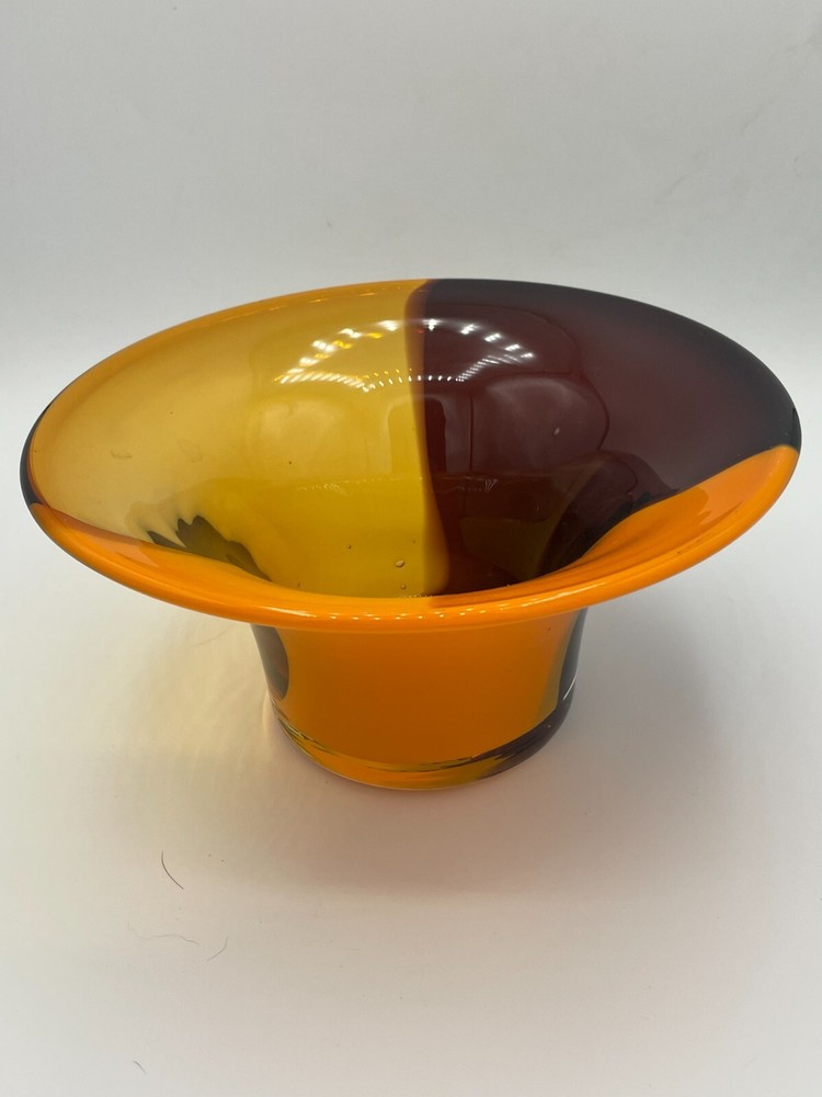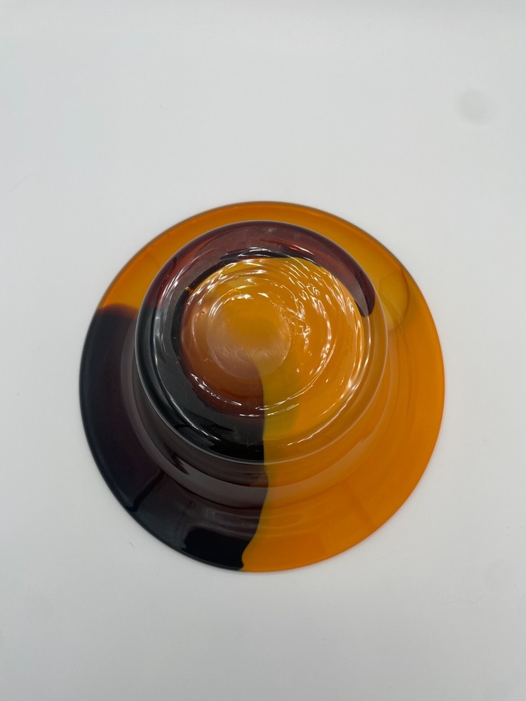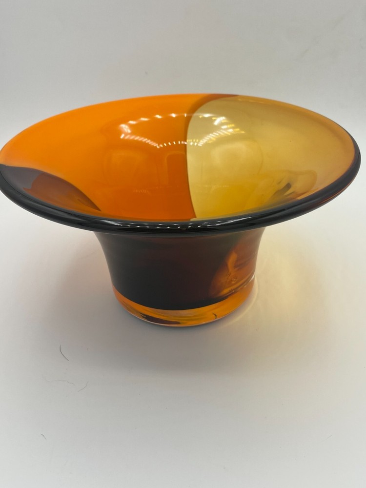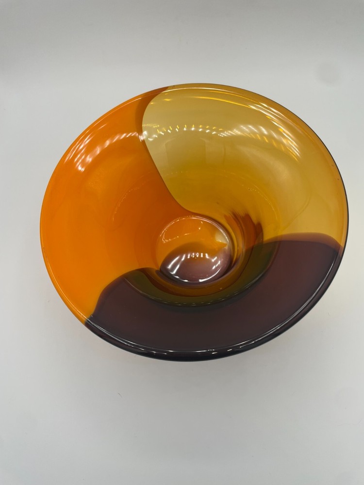 (1D) Mid century modern style hand blown glass orange swirl Teleflora bowl There is no damage to this bowl. It is quite pretty in person. I welcome your offers on any of my treasure listings....
