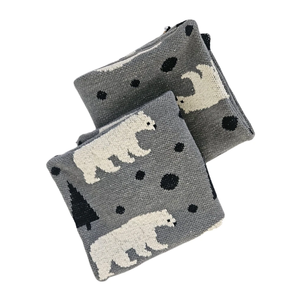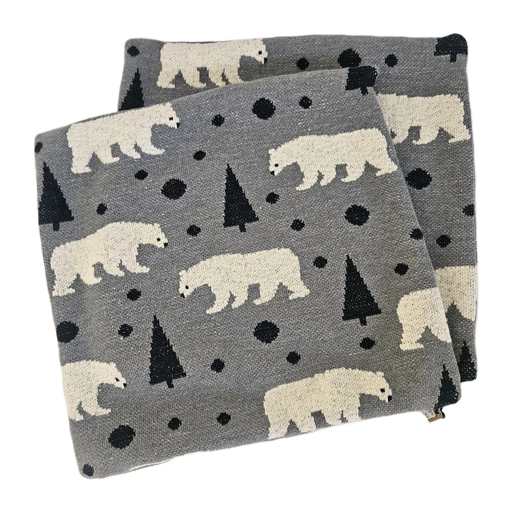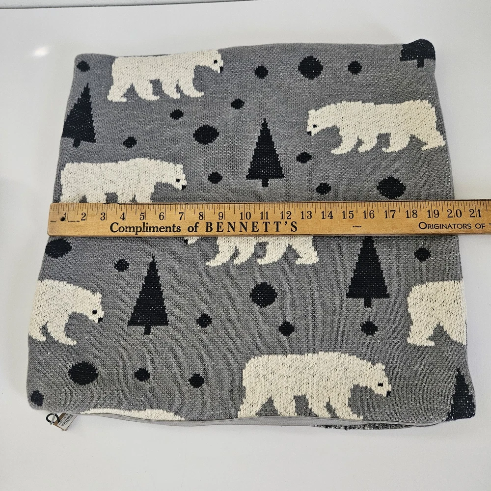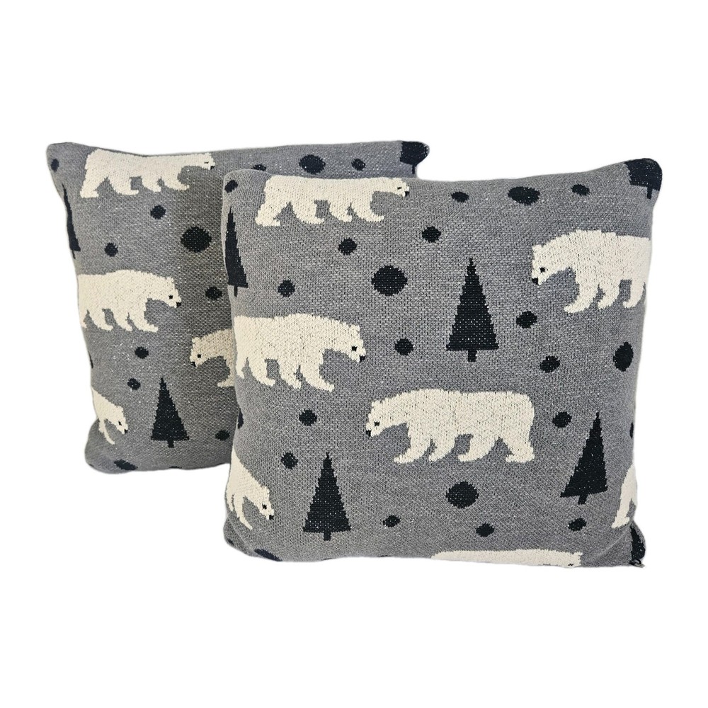 These are two square decorative pillow COVERS ONLY feature a wildlife theme with polar bears and pine trees. Made in India of 100% cotton in black, white, and gray colors, each cover measures 20 x 20 inches. The covers are double-sided and designed for indoor use, adding a creative touch to your home decor. They have a zipper on one side to easily insert your favorite pillow and can be machine washed and dried. The cotton weave is thick, nice and cozy with a simple design. Please checkout my eBay store for other fun vintage finds. I'm always glad to combineshipping when possible. THANKS FORSTOPPING BY!
