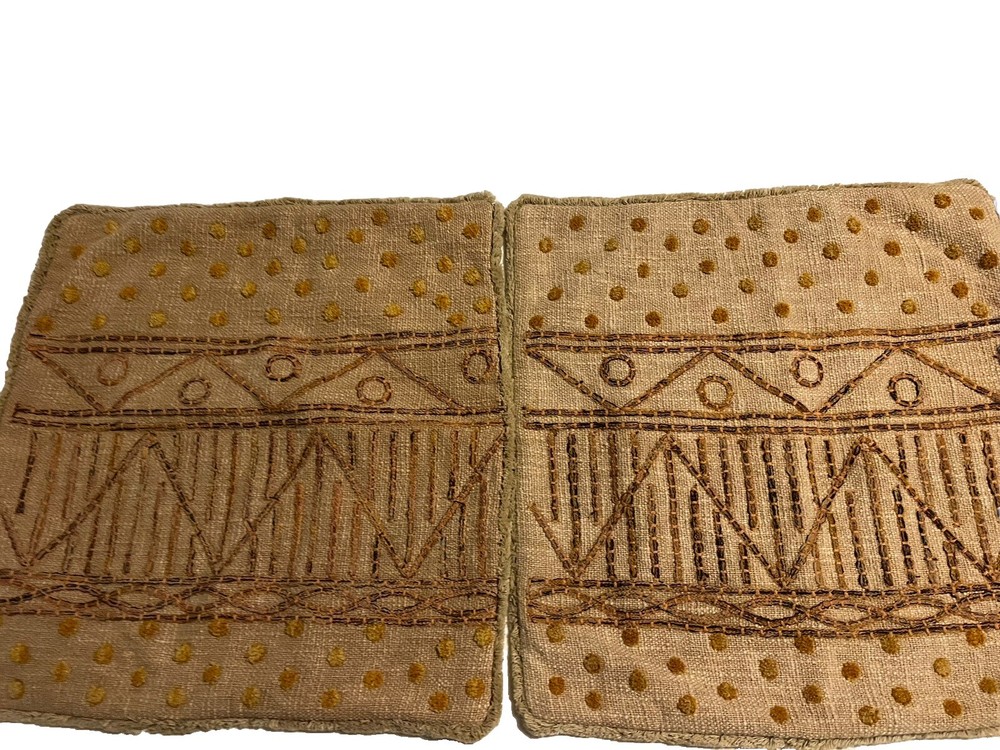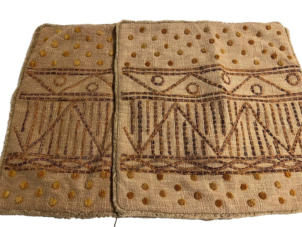 2 Creative Co-Op Pillow Covers-Embroidered-Zip Closure- Made in India-Textured Bohemian-No Pillow Forms-Covers Only ....... Box 45: creativecoop2 This item has a 3 day Shipping/Handling time. When possible, it will ship earlier. Approx. 18" x 18". Listed as Pre-Owned, but in Good Condition. Zipper in the back for closure. NO Filling or pillowforms. The fabric is texturized and embroidered, with Fringe. Bohemian look. The back is a nice woven light brown. No damage found. Great set of decorative pillow covers. The item's color as depicted in this listing should only be used as a guide, as your monitor may show the colors differently. Vintage items are not perfect.