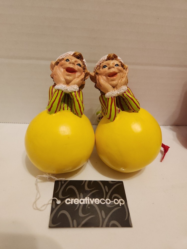 Bring home these delightful Green Elf Figures from Creative Co-op. Perfect for the holiday season, these medium-sized figurines come in a set of two, each sitting on a yellow ball. The elves are beautifully crafted in charming shades of green and are sure to add a touch of whimsy to your décor. These collectibles are not to be missed and would make a wonderful addition to any collection. The brand, Creative Co-op, is known for its quality products and attention to detail, ensuring that these figures are both durable and attractive. Don't miss out on the opportunity to bring home these enchanting elves!