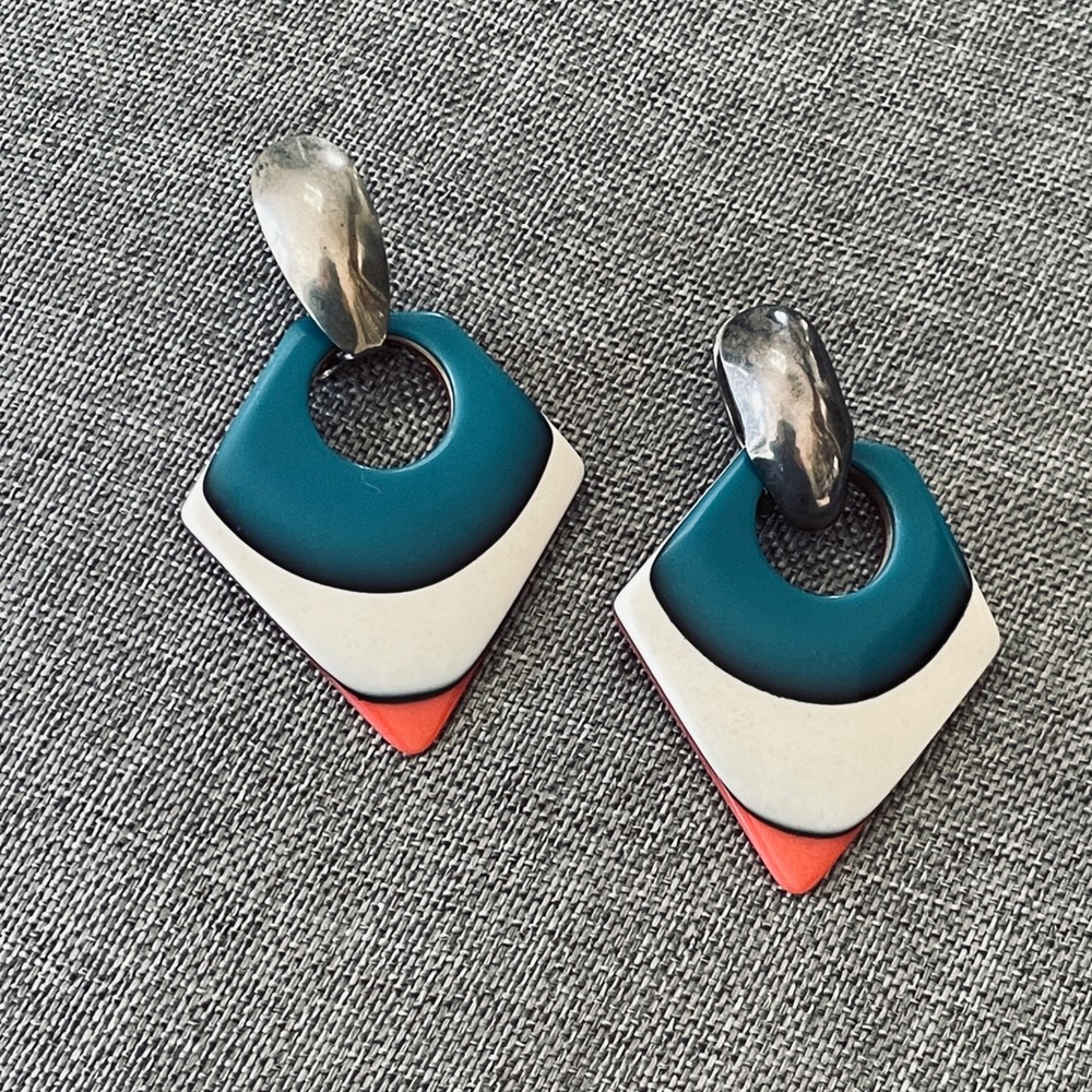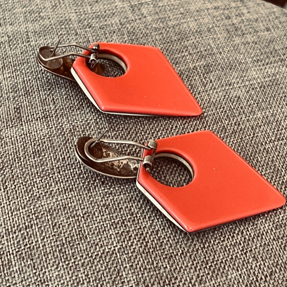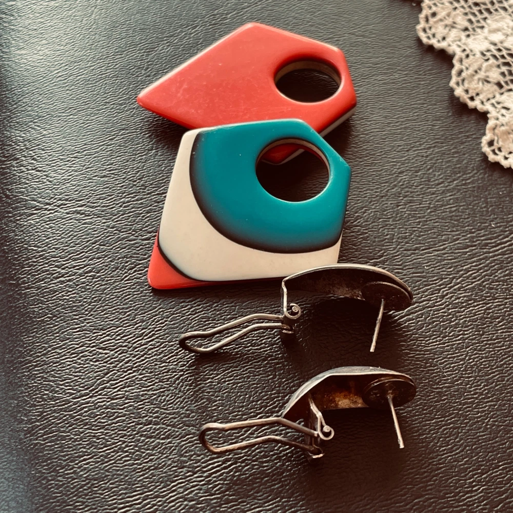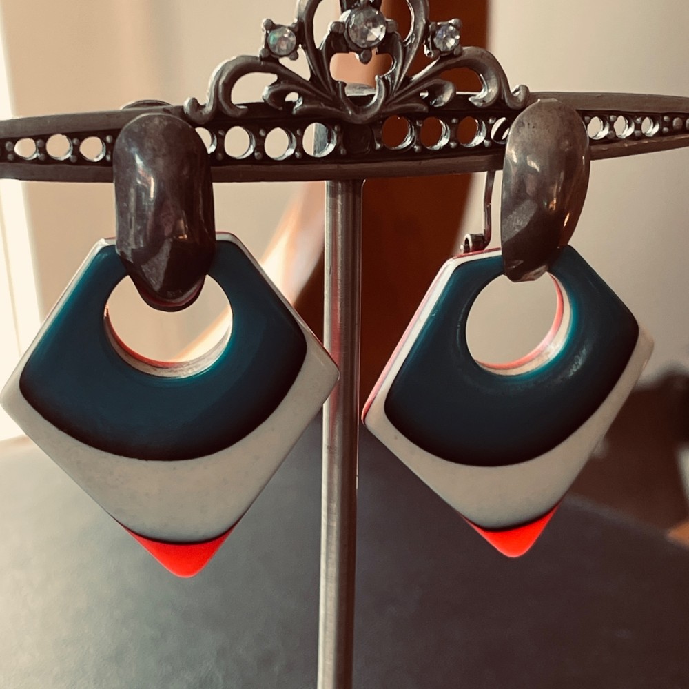 2" Muti Layer MOD Pop Era Acrylic Mid Century Art Earrings READ 2" Muti Layer MOD Pop Era Acrylic Mid Century Art Earrings READ Acrylic is Very Good Metal Part is Pierced and has vintage age and corrosion Needs New Ears Attachments or restoration Solid Orange Mango Back Blue White Black Orange - Art Style Shipping Included w lovelinnea Thank You Listing and template services provided by inkFrog