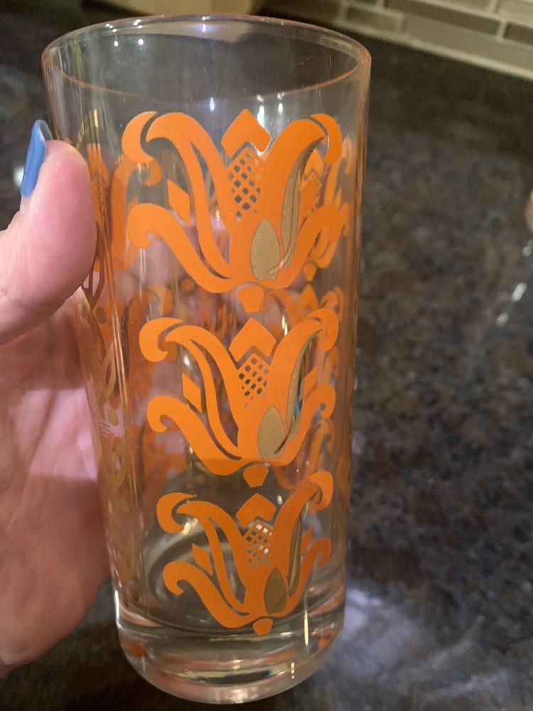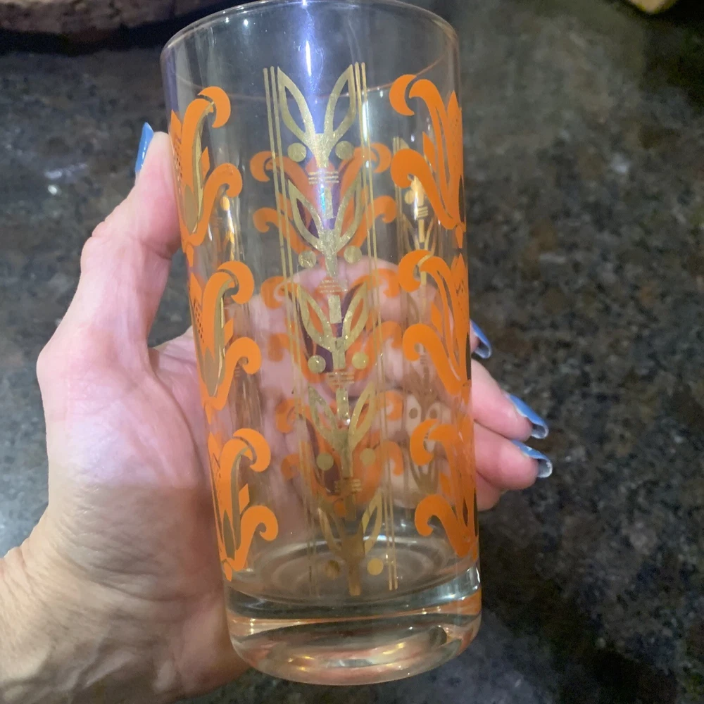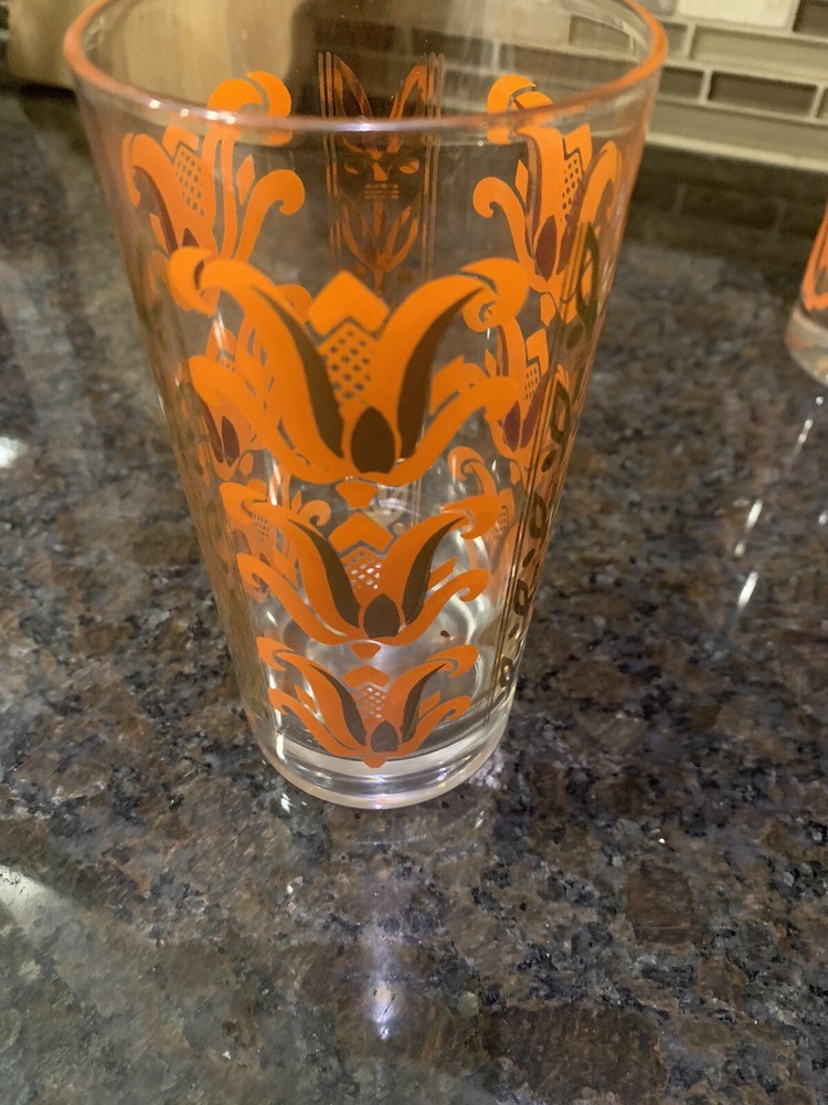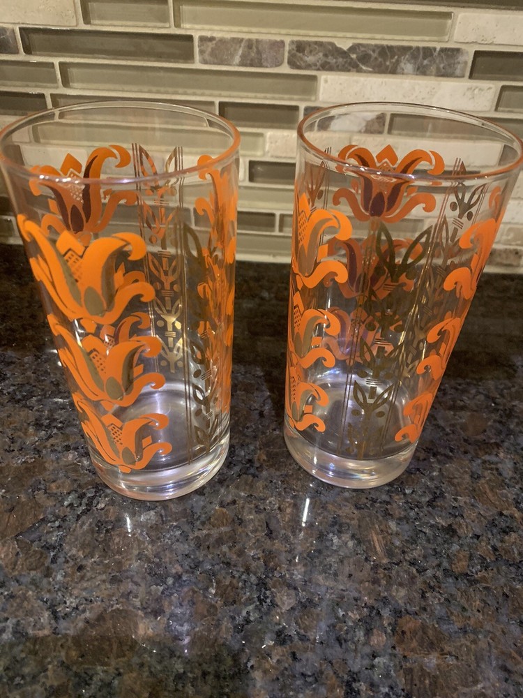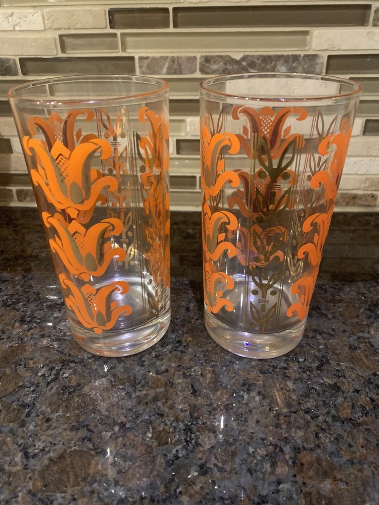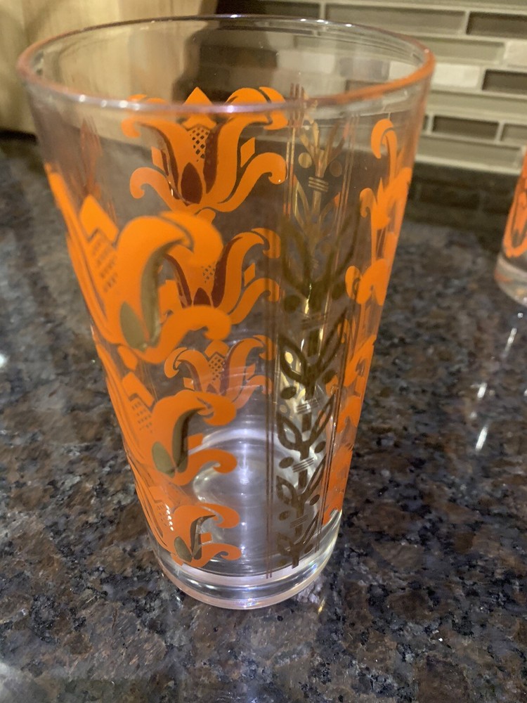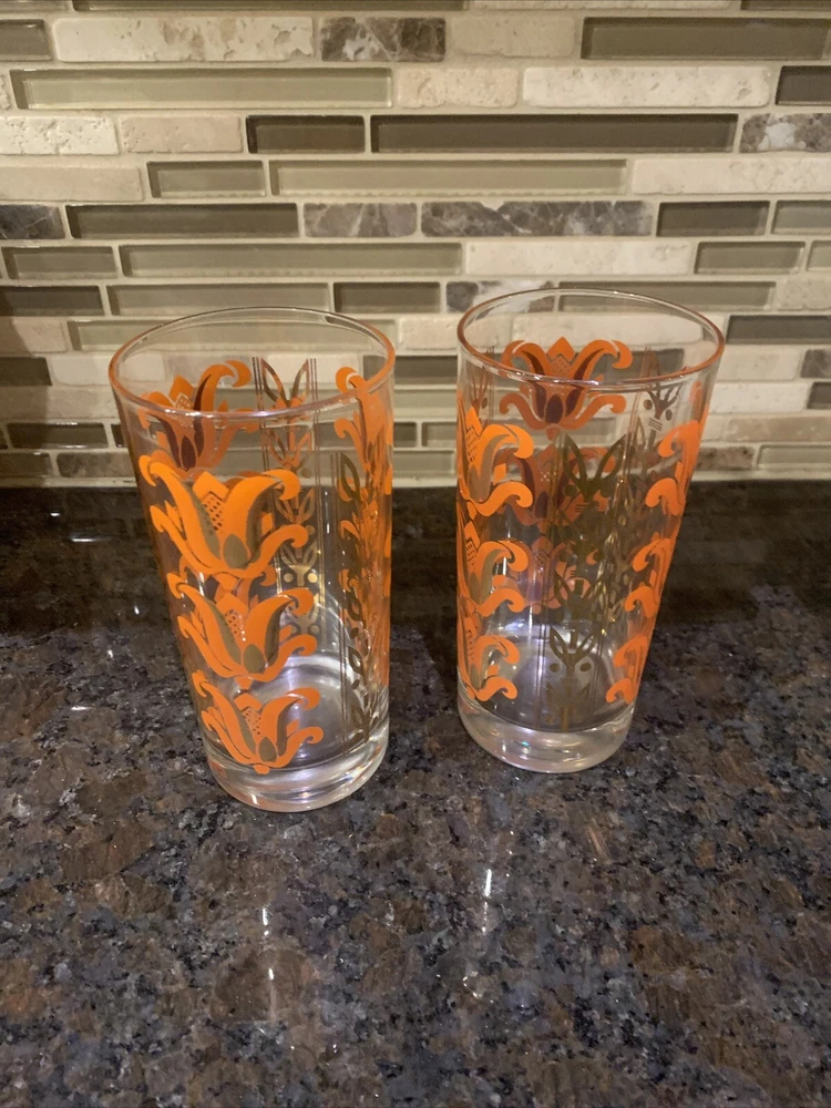 These funky retro tumblers are a total vibe! The bold orange and gold floral design instantly transports me back to the swinging 60s. The size is perfect for cocktails or iced coffee, and the thick glass feels sturdy in hand. Love how they add a pop of color to my kitchen shelf – they make even water feel like a special occasion. The vintage condition shows just enough character to prove they’ve got history, but the colors are still vibrant. Every time I use them, guests comment on how cool they look. Absolute conversation starters that bring serious flower power energy to my table!