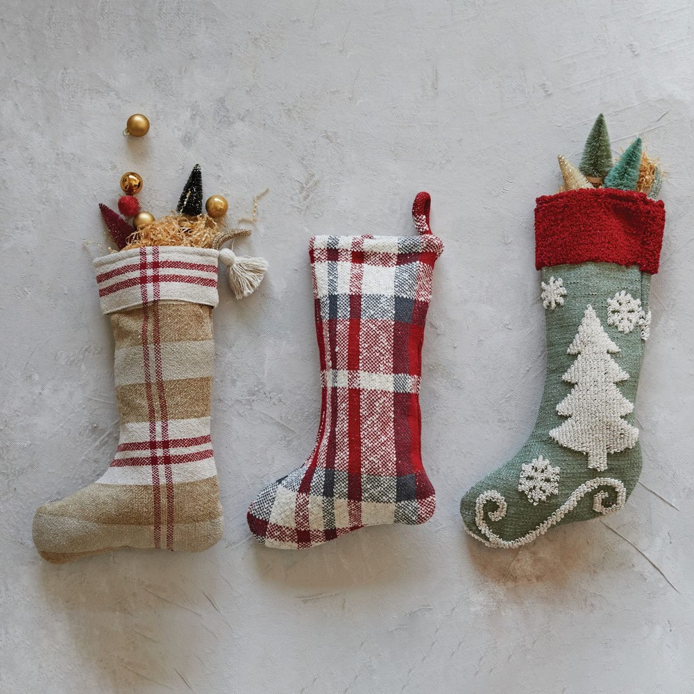 This adorable 20" cotton knit stocking is a festive must-have! The soft chenille tree and snowflake details pop against the classic red, green, and cream stripes—so cozy and charming. Perfect for holiday decor, it feels durable yet lightweight. A lovely touch that adds warmth to any mantel or gift-giving moment. Absolutely love it!