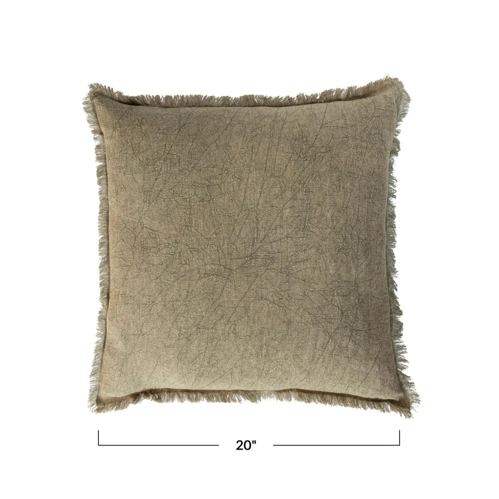 A good quality pillow is essential for a restful and comfortable night's sleep, as it provides comfort and support for the head and neck. This collection has a perfect pillow for every need, offering a wide range of pillows with various shapes, sizes, materials, and designs. Depending on the sleeping style, choose from memory foam, cotton, latex, polyester, or down pillows in standard, queen, king, or body sizes and rectangular, square, round, or cervical shapes. Besides functionality, design options also include stylish colors, patterns, textures, and embellishments. Pillow covers made from cotton, silk, velvet, or faux fur can match any bedroom decor. With such a broad range of options, finding the perfect pillow that will provide maximum comfort and a good night's sleep every single night is easy. Enhance every home decor with the luxurious 20-inch Square Stonewashed Linen Pillow with Fringe with a soft and textured look, adding a touch of elegance to any space The fringe detailing adds a playful and bohemian touch, available in olive and other various color options to complement any existing decor or create a statement piece that stands out This pillow features a high-quality linen cover and polyester filler for comfort and durability This product is made of linen and polyester filler This pillow measures 20 inches in length and 20 inches in width