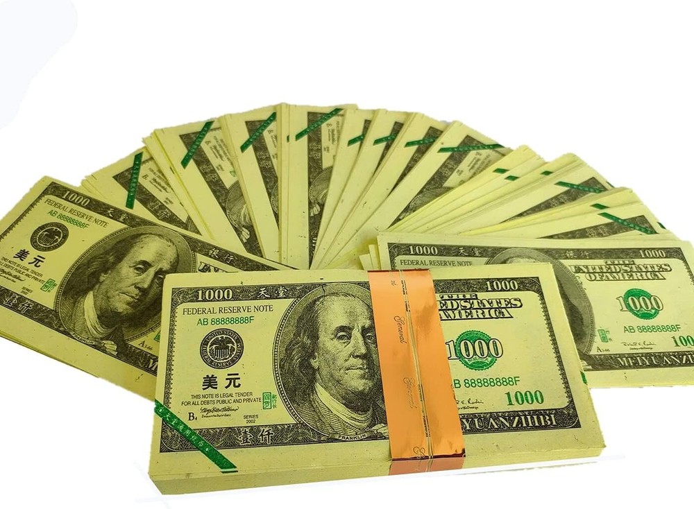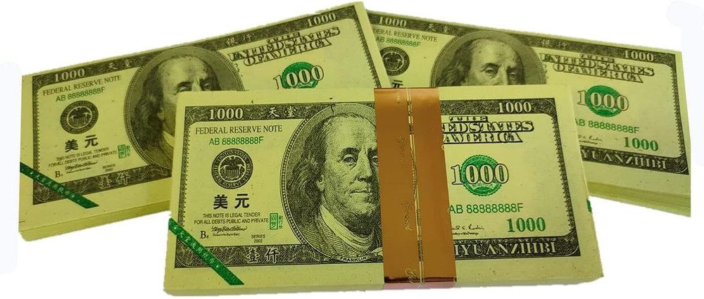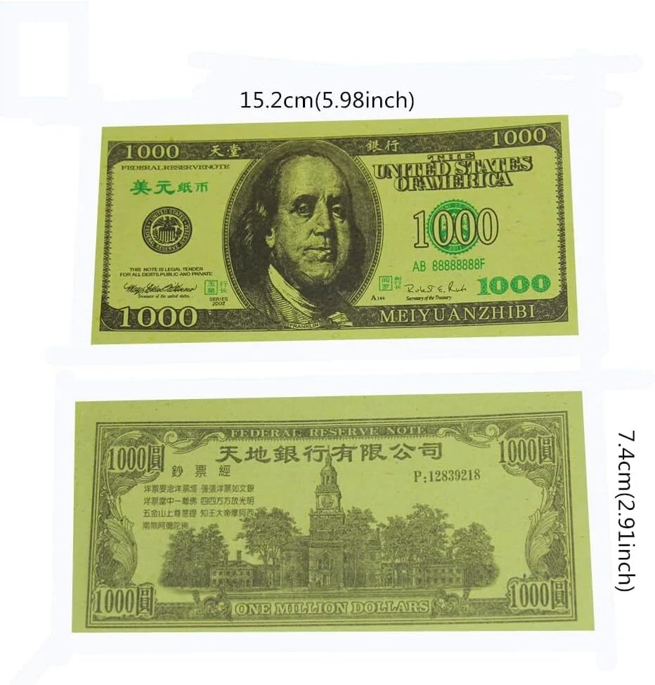 200 Pieces of Ghost Money Joss Paper-Ancestors Money Burning Money $200000- ★200 ancestral money is suitable for funeral, ancestral birthday, memorial day, Tomb-Sweeping Day, Hungry Ghost Festival and other festivals. ★Each sheet measures about 3 x 6 inches (about 7.6 x 15.2 cm). ★ Use: Tombstone Festival, Qingming Festival, Halloween, Memorial Day, July 15th, New Year's Day, the first day of the month, the 15th day of the month, or any other time when you miss your loved ones, use this to send money to your ancestor so that she and all ancestors can live a better life. ★By burning ancestors' money, we can achieve spiritual peace, miss ancestors and pray for ancestors to protect our peace and health. ★When burning in any space, please remove flammable materials and pay attention to fire prevention. Please note that ancestor money is not legal tender issued by any bank or government agency and has no cash value 2.91 inches x 5.91 inches x 0.98 inches. Weight: 4.2 oz Item model number MY-200 Color Denomination: $1000 Product Dimensions 5.91 x 2.91 x 0.98 inches Country of Origin China Item Weight 4.2 ounces