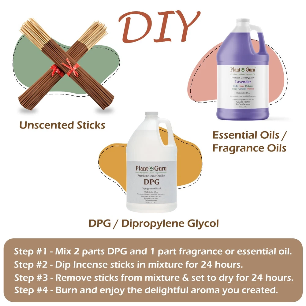 200 Unscented Incense sticks 11" Natural Dark Brown No Fragrance Blanks DIY INCENSE MAKING Approximately 2 Bundles = 200 Sticks Free Shipping 100% natural unscented, uncolored incense sticks 11” ✅ 100% NATURAL - Our incense sticks are made with all natural ingredients. Joss Powder (Litsea Glutinosa) Bamboo (Bambusa Arundinacea) ✅ EXPRESS YOUR CREATIVITY - Create your own unique custom incense by simply adding your favorite essential oils or fragrances. ✅ CLEAN BURNING - NO toxic fumes - NO Burnt after smell – Fill your home with a delightful unique aroma and guests will immediately ask what's that amazing smell. Add these to your home décor accessories, your special quiet space, or just keep them on hand to burn any time. ✅ BURN TIME - Each stick burns for about 45 to 60 minutes after scent is added. ✅ INCENSE RECIPE - Mix 2 parts DPG and 1 part fragrance or essential oil - Dip Incense sticks in mixture for 24 hours - Remove sticks from mixture and let dry for another 24 hours. - Once fully dried, burn and enjoy the delightful unique aroma you created. !!! CLICK ON ANY IMAGE BELOW TO VIEW MORE DEALS AND SAVINGS !!! ⭐ ESSENTIAL OILS, FRAGRANCES & DPG ⭐ !!! WE ALSO CARRY A HUGE VARIETY OF SCENTED INCENSE !!! ⭐ ⭐ TOP 10 BEST SELLERS ⭐⭐ ⭐ ⭐ TOP 5 FRUIT SCENTS ⭐⭐ ⭐ ⭐ TOP 5 FLORAL SCENTS ⭐⭐ ⭐ ⭐ EARTH & WOOD ⭐⭐ ⭐ ⭐ EXOTICS SCENTS ⭐⭐ ⭐⭐⭐ HOLIDAY SCENTS ⭐⭐⭐ ⭐ ⭐ BOGO LISTINGS ⭐ ⭐ 500 - 11" Sticks / 100 - 11" Sticks / 50 - 11" Sticks / 25 - 11" Sticks 30 - 19" Sticks / 15 - 19" Sticks / 2" Backflow Cones / 1" Charcoal Cones ⭐ ⭐ CUSTOM SET ⭐ ⭐ Build Your Own Custom Set We Also Carry Undiluted Fragrances Oils? Click on the link below to view our full list of fragrance oils L I N K > > > Catalog #1 (A - K) L I N K > > > Catalog #2 (L - Z) L I N K > > > FRAGRANCE OILS GALLON 8 lbs. BULK WHOLESALE L I N K > > > VIEW OUR FULL LINE OF FRAGRANCE OILS HERE Check out our store for Pure Aromatherapy Essential Oils LINK >>> 100% Pure Essential Oils, Therapeutic Grade. LINK >>> Pure Essential Oil Blends LINK >>> Carrier Oils / Pure Plant Oils LINK >>> 100% Pure Butters Why Plant Guru ? We source the finest quality ingredients and supplies from ethical producers worldwide. We supply all of our products at market leading prices with no gimmicks. We never sacrifice quality for price. The customer is always right and should always be treated the way our customer service reps would like to be treated. Appreciate every customer, large and small and do your best to service them. About Plant Guru Our business was born online offering quality essential oils at a fair price. No advertising, No marketing plan, No multi pyramid pricing. This allows us to pass on a huge savings to our customers. We provide quality essential oils at the most affordable prices. From our experience if you stick to your principles, the business will take care of itself. These beliefs have allowed us to do great things. Our Mission Plant Guru is a small family ran business with a passion for essentials. "Our business revolves round this passion" As essential oil users in our personal life, We were tired of the multi marketing companies. The prices for a small 15ml. bottle were getting is ridiculous. Everyone should be able to experience the healing power of essential oils. Shipping We ship within one business days of payment, usually sooner. *Standard Shipping takes between 3-5 business days. * We use a selection of shipping services such as UPS, FedEx, USPS etc. *Expedited shipping takes between 2-3 business days. *PLEASE PROVIDE A PHYSICAL ADDRESS. View more great items