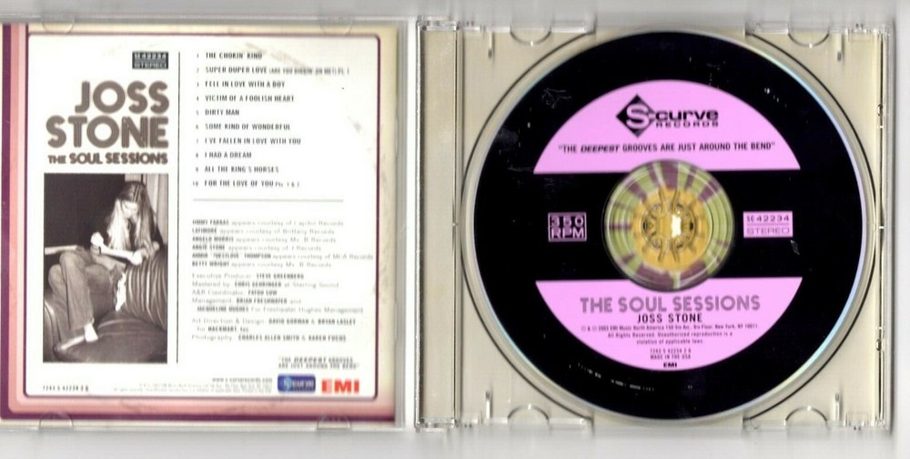 We are offering this wonderful 2003 Joss stone the soul sessions CD . The CD is in LIKE NEW condition NO SCRACHES and the INSERT is excellent condition the CASE is in good condition for the age please check out the photos that shows the history of use. This will be a great addition to your collection. I ship USPS Priority Mail delivery is typically 2 to 3 days delivery. I ship USPS Media Mail USPS First-Class Mail delivery 13 ounces and under over 13 ounces shipping will be USPS Priority Mail. I will combine packaging, when I can do so safely, to save winners of multiple auctions as much as possible in shipping charges. I appreciate payment through Pay-Pal within three days online. Washington residents pay 9.5% sales tax. I guarantee my items to be as described and offer a 14-day money back refund if I inadvertently made a mistake in the description. The cost to ship the item back to us is your responsibility. However, we will only refund your money if the item is in the same condition as it was when we sent it to you. I enjoy finding other fun and unusual items to pass along to you. Please add me to your list of favorite sellers and visit frequently. I encourage you to checkout my feedback. Please contact me with any questions and I'll respond as quickly as possible.