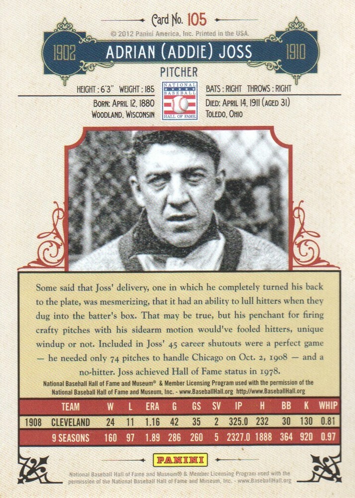 | Player/Athlete | Addie Joss |