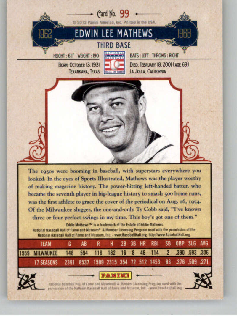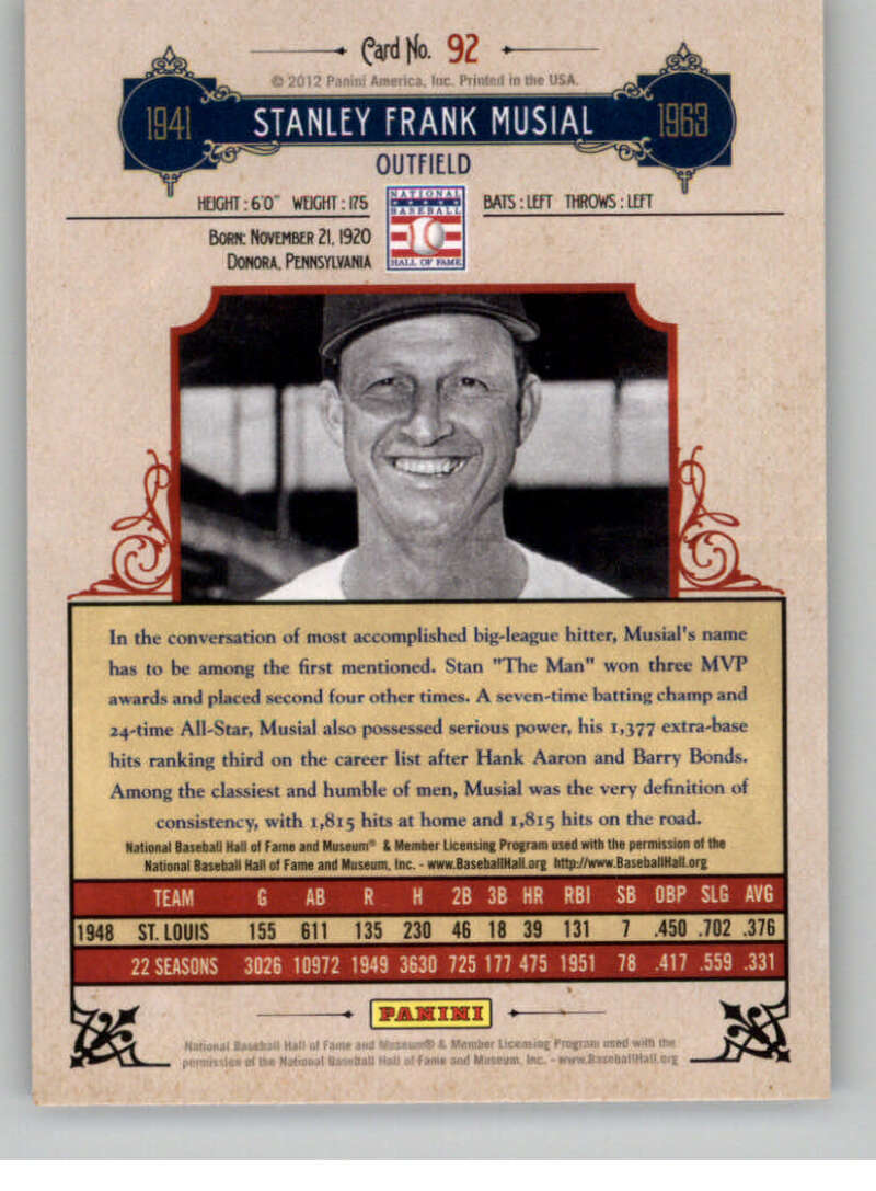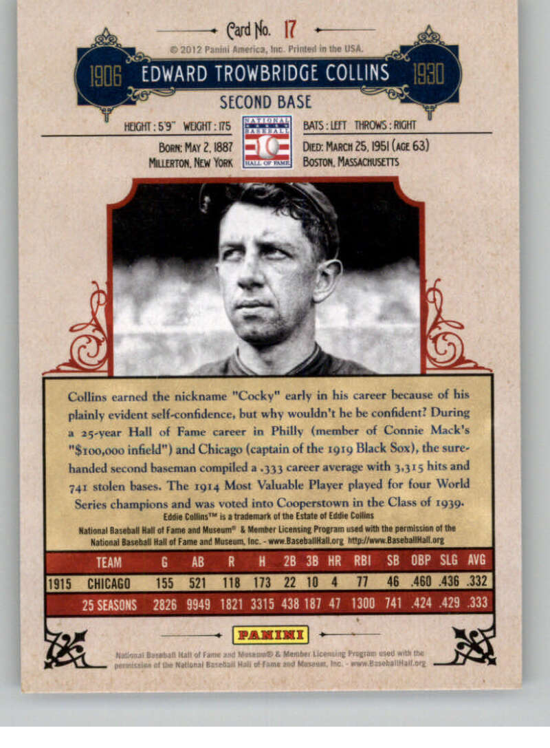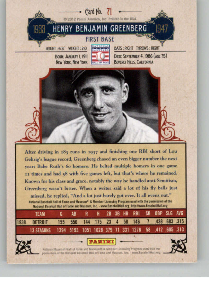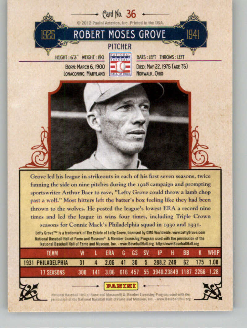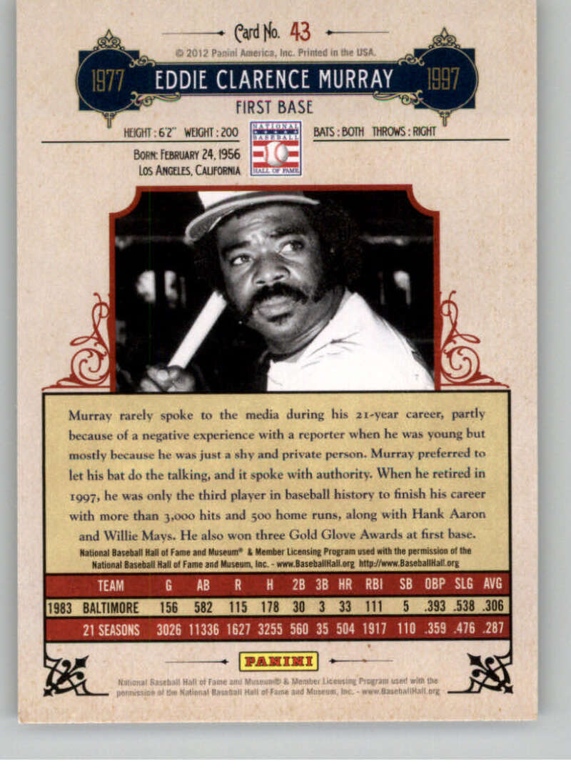 2012 Panini Cooperstown HOF Baseball Trading Cards Pick From List (Base or SPs) eBay requires a condition for raw (ungraded) trading cards - These cards are listed as NM (Near Mint) - Here is a description direcly from the PSA website: A PSA NM 7 is a card showing slight surface wear visible only upon close inspection. There may be slight fraying on some corners. Picture focus may be slightly out-of-register although a minor printing blemish is acceptable. Slight wax staining is acceptable on the back of the card only. Due to high volume of unreasonable buyers, all cards are going to be classified as RAW / AUTHENTIC WITH SOME SORT OF FLAW THAT I DID NOT SEE WITH NO GURANTEE TO WHAT ANY SPECIFIC ITEM WILL GRADE AT unless otherwise noted in the title or if the item has already been graded/slabbed. I am marking this change due to the number of collections I get in. For 2000-Present Modern Cards: I try my best to remove all the cards that aren't NM or better, but sometimes there are a few that slilp through the cracks and get listed. Expect a card in at least NM condition, with most cards I sell exceeding this grade. This means, set your expectations that the card you receive is in this condition. Stock photos are used for most of these items, unless the card's SN or jersey swatch is noted in drop down menu. For 1981-1999-Present Modern Cards: I try my best to remove all the cards that aren't EX or better, but sometimes there are a few that slilp through the cracks and get listed. Expect a card in at least EX condition, with most cards I sell exceeding this grade. This means, set your expectations that the card you receive is in this condition. Stock photos are used for most of these items, unless the card's SN or jersey swatch is noted in drop down menu. For Vintage Cards 1980 and Earlier: These will be listed in "Lot or Set Break" formats, which means the card you see is the card you will receive. Front and back images will be displayed on all cards. Expect a card in Fair/Poor condition. Do not assume that because the card is priced higher than market price, it is going to grade high. Please check scan carefully for condition. If the card photo doesn't match the description, please contact me before purchasing. You are purchasing the card in the title only, not necessarily. the one pictured. Returns are accepted, but I reserve the right to charge a 30% re-stocking based on reason for return. Shipping is specified up above. Two options for shipping available for domestic and international customers. Please note economy shipping is sent in a small white envelope or reinforced cardboard mailer in a semi-rigid holder. If you do not want to risk unnecessary damage to your card, please select the padded envelope option. International Customers, I ship through a third party mail processing provider. Tracking numbers may change throughout the process, but all items will ship with tracking Please use the eBay.com shopping cart to pay one shipping price and receive all discounts possible. Due to the constant Postal Rate increases, I will no longer quote shipping and handling prices in my description. Any questions please do not hesitate to ask. Some features may not be available on the App vs. the Desktop version, like request total from seller and upgraded shipping options. Please try it on both platforms before you contact me.Thank you for clicking on my listings. I only have the cards available from the drop down menu. Please select carefully from the drop down list as all sets in the title are included in this listing. Thank you for understanding. There are stock photos in use on most of my listings. I cannot gurantee any specific serial number or jersey swatch.