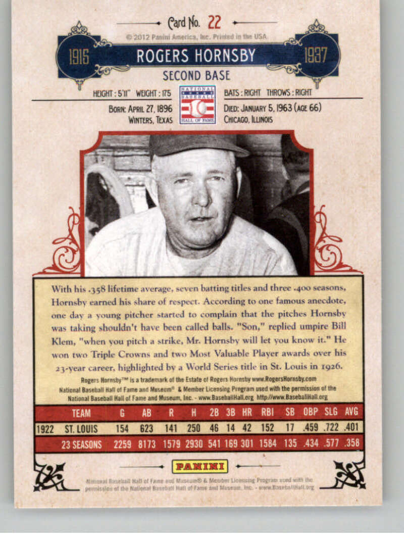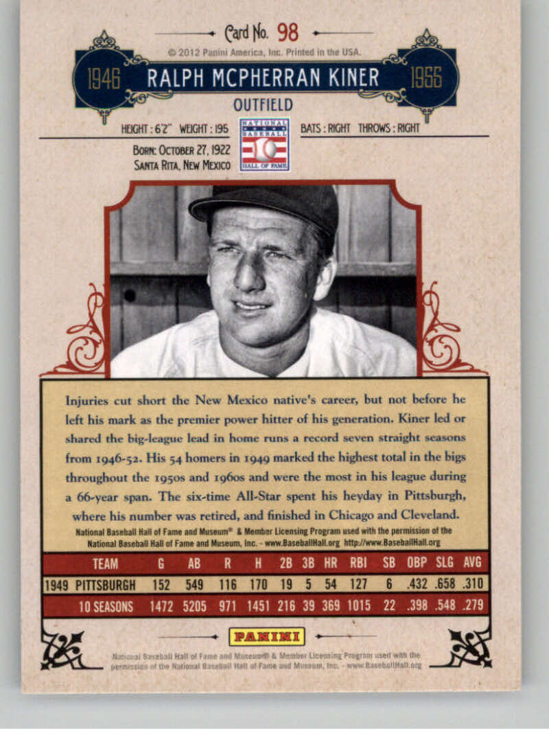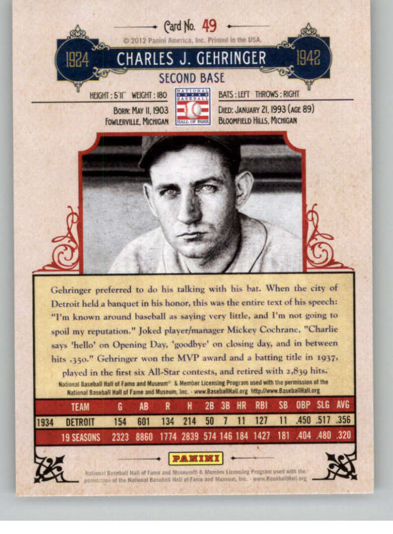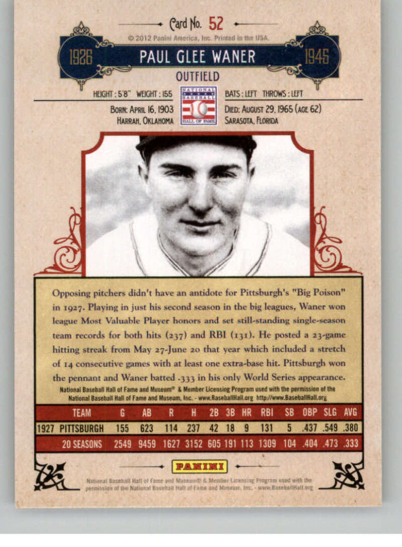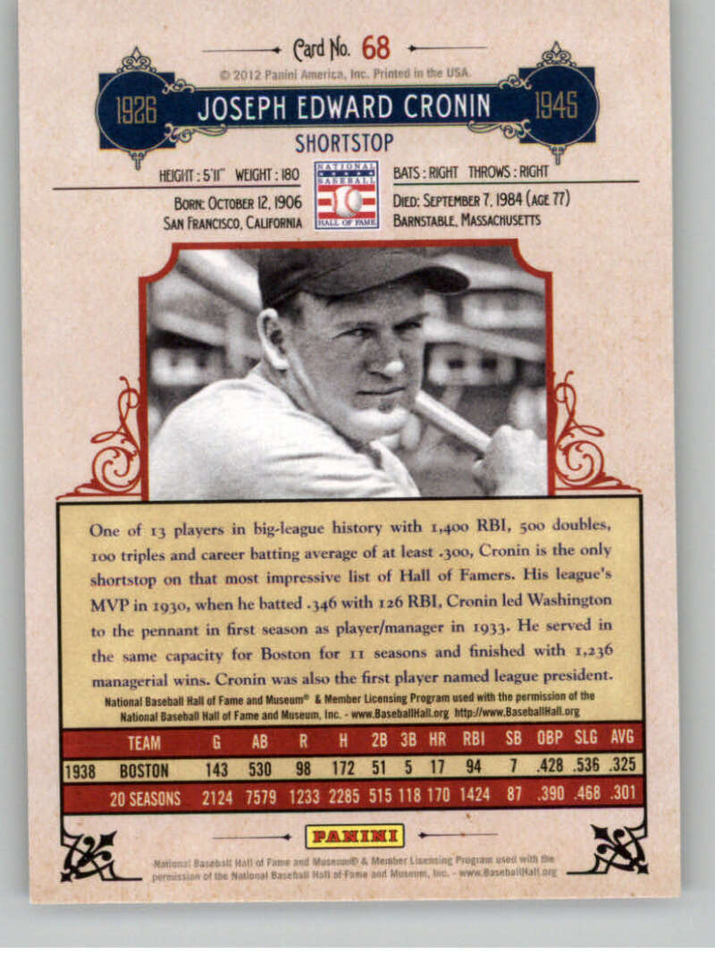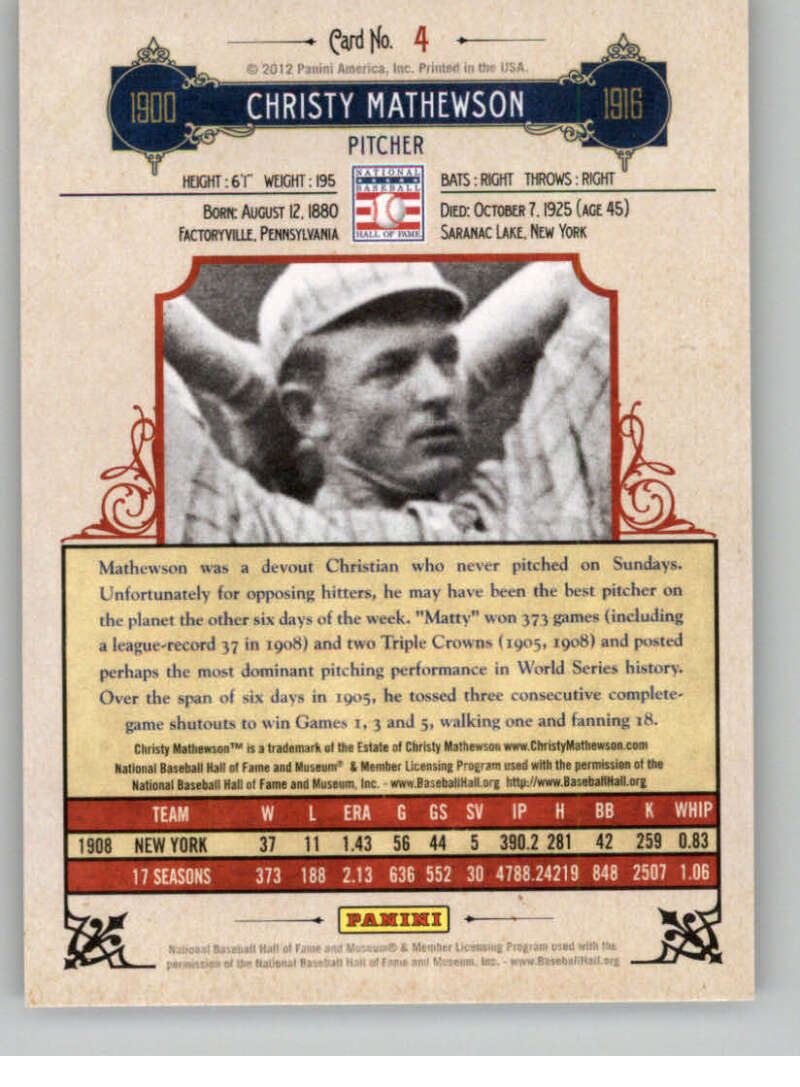 2012 Panini Cooperstown HOF Baseball Trading Cards Pick From List (Base or SPs) eBay requires a condition for raw (ungraded) trading cards - These cards are listed as NM (Near Mint) - Here is a description direcly from the PSA website: A PSA NM 7 is a card showing slight surface wear visible only upon close inspection. There may be slight fraying on some corners. Picture focus may be slightly out-of-register although a minor printing blemish is acceptable. Slight wax staining is acceptable on the back of the card only. Due to high volume of unreasonable buyers, all cards are going to be classified as RAW / AUTHENTIC WITH SOME SORT OF FLAW THAT I DID NOT SEE WITH NO GURANTEE TO WHAT ANY SPECIFIC ITEM WILL GRADE AT unless otherwise noted in the title or if the item has already been graded/slabbed. I am marking this change due to the number of collections I get in. For 2000-Present Modern Cards: I try my best to remove all the cards that aren't NM or better, but sometimes there are a few that slilp through the cracks and get listed. Expect a card in at least NM condition, with most cards I sell exceeding this grade. This means, set your expectations that the card you receive is in this condition. Stock photos are used for most of these items, unless the card's SN or jersey swatch is noted in drop down menu. For 1981-1999-Present Modern Cards: I try my best to remove all the cards that aren't EX or better, but sometimes there are a few that slilp through the cracks and get listed. Expect a card in at least EX condition, with most cards I sell exceeding this grade. This means, set your expectations that the card you receive is in this condition. Stock photos are used for most of these items, unless the card's SN or jersey swatch is noted in drop down menu. For Vintage Cards 1980 and Earlier: These will be listed in "Lot or Set Break" formats, which means the card you see is the card you will receive. Front and back images will be displayed on all cards. Expect a card in Fair/Poor condition. Do not assume that because the card is priced higher than market price, it is going to grade high. Please check scan carefully for condition. If the card photo doesn't match the description, please contact me before purchasing. You are purchasing the card in the title only, not necessarily. the one pictured. Returns are accepted, but I reserve the right to charge a 30% re-stocking based on reason for return. Shipping is specified up above. Two options for shipping available for domestic and international customers. Please note economy shipping is sent in a small white envelope or reinforced cardboard mailer in a semi-rigid holder. If you do not want to risk unnecessary damage to your card, please select the padded envelope option. International Customers, I ship through a third party mail processing provider. Tracking numbers may change throughout the process, but all items will ship with tracking Please use the eBay.com shopping cart to pay one shipping price and receive all discounts possible. Due to the constant Postal Rate increases, I will no longer quote shipping and handling prices in my description. Any questions please do not hesitate to ask. Some features may not be available on the App vs. the Desktop version, like request total from seller and upgraded shipping options. Please try it on both platforms before you contact me.Thank you for clicking on my listings. I only have the cards available from the drop down menu. Please select carefully from the drop down list as all sets in the title are included in this listing. Thank you for understanding. There are stock photos in use on most of my listings. I cannot gurantee any specific serial number or jersey swatch.