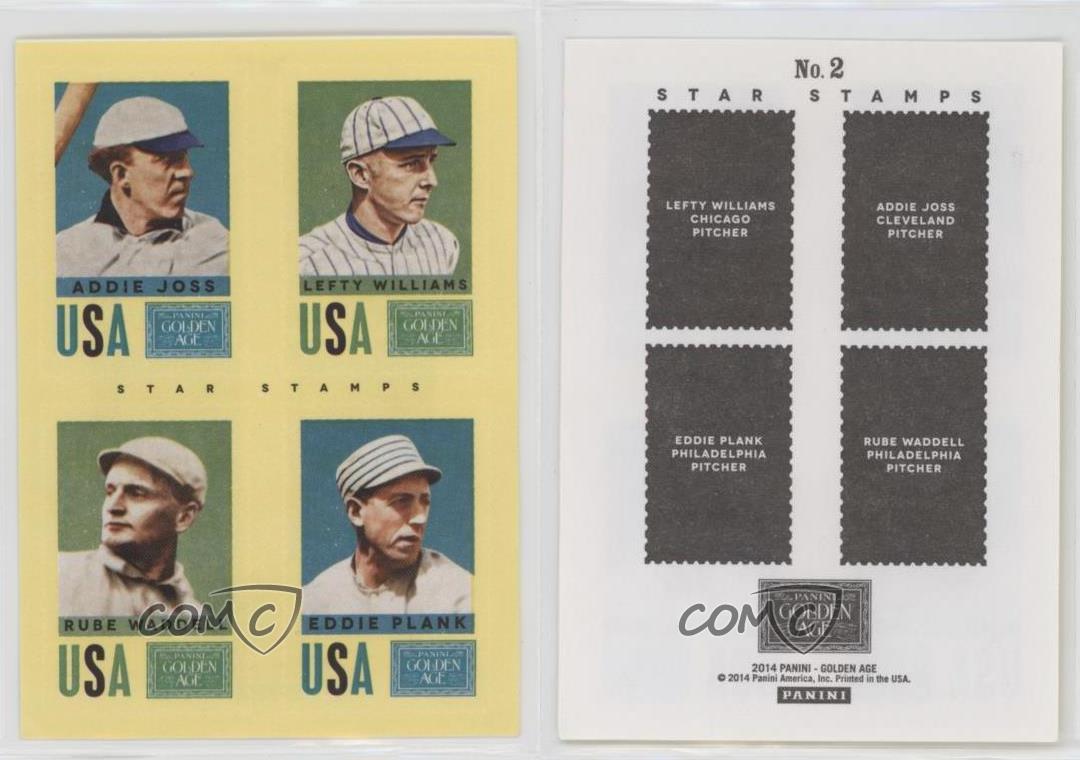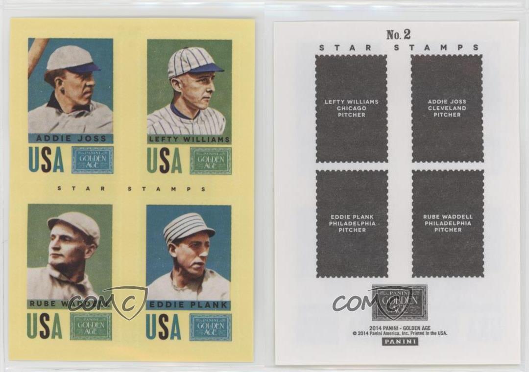 2014 Panini Golden Age - Star Stamps #2 Eddie Plank, Rube Waddell, Addie Joss, Lefty Williams - Rookie - Baseball Card - Featuring the Chicago White Sox , Philadelphia Athletics and Cleveland Naps - Featuring Eddie Plank , Rube Waddell , Addie Joss and Lefty Williams Search for more: 2014 Panini Golden Age Search for more: 2014 Panini Golden Age - Star Stamps View all of our Listings Auctions Buy It Now About Us Located in the beautiful Pacific Northwest, COMC (Check Out My Cards) is the world's largest consignment service for trading card singles. More than 10,000 people have used our consignment service to list over 50 million trading cards. Find out how we can help you consign your items on eBay by contacting us through eBay messaging. COMC -- "The Safe & Easy Way to Buy & Sell" Representative Image - Select Specific Item above to see image of actual item Representative Image - Select Specific Item above to see image of actual item Raw Condition for Modern Cards Unless otherwise noted, raw modern cards are listed in Near Mint-Mint condition or better. A NM-MT card appears to be Mint at first glance, but upon closer inspection, may exhibit some of the following: minor print defects (e.g. roller marks, print line, dimple), minor scratches, slight edge wear, and slight corner wear. Centering is clearly visible in the images provided and does not factor into our condition assessment. Raw Condition for Vintage Cards Unless otherwise noted, raw vintage cards are listed in Excellent condition or better. An EX card may exhibit some of the following: minor rounding of corners, surface wear, print defects, light scratches, and slight edge wear/chipping. Centering is clearly visible in the images provided and does not factor into our condition assessment. Domestic Shipping Combined shipping for multiple items is available. To receive combined shipping, please ensure all desired items are in your eBay shopping cart before proceeding to checkout. eBay limits orders to 40 items per order. We automatically combine multiple orders placed on the same day. If you place multiple orders on the same day, please contact us to request a refund of applicable shipping costs. Signature confirmation may be required on invoices over $400. All cards are protected and shipped securely. International Shipping COMC offers eBay's International Shipping (EIS) for international orders under $2,500* (see country exceptions below). All duties and import fees are paid at checkout; in the rare event that there are additional import fees upon delivery, these are borne by the buyer. EIS packages route through a shipping hub in Erlanger, KY before shipping to their final destination. Please note that EIS does not allow for combined shipments. The shipping rates are determined by eBay and cannot be adjusted. *Maximum sale price exceptions: Colombia, Kuwait ($2,000); Taiwan ($1,539); Chile, Costa Rica, Guatemala, Honduras, Trinidad and Tobago ($1,000); Antigua and Barbuda, Aruba, Belize, Dominica, Grenada, Philippines, Saint Kitts and Nevis, Saint Lucia, Montserrat, Turks and Caicos Islands ($500); Dominican Republic, El Salvador ($200). Please request a shipping quote through eBay messaging for orders that exceed the maximum sale price supported by eBay's International Shipping. You will be responsible for all duties and import fees for international orders shipped outside the EIS. All cards are protected and shipped securely. Payment COMC does not accept offers on our cards through our eBay storefront. COMC utilizes eBay’s managed payments system. If you are experiencing difficulties making a payment, please contact eBay for assistance. Return Policy Returns are only accepted on the rare occasion the item is not as described. If you are making a return, please initiate the return process through eBay so a mailing label can be provided for you. Prior to listing, our expert team carefully assessed this item to represent it accurately. Please review the description and high-definition images prior to purchasing to ensure this item meets your satisfaction. We welcome you to contact us if you have further questions about this item. Trust and Integrity COMC carefully assesses each item consigned to us to prevent fraudulent items from entering the marketplace. If you believe an item offered on COMC may be fraudulent, please contact us with details so we can investigate the issue. Items we determine are outside our supported items policy may be removed. Last Modified: 7/9/2025 11:29:23 AM PDT