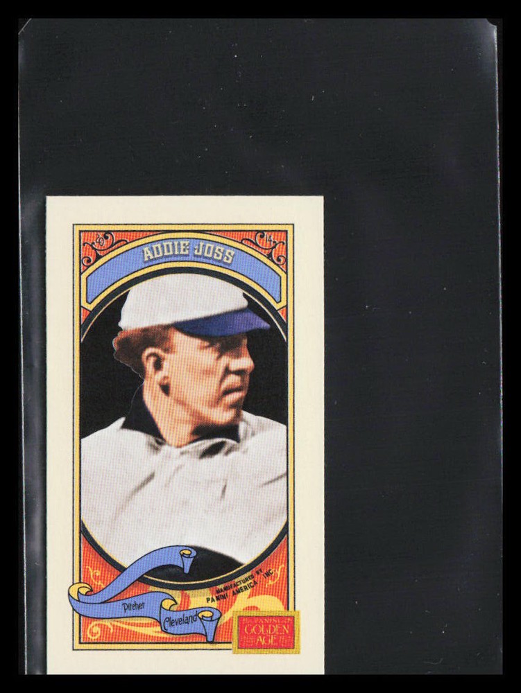 You are bidding on a 2014 Panini Golden Age #19a Addie Joss With hat Mini . Card will be shipped within 3-days of payment. Raw cards valued under $20 will be penny sleeved, put in a Card Saver or Top Loader, and shipped in an eBay standard envelope with tracking. Lots and raw cards over $20 will be penny sleeved, put in a Card Saver or Top Loader, secured in a bubble mailer, and shipped via USPS First Class Mail with tracking. Graded cards are carefully packaged in a slab sleeve, cardboard protectors all in a 6 x 9 Bubble envelope. Shipping is only to the United States. If you purchase multiple items, please let me know, so I can send you an invoice with the correct shipping. Combined Shipping: We will combine the fist 2 lots at no extra shipping fee. After that it will be an additional $0.50 per listing you win and we will put the cards in a bubble mailer. Please send us a message when you have finished purchasing so we may update your shipping and send you a combined invoice. Chrome and Prizm cards can be subject to minor manufacturer print lines and dimples. Please review all photos supplied to make an informed purchase. I try my best to review every card, but sometimes, things get missed, so please feel free to contact me with any questions. I don't do trades. Low ball offers are not accepted. I set a lower limit on my pricing and that's the starting point of the negotiation.Thanks again for looking. Please check out our other listings for more great cards.