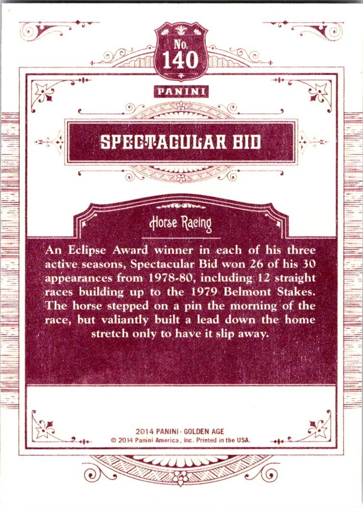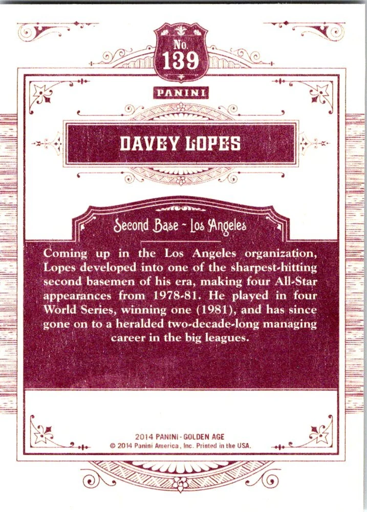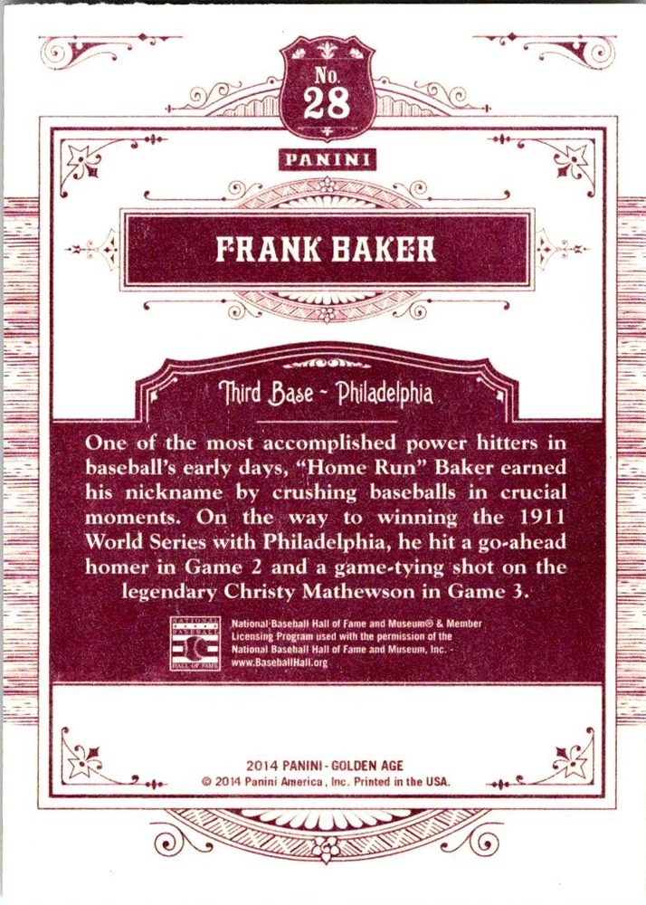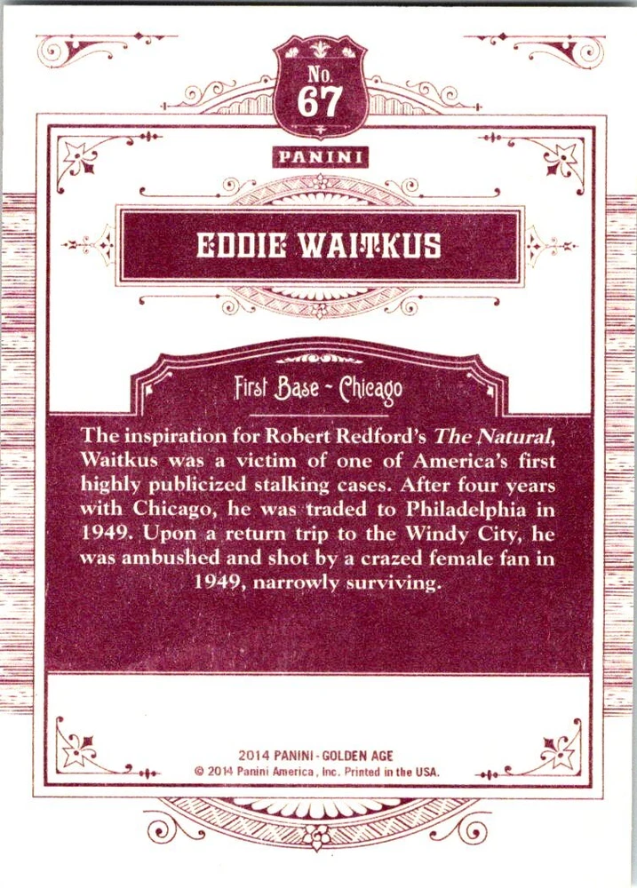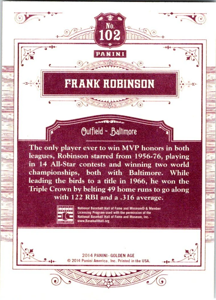 Set / Series: 2014 Panini Golden Age Item : Base Set (1-150) Specifics : See Above for card #'s available All scans are of actual item Manufacturer: Panini Condition: Near Mint Payment Policy : Payments must be received within 4 days of completion of sale. If payment is not received in the given timeframe an unpaid bidder claim will be opened, unless prior arrangements have been made. Shipping : Domestic Shipping Cost is Free International Shipping Cost is calculated by country. Please use the shipping calculator found in the Shipping and Payment tab to find out shipping cost. Contact : Please feel free to contact me with any questions using the eBay contact form. At Hero43 Collectibles we do our best to make sure your items get packaged properly and shipped timely. But there are times when things don't go as expected and make the experience unpleasant. We take great pride in providing great customer service and as such would appreciate you contacting us before leaving neutral, negative feedback or opening a case for refund or return. Please give us a chance to make it right. Thank you. Return Policy : All returns must be made within 30 days after receiving the item. A full refund will be granted for any reason the customer is not satisfied. However, the buyer will have to return the item in its original condition and pay for return shipping. For items claimed as "Not as Described" a full refund will be given including return shipping, but the item will need to be returned, unless prior arrangements have been made.