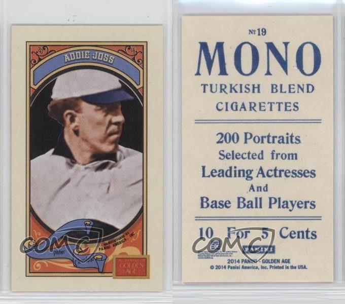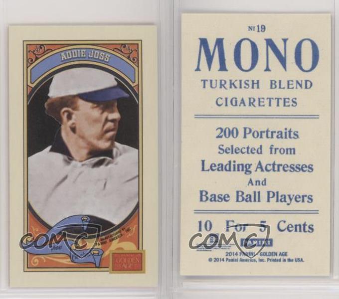 2014 Panini Golden Age - [Base] - Mini MONO Blue Back #19 Addie Joss - Rookie - Baseball Card - Featuring the Cleveland Indians - Featuring Addie Joss Search for more: 2014 Panini Golden Age Search for more: 2014 Panini Golden Age - [Base] - Mini MONO Blue Back View all of our Listings Auctions Buy It Now About Us Located in the beautiful Pacific Northwest, COMC (Check Out My Cards) is the world's largest consignment service for trading card singles. More than 10,000 people have used our consignment service to list over 50 million trading cards. Find out how we can help you consign your items on eBay by contacting us through eBay messaging. COMC -- "The Safe & Easy Way to Buy & Sell" Representative Image - Select Specific Item above to see image of actual item Representative Image - Select Specific Item above to see image of actual item Raw Condition for Modern Cards Unless otherwise noted, raw modern cards are listed in Near Mint-Mint condition or better. A NM-MT card appears to be Mint at first glance, but upon closer inspection, may exhibit some of the following: minor print defects (e.g. roller marks, print line, dimple), minor scratches, slight edge wear, and slight corner wear. Centering is clearly visible in the images provided and does not factor into our condition assessment. Raw Condition for Vintage Cards Unless otherwise noted, raw vintage cards are listed in Excellent condition or better. An EX card may exhibit some of the following: minor rounding of corners, surface wear, print defects, light scratches, and slight edge wear/chipping. Centering is clearly visible in the images provided and does not factor into our condition assessment. Domestic Shipping Combined shipping for multiple items is available. To receive combined shipping, please ensure all desired items are in your eBay shopping cart before proceeding to checkout. eBay limits orders to 40 items per order. We automatically combine multiple orders placed on the same day. If you place multiple orders on the same day, please contact us to request a refund of applicable shipping costs. Signature confirmation may be required on invoices over $400. All cards are protected and shipped securely. International Shipping COMC offers eBay's International Shipping (EIS) for international orders under $2,500* (see country exceptions below). All duties and import fees are paid at checkout; in the rare event that there are additional import fees upon delivery, these are borne by the buyer. EIS packages route through a shipping hub in Erlanger, KY before shipping to their final destination. Please note that EIS does not allow for combined shipments. The shipping rates are determined by eBay and cannot be adjusted. *Maximum sale price exceptions: Colombia, Kuwait ($2,000); Taiwan ($1,539); Chile, Costa Rica, Guatemala, Honduras, Trinidad and Tobago ($1,000); Antigua and Barbuda, Aruba, Belize, Dominica, Grenada, Philippines, Saint Kitts and Nevis, Saint Lucia, Montserrat, Turks and Caicos Islands ($500); Dominican Republic, El Salvador ($200). Please request a shipping quote through eBay messaging for orders that exceed the maximum sale price supported by eBay's International Shipping. You will be responsible for all duties and import fees for international orders shipped outside the EIS. All cards are protected and shipped securely. Payment COMC does not accept offers on our cards through our eBay storefront. COMC utilizes eBay’s managed payments system. If you are experiencing difficulties making a payment, please contact eBay for assistance. Return Policy Returns are only accepted on the rare occasion the item is not as described. If you are making a return, please initiate the return process through eBay so a mailing label can be provided for you. Prior to listing, our expert team carefully assessed this item to represent it accurately. Please review the description and high-definition images prior to purchasing to ensure this item meets your satisfaction. We welcome you to contact us if you have further questions about this item. Trust and Integrity COMC carefully assesses each item consigned to us to prevent fraudulent items from entering the marketplace. If you believe an item offered on COMC may be fraudulent, please contact us with details so we can investigate the issue. Items we determine are outside our supported items policy may be removed. Last Modified: 3/31/2025 9:59:01 PM PDT