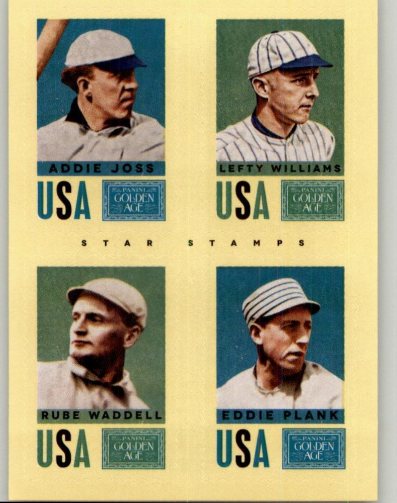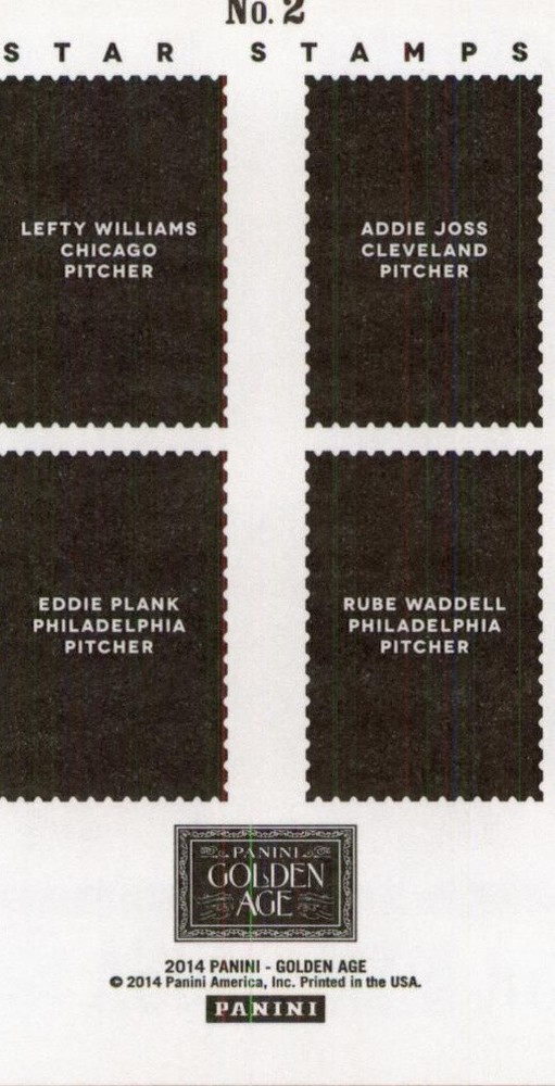 This is a nice example of a 2014 Panini Golden Age #2 Eddie Plank / Rube Waddell / Addie Joss / Lefty Williams Star Stamps Other important information about this card: In 2014 Eddie Plank / Rube Waddell / Addie Joss / Lefty Williams played for the . Please check out our other listings for more great cards.