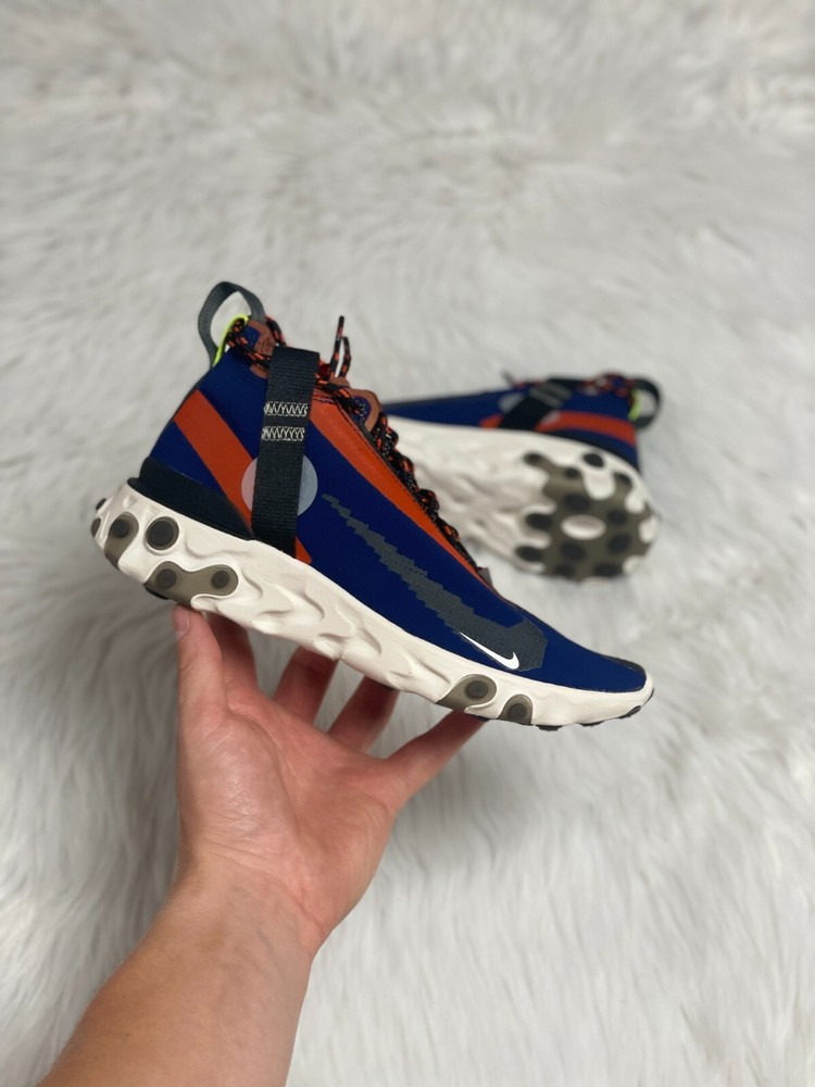 ITEM: 2018 Nike React Runner ISPA 'Blue Void' SIZE: Men's US. Size: 4 Womens US. Size 5.5 CONDITION: New without Box CLUTCH NOTES: The React Runner Mid WR ISPA ‘Blue Void’ is one of the inaugural colorways from ISPA, which stands for Improvise/Scavenge/Project/Adapt. The Nike Sportswear program is intended to deliver apparel and footwear that presents an experimental expression of Nike design with a problem-solving bent. This colorway features a water-resistant upper in Blue Void and Team Orange, made with material normally used as the internal waterproof liner of an ACG hiking boot. It all rests on Nike React 87 tooling in contrasting white. 100% Authentic Returns: TheClutchSwagStore Accepts returns with 100% money back within 30 days of purchase date. All returns must be in new and unworn condition. Money will be refunded immediately after products have been sent back and verified.