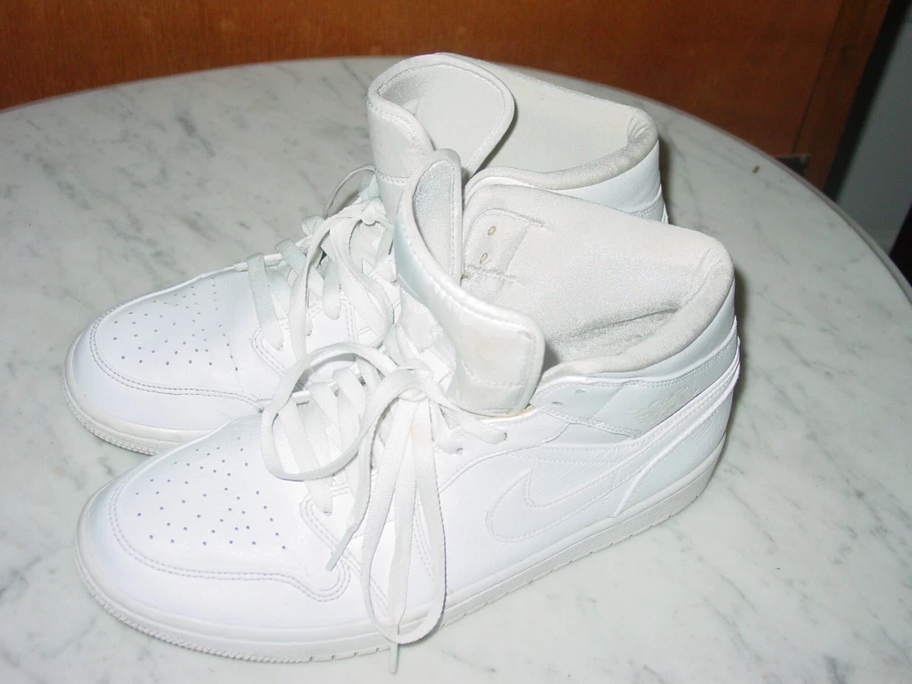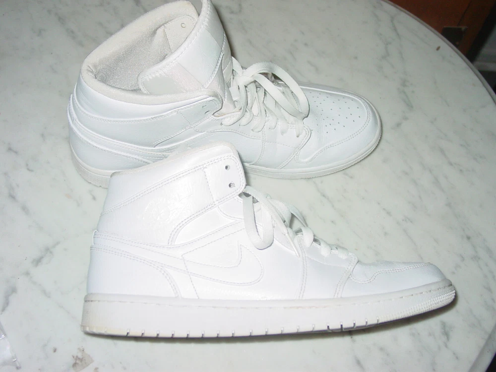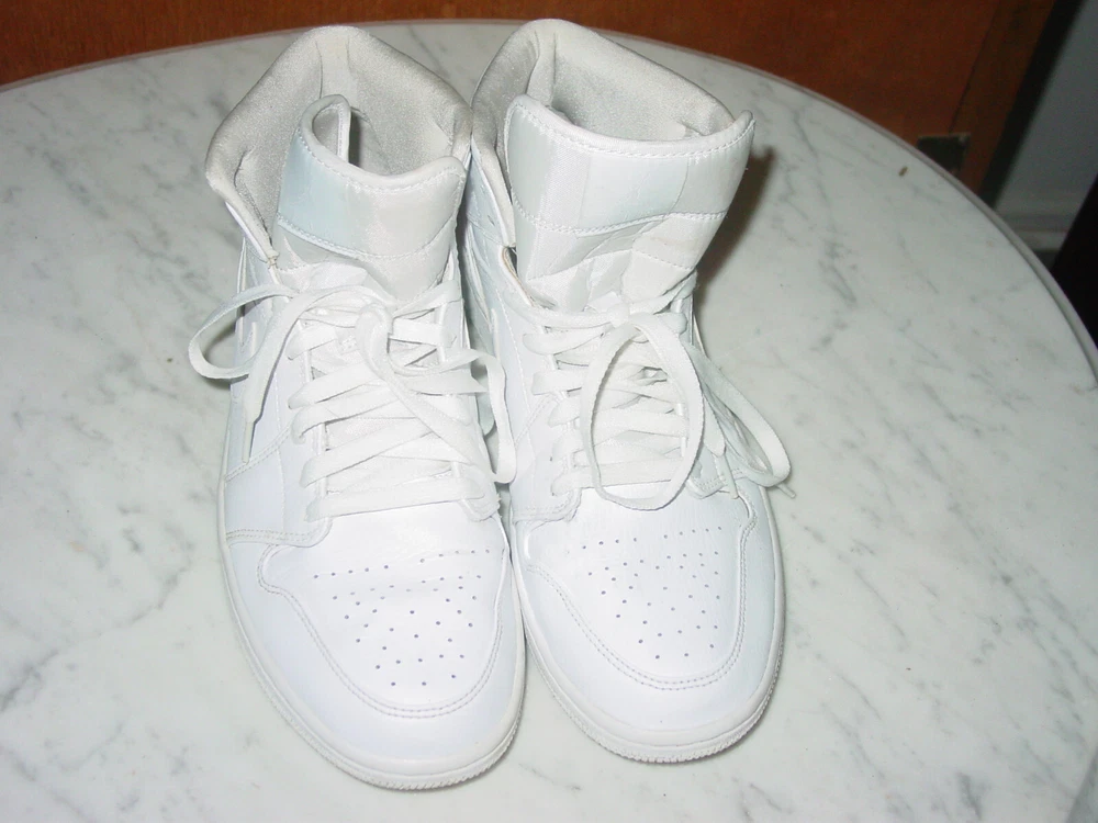 NICE PAIR OF MENS NIKE AIR JORDAN RETRO 1 MID "TRIPLE WHITE" BASKETBALL SHOES! SHOES ARE IN "USED" CONDITION! PLEASE READ: SHOES THAT SHOW SOME USE BUT STILL LOOK GREAT AND HAVE A LOT OF LIFE LEFT IN THEM SHIPS WITH ORIGINAL BOX! I DO MY BEST TO REPRESENT ALL MY ITEMS ACCURATELY PLEASE LOOK AT ALL PICS AND BID ACCORDINGLY DESCRIPTION Inspired by the 1985 original, the Air Jordan 1 Mid sneaker remembers the legendary basketball shoe that took MJ through his rookie year and first All-Star game appearance. This ‘Triple White’ version features all-white from heel to toe, sporting a mixed leather and synthetic construction along its upper. A debossed Wings logo hits the ankle collar, while a rubber outsole features the classic Jordan 1 modified herringbone pattern. The Air Jordan 1 Mid Triple White 2019 is a mid-top sneaker from the Air Jordan 1 lineup in a ‘Triple White’ colorway. Dressed in an all-white color scheme, this sneaker features an upper with a smooth leather base and tumbled leather overlays. Other details include a debossed ‘Wings’ emblem on the collar in a matching tone, tonal Swooshes, flat white laces, and a branded tongue tag. The upper rests on the trademark Air Jordan 1 sole unit in a matching tone. The insole features a Jumpman logo in a slightly contrasting tone. During a special exhibition game in 1985, Michael Jordan dunked a basketball powerful enough to shatter the backboard. In honor of the event, Nike's Jordan Brand crafted a special edition of the classic Air Jordan 1 silhouette. The sneaker features a limited edition Black/White-Starfish colorway. The "Air Jordan" insignia displays itself prominently on the upper sides of the shoe, and an orange Swoosh logo stands out in stark contrast to the white parts of the AJ1 Mid Shattered Backboard. To top things off, a shattered backboard graphic adorns the insole of the silhouette. The Nike Air Jordan 1 Mid 'Shattered Backboard' looks back on a fabled moment in basketball history when then-rookie Michael Jordan shattered the hoop's backboard during a 1985 exhibition game in Italy. Surfaced in September 2019, the sneaker represents the legend's Stefanel jersey in black nubuck with contrasting tumbled leather and 'Starfish' Swooshes. The Wings emblem remains on the ankle and a Jumpman is seen on the tongue. An Air-assisted rubber cupsole stays classic. STOCK NUMBER: 554724-129 RELEASE DATE: 2019 SIZE 11 COLOR: WHITE I ONLY SPECIALIZE IN REAL AUTHENTIC JORDANS AND OTHER HARD TO FIND SHOES! YOU CAN BE REST ASSURED YOUR DEALING ON THE REAL DEAL! HAVE OTHER GREAT HARD TO FIND JORDANS IN MY OTHER AUCTIONS! THANKS FOR LOOKING!