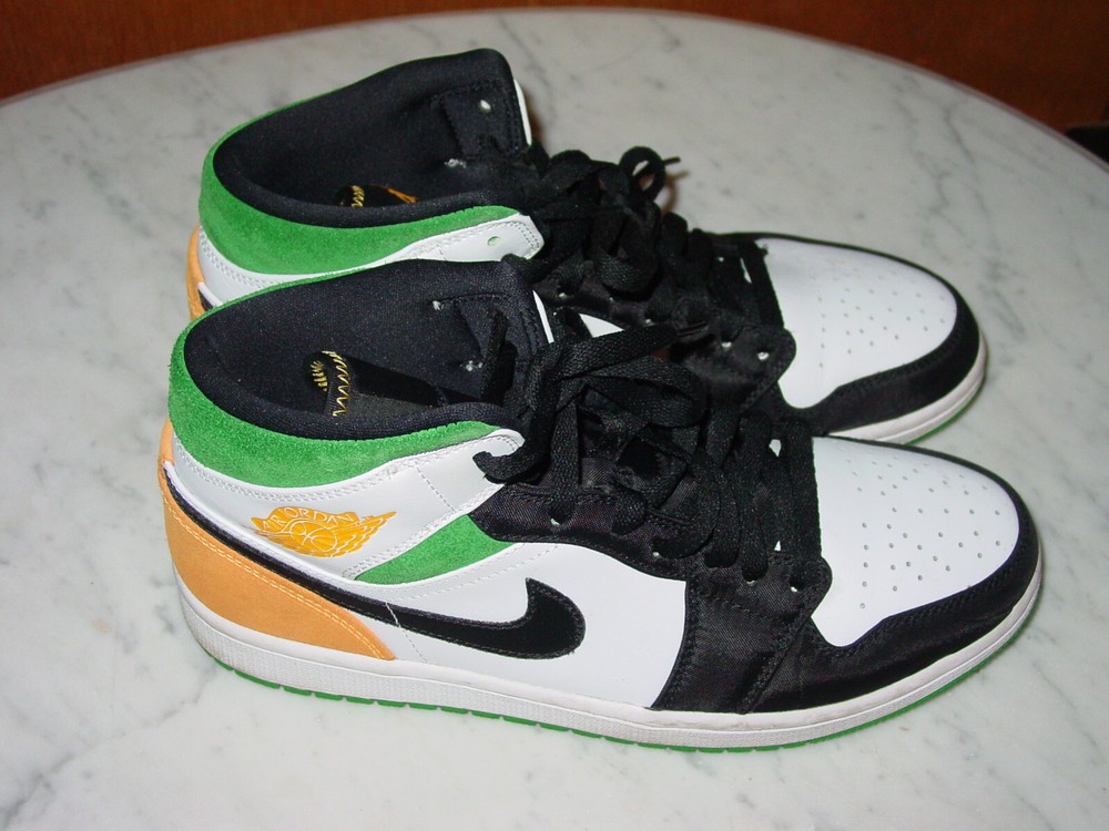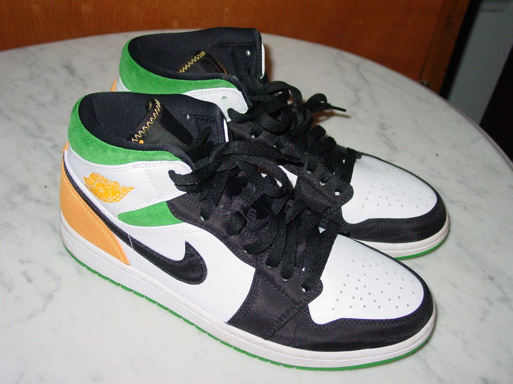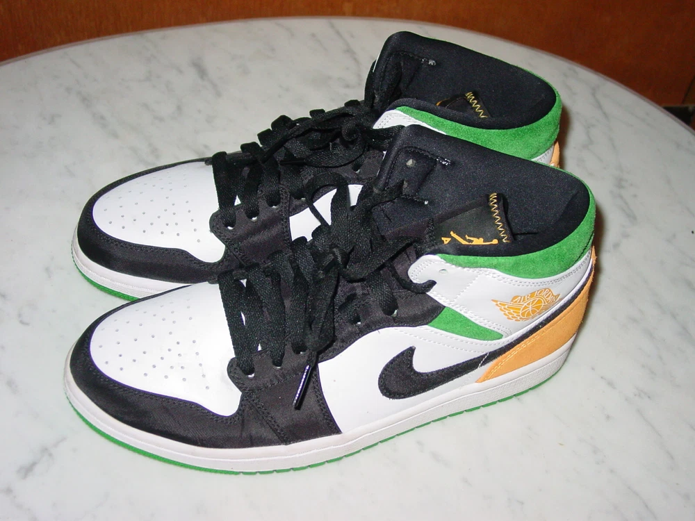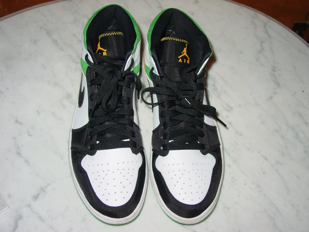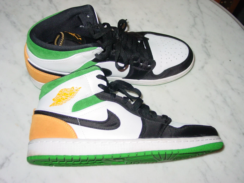 EXCELLENT PAIR OF NIKE AIR JORDAN RETRO 1 MID SE "OAKLAND" BASKETBALL SHOES! SHOES ARE IN "USED " CONDITION! PLEAS E READ: SHOES ARE SHOWING SOME USE BUT STILL LOOK GREAT AND HAVE A LOT OF LIFE LEFT IN THEM I DO MY BEST TO REPRESENT MY ITEMS ACC URATELY RELEASE DATE: 2020 DESCRIPTION Details The Jordan 1 Mid Oakland features a white, black, and green suede and fabric upper with the bold shades of the flag for Oakland Athletics covering a white base that wraps around the ankle support. From there, panels of bright green and orange and a deep black "Swoosh" complete the design. STOCK # 852542-101 SIZE: 9.5 COLOR: WHITE/LASER ORANGE/BLACK/LUCKY GREEN SHIPS WITHOUT ORIGINAL BOX! I ONLY SPECIALIZE IN REAL AUTHENTIC JORDANS! YOU CAN BE REST ASSURED YOUR DEALING ON THE REAL DEAL! HAVE OTHER GREAT HARD TO FIND JORDANS IN MY OTHER AUCTIONS! THANKS FOR LOOKING!