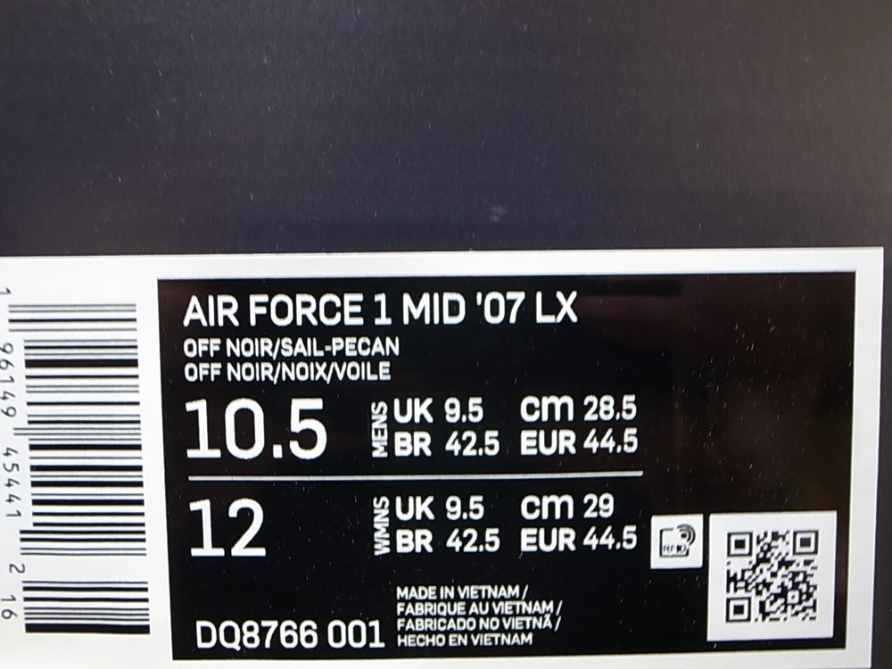 DESCRIPTION Item: 2022 NIKE AIR FORCE 1 MID ’07 LX VINTAGE OFF-NOIR/SAIL-PECAN Style Number: DQ8766-001 Size: US10.5/UK9.5/28.5cm Condition: Brand New With Original Box 100% AUTHENTIC OR YOUR MONEY BACK SHIPPING Package will usually reach you within 1 week - 10 days. Shoes will be double boxed. INTERNATIONAL BUYERS ・Import duties, taxes and charges are not included in the item price or shipping charges. These charges are the buyer’s responsibility. ・ Please check with your country’s customs office to determine what these additional costs will be prior to bidding/buying. ・ These charges are normally collected by the delivering freight (shipping) company or when you pick the item up - do not confuse them for additional shipping charges. Please check my feedback and bid with confidence. If you have any questions, let me know before you make a bid. THANK YOU FOR LOOKING