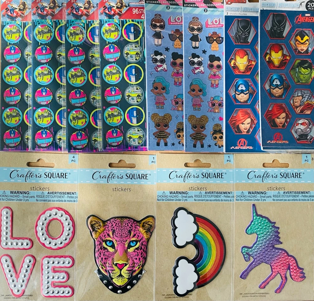 HUGE Mixed Sticker Lot | The Ultimate Kit | Qty. 299+ Stickers | High Quality Only! Fun Assortment of Puffy, Scrapbook, Cartoons, Bubble, Pop Up Stickers Packs For Everyone! You will receive 19+ Sticker Sheets of beautiful colorful assortment. The Pack will include 299+ Stickers overall! I have included a large variety of pictures of the assortment available. The pictures give you an idea of what you will be receiving. Please Note: You will not receive everything pictured. Please contact me with any special requests. This HUGE Variety of fun designs stickers can be used in parties, classroom, school and home, good for reward for students, potty training, adding inside a birthday card, game activities, entertaining toddlers, etc. Perfect Gifts for Kids & all Occasions: Can be given as a gift for kids, girls, boys, toddlers, teens, students, friends, and classmates, they will love it!