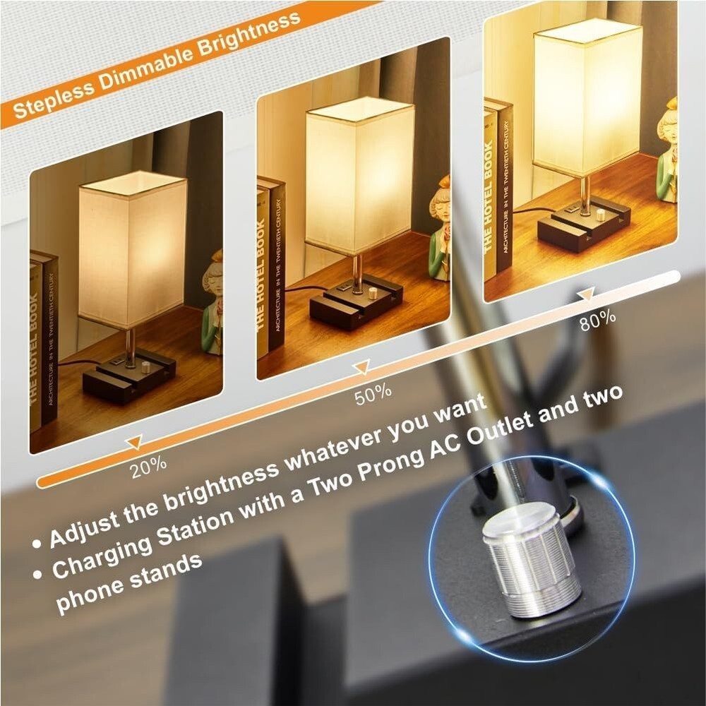 Finish Type Coated Base Material Metal Bulb Base E26 Product Dimensions 4.7"D x 8.2"W x 15"H Item Weight 3 Pounds About this item Decorated with white lampshade, these dimmable lamps are designed to be eye-catching in any setting. The touch control function allow you to turn on/off the light or adjust the light brightness (Low, Medium, High, Off). Charging your electronic devices through two USB ports will save you the hassle of finding a charging device while you are working or sleeping. Built-in two phone stands can hold your phones, kindles or other devices, save more space than a typical vertical bedside lamp and keep your office desk, nightstand, end table clean and neat. Each set of 2 lamps comes with two Edison dimmable bulbs, reducing the time you spend searching for compatible bulbs. They offer very soft light by creating the cozy ambience. The plug, switches, cord and socket are all certified in the US. This usb lamp can make a thoughtful gift for a trendy friend or loved one who needs a little extra light in the home