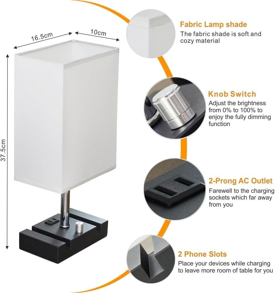 All orders will be shipped from our warehouse in the USA. Delivery time : 1-5 working days We Always trying to bring high quality products and the best service experience to you. Please send me the message if you have any problem need for help before open the dispute. Finish Type Coated Base Material Metal Bulb Base E26 Product Dimensions 4.7"D x 8.2"W x 15"H Item Weight 3 Pounds About this item Decorated with white lampshade, these dimmable lamps are designed to be eye-catching in any setting. The touch control function allow you to turn on/off the light or adjust the light brightness (Low, Medium, High, Off). Charging your electronic devices through two USB ports will save you the hassle of finding a charging device while you are working or sleeping. Built-in two phone stands can hold your phones, kindles or other devices, save more space than a typical vertical bedside lamp and keep your office desk, nightstand, end table clean and neat. Each set of 2 lamps comes with two Edison dimmable bulbs, reducing the time you spend searching for compatible bulbs. They offer very soft light by creating the cozy ambience. The plug, switches, cord and socket are all certified in the US. This usb lamp can make a thoughtful gift for a trendy friend or loved one who needs a little extra light in the home