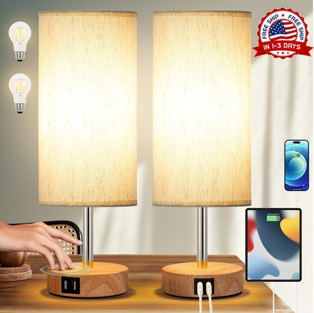 2PCS Lampara De Mesa Con Control Tactil Lamparas De Noche Regulables De 3 Vias ✔️【Diseño minimalista para el hogar】: esta lámpara de mesa regulable con control táctil es de tamaño pequeño, lo que es realmente perfecto para decorar cualquier lugar de su casa. Una lámpara de mesa USB ideal para la sala de estar, el dormitorio, la sala de estudio, la habitación de los niños, etc. Agregue un ambiente cálido y confortable a su dormitorio o sala de estar. ✔️【Brillo cómodo】: nuestra pequeña lámpara de escritorio crea una sensación agradable y reconfortante en la casa cuando pasa tiempo con su familia, ya que la pantalla de tela de lino suaviza la luz y la protege mejor para sus ojos. ✔️【Control táctil suave regulable de 3 vías】: la lámpara de mesita de noche regulable ofrece 3 opciones de nivel de brillo (bajo, medio, alto). Simplemente toque en cualquier parte de la base de metal para ajustar la iluminación para satisfacer sus diferentes necesidades. Luz de noche para un sueño reparador o lactancia. Iluminación de acento para un ambiente cálido. Brillo alto y cómodo adecuado para estudiar o trabajar. Súper práctico para operar. ✔️【Prácticos puertos de carga USB duales】- Agregamos 2 puertos de carga USB integrados de alta calidad (5V/2.1A) dentro de nuestra lámpara de escritorio con control táctil. Puede cargar sus teléfonos móviles, Kindle, auriculares, difusor, parlantes u otros dispositivos electrónicos sin importar si la lámpara está encendida o apagada.