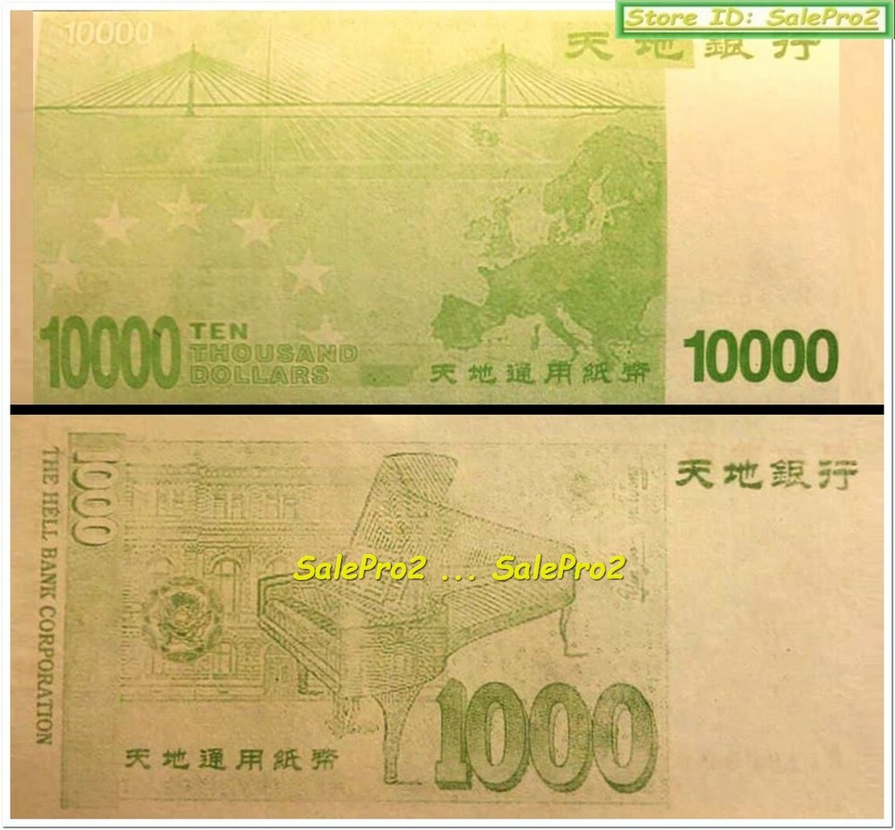 2x CHINA HELL BANK $1000 + $10000 DOLLAR JOSS PAPER HELL NOTES BANKNOTES LOT UNC (2) CHINA HELL BANK ** $1000 + $10000 DOLLAR JOSS PAPER ** HELL NOTES BANKNOTES HELL NOTES ARE IN NEW & UNCIRCULATED CONDITION Hell Notes , in many Chinese religious traditions, used usually beneath the earth, of the unredeemed dead or the spirits of the damned, in the grave right beside the dead person's body, to have some cash money, to live well & spend in the next Life Shipping : 2.25 CANADA, 2.55 USA & 4.55 International (Worldwide) We ship rapidly on daily basis in Safe & Secure packaging to all destinations Additional item shipping fee is 25c (Canada & USA) as well as (International) We ship all orders within 24-48 hours as soon as your payment reaches us cleared All pictures are Watermarked with our User id or Store name to prevent image piracy Paypal is our only online payment method, other methods are available during the checkout