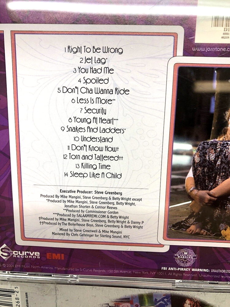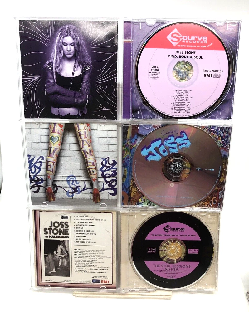 This Joss Stone CD set is fantastic—three amazing albums in great condition! Her soulful voice shines in every track, and the discs play perfectly. A must-have for any fan of powerful, heartfelt music. The inserts are mostly in excellent shape too. Highly recommended!