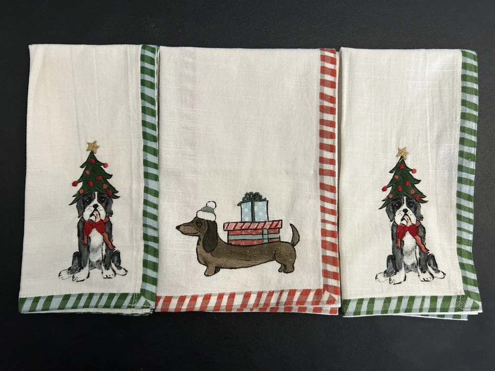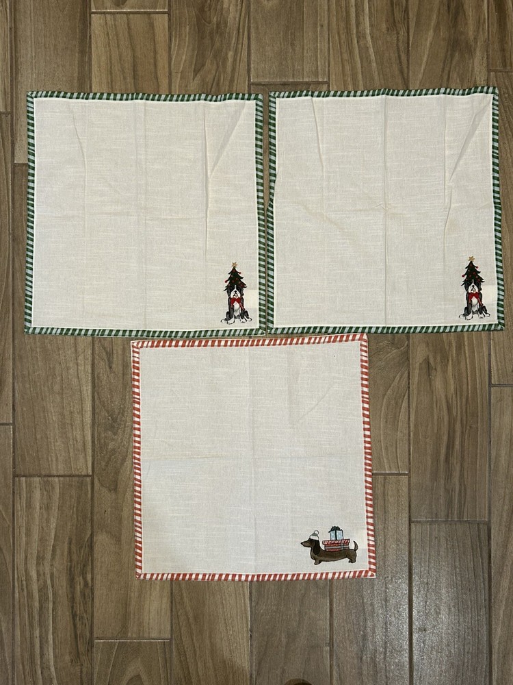 Add some holiday cheer to your kitchen with these adorable Creative Co-op napkins featuring a charming Dachshund design. Made of high-quality cotton, these square napkins are perfect for use during the Christmas season or any time of year when you want to add a touch of whimsy to your table setting. With a multicolor design that includes printed and embroidered details, these napkins are sure to be a hit with dog lovers and holiday enthusiasts alike. Each pack contains three square napkins, making them a great addition to any home or gift for a friend or family member. Machine washable for easy care, these napkins are both functional and stylish.