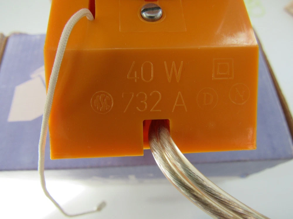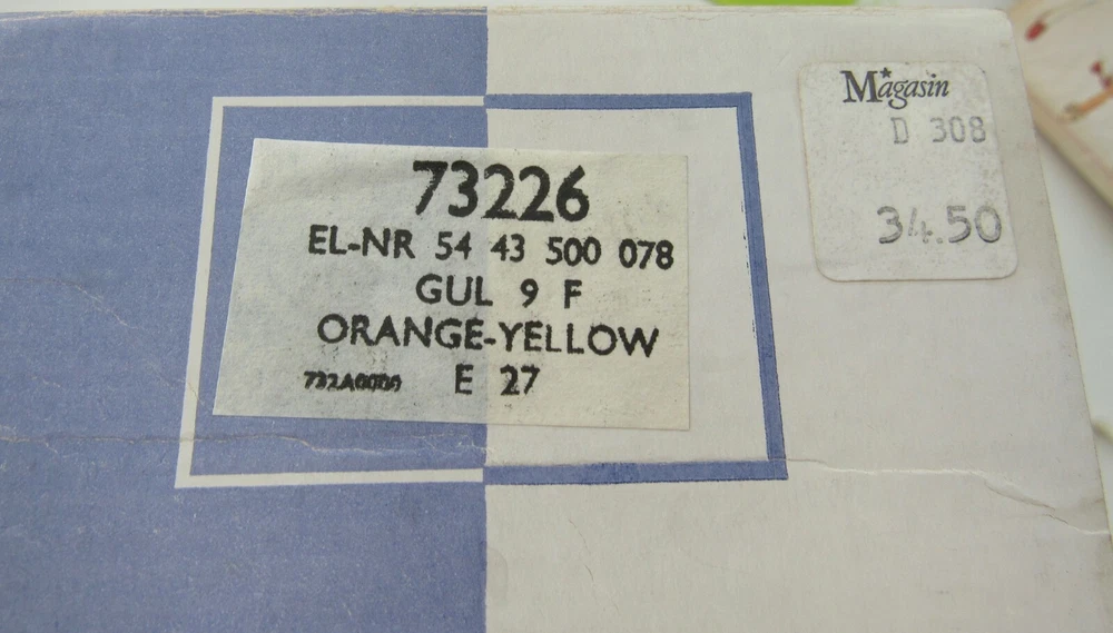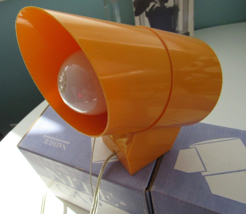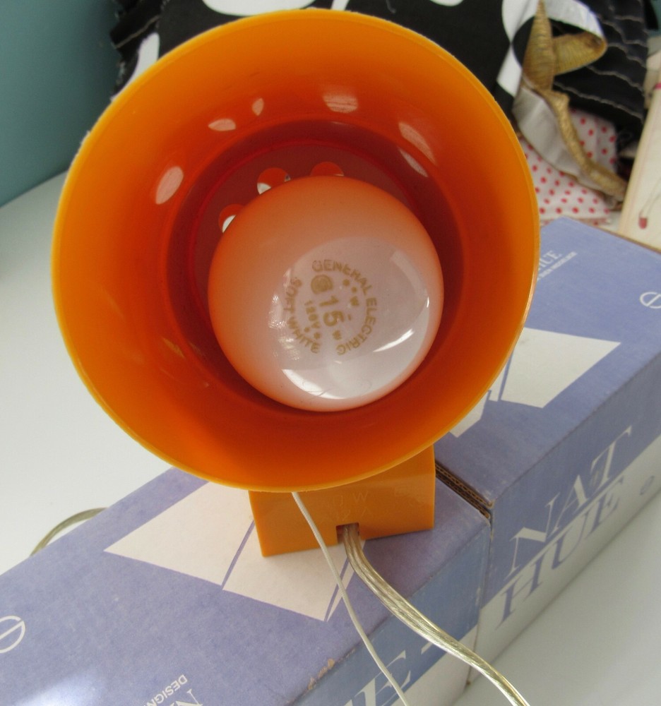 There are 3 of these lights 2 of which are still in their boxes. According to the tag on the boxes there were purchased from Magasin a department store in Copenhagen. Originally manufactured in the 1970's by Fogg and Morup by Sven Middelboe. Yellow Orange in color they have attachments on the back for hanging on the wall or ceiling. Pull string for on and off and can be either hard wired or have a plug installed. Price is for each.