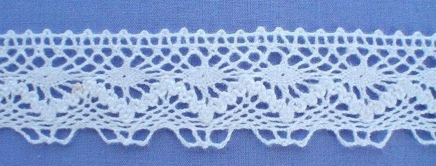 White Cotton Lace. Measuring 32mm wide, and 1 metre long, this lovely lace is suitable for a wide range of items, including clothing, craft work etc, etc. The price is for one metre. If more than one metre is purchased it will come as a continuous length Please feel free to email if you have any questions. We're more than happy to combine purchases to save on postage costs. Happy eBaying!! Stock code 21153