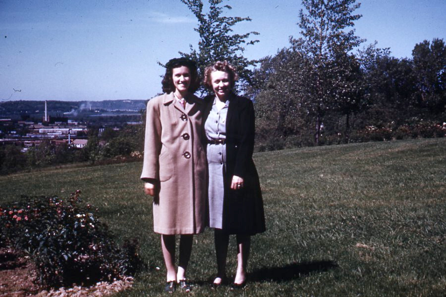 This vintage Kodachrome slide captures such charm—beautiful women posing gracefully in a park, radiating timeless elegance. The warm orange border adds a nostalgic touch, and the image quality holds up wonderfully despite its age. A perfect little window into the past for collectors or decor!