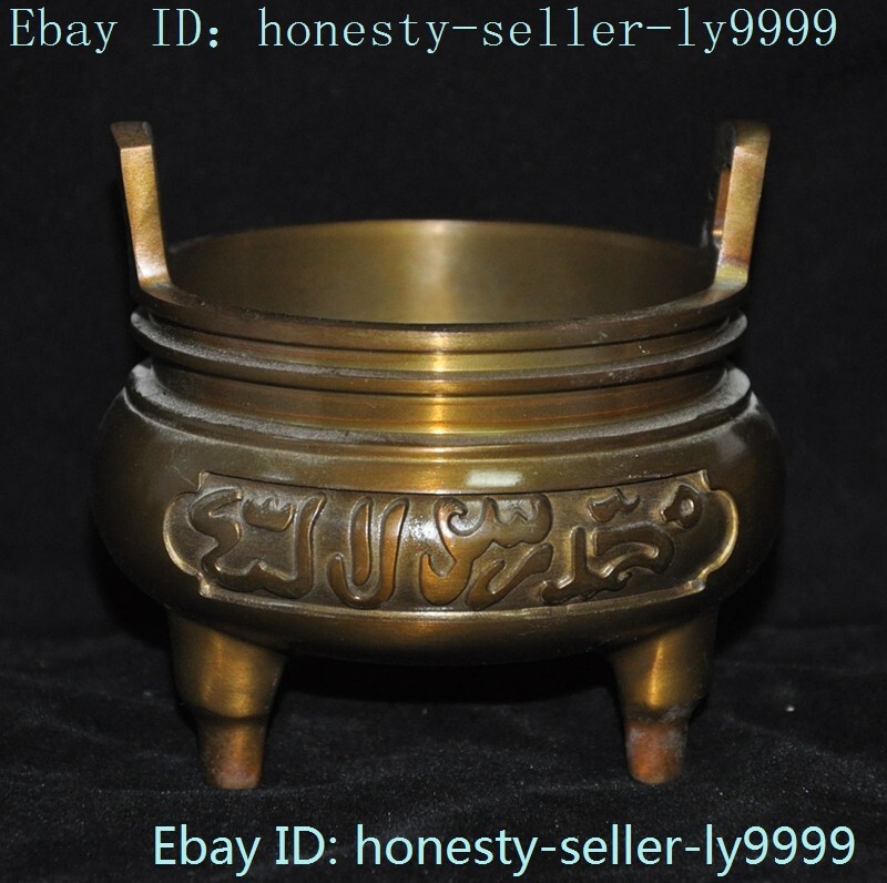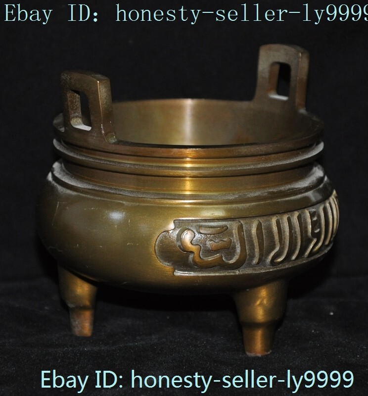 Here is an 3.8" Tibet buddhism Joss Pure bronze Islamic text statue Incense burner Censer , It is in good condition, and was created by skilled craftsmen in traditional style with fine handcrafts . This is a great piece of valuable collection, a valuable personal alter or a very good present. the handwork is very fine with incredible detailing. Don't miss out this chance to get it .Wish you good luck! Size: Height: 3.6 inches Length: 3.8 inches Width: 3.8 inch Size: Height: 9 cm Length: 9.5 cm Width: 9.5 cm Weight: 0.7 KG ---- Including the weight of the packaging material Material: Pure bronze Condition: Good condition Origin: China Airmail EMS shipping (7-15 days): Free D AJ BD 3H&LL Z