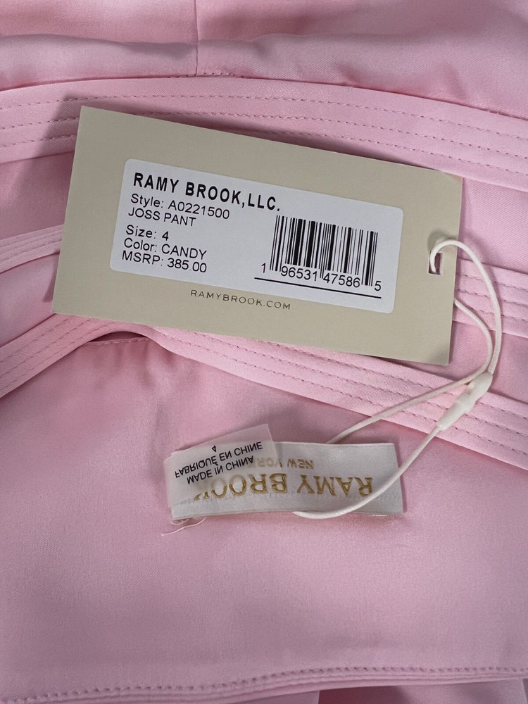 $385 Ramy Brook Women's Pink Satin Joss Wide-Leg Trouser Pants Size 4 Description Ramy Brook "Joss" trousers in a satin finish High rise Pleated front Slanted side pockets; back welt pockets Full length Wide legs Invisible side zip Polyester Imported Dry clean About Us We sell only 100% authentic clothing from new with tags to gently used. We have a 100% authentic or money back guarantee on every item we sell. Items are listed daily so make sure to put us on your favorite! We have been in business for over 10 years selling tens of thousands of designer items. We strive to meet your designer needs at a quality price! Payment Shipping Returns Payment accepted via paypal, credit/debit card. Shipping is usually within 24 hours of purchase (M-F). Super fast service. Tracked delivery. 100% satisfaction guaranteed. Please review our eBay return policy for more details.