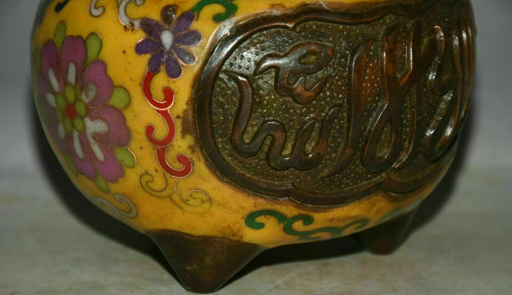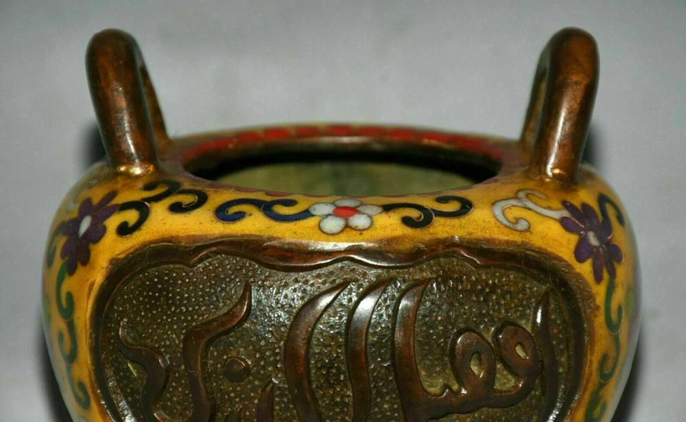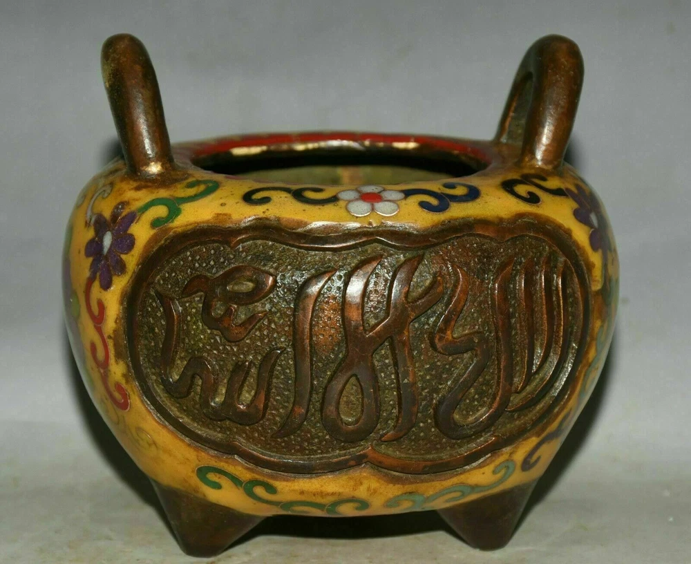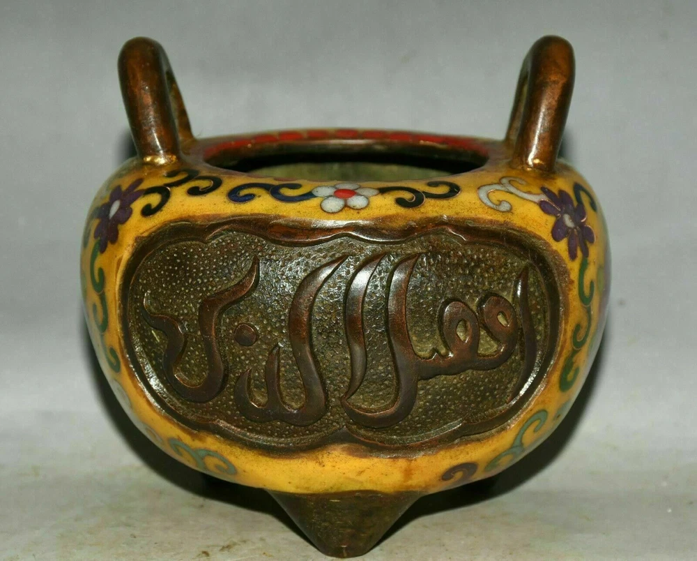 This beautiful 4" Cloisonné incense burner is a stunning piece of craftsmanship! The intricate Islamic calligraphy and vibrant colors make it a perfect decorative accent or functional burner. The copper base feels solid and well-made, with a traditional design that adds elegance to any space. It arrived carefully packaged and looks even better in person—great for gifting or personal use. Highly recommended for collectors or anyone who appreciates detailed artistry!