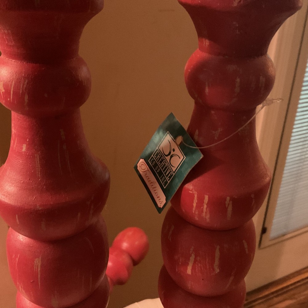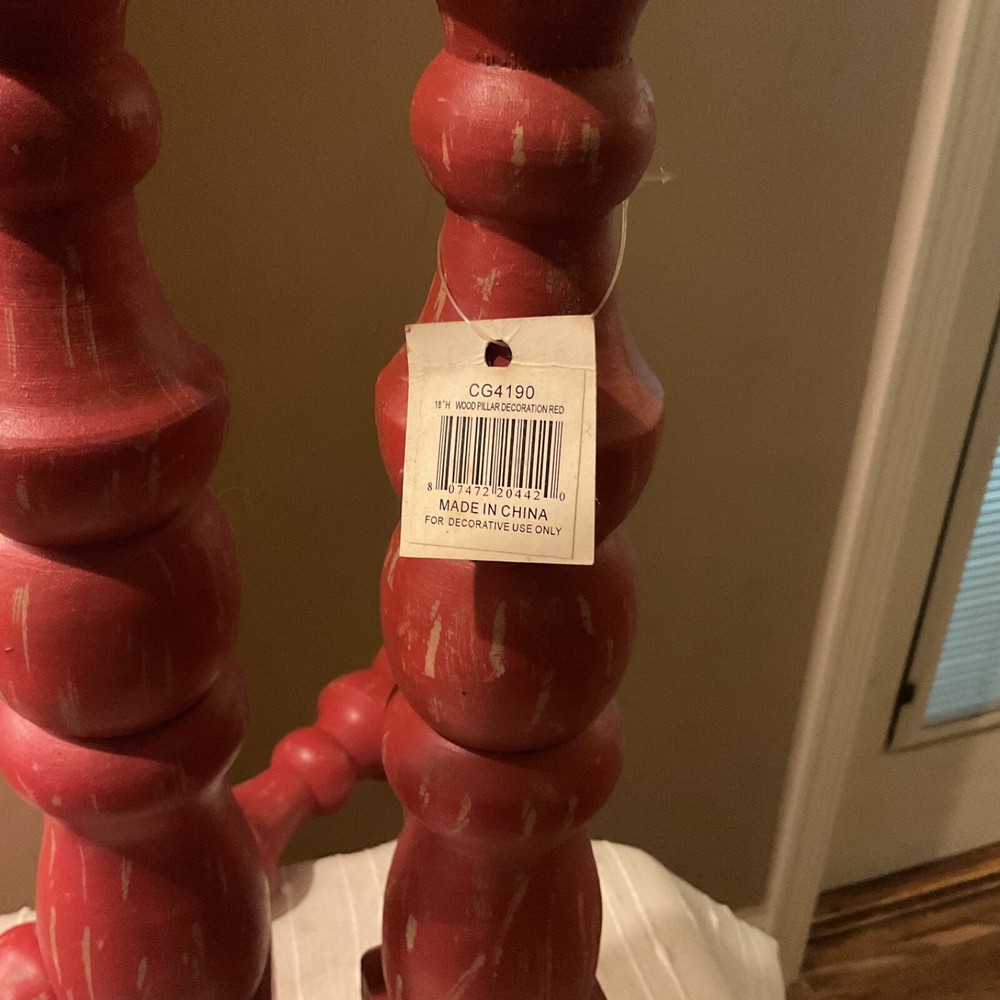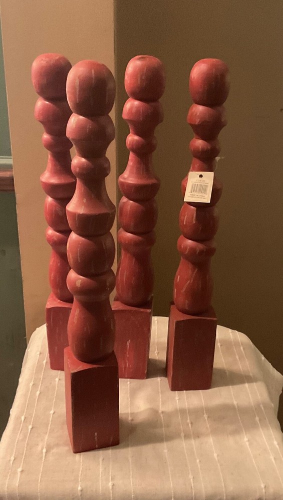 Add a touch of rustic charm to your home with this set of 4 creative cooperative red decorative 18” wood pillars....