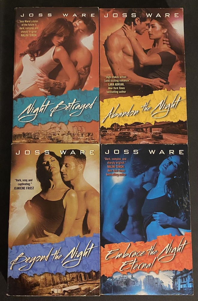 4 Joss Ware Books- Night Betrayed, Embrace the Night Eternal, Beyond the Night, and Abandon the Night All orders ship USPS media mail within 24 hours of payment. Please refer to pictures for condition of books. Thank you for your business and have a great day!