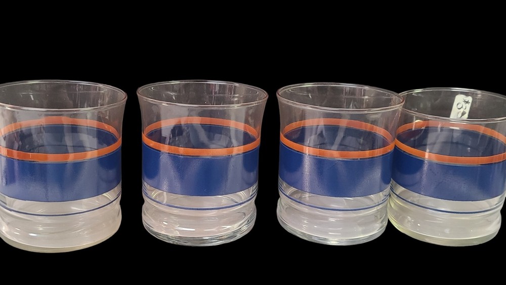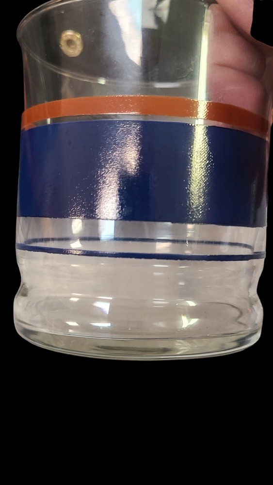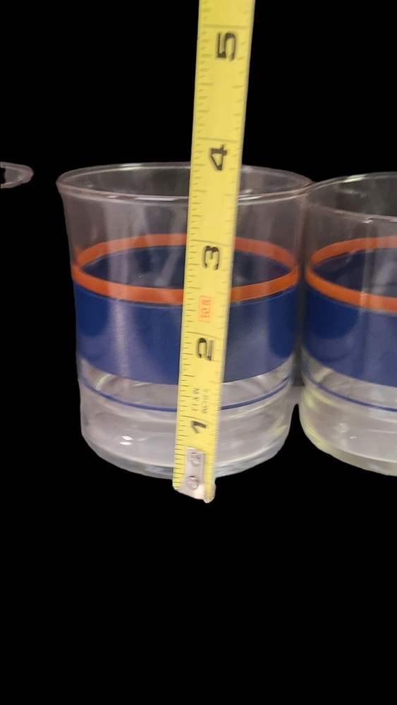 MCM Mid Century Libbey Glasses Tumblers Blue and Orange Horizontal Stripes. If you should have any questions prior to buying, please do not hesitate to contact me. Please review and enhance the photos as they are part of the description. Payment is required within 48 hours of purchase. After receiving payment your purchase will be shipped within ebays required shipping time. Thank you for looking. Please check out my other listings. When I list at auction, I will not end the bid early for a buy it now price.