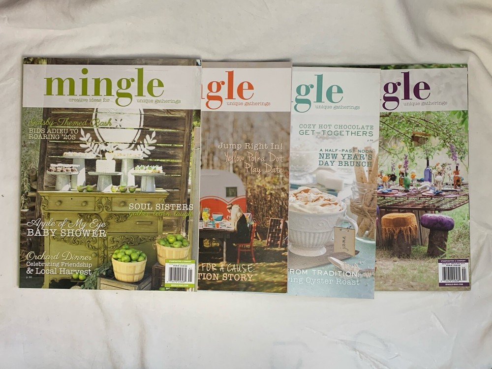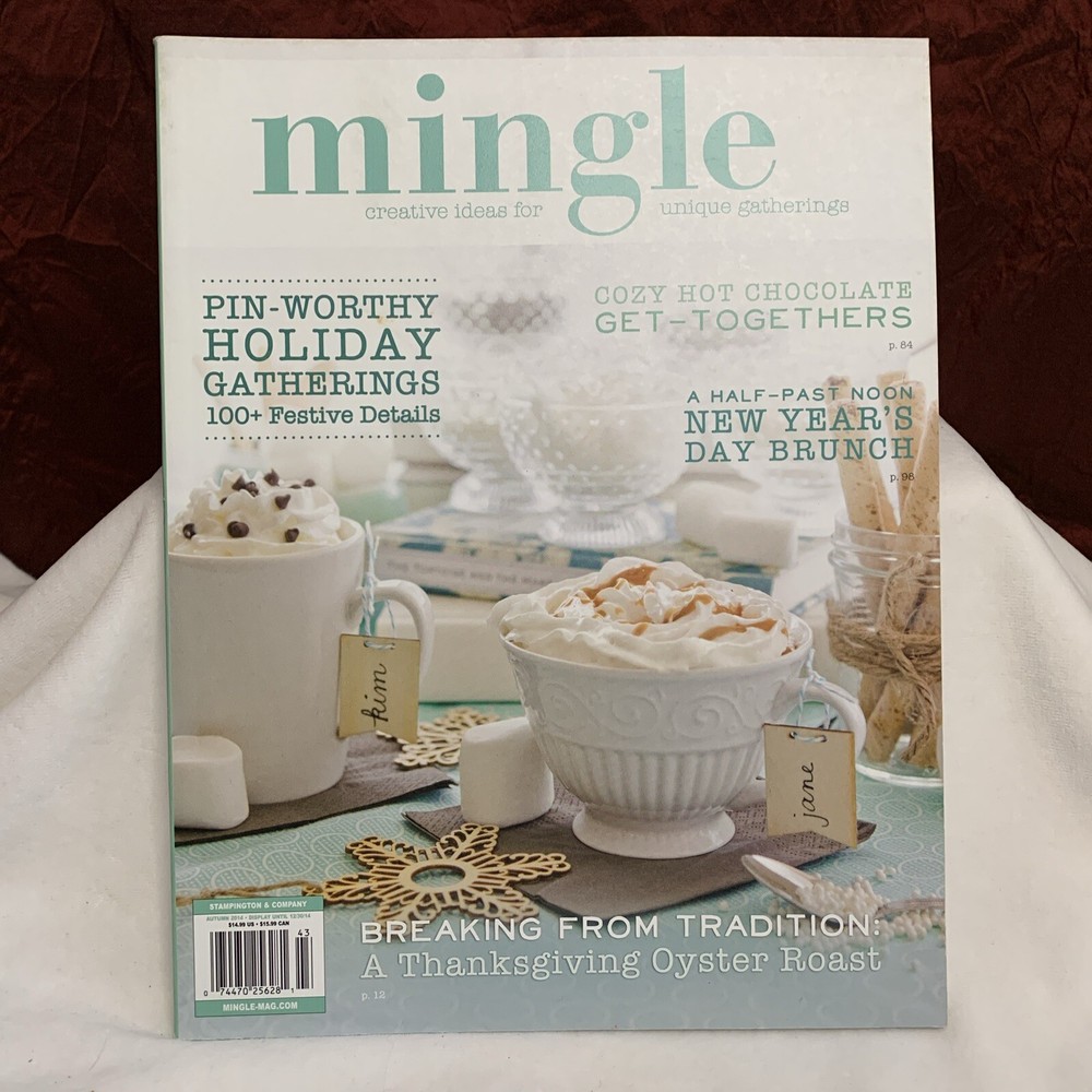 The product is a magazine titled "Mingle" published by Stampington & Co in 2014. It focuses on hobbies & crafts and women's interests, offering creative ideas for unique gatherings throughout all four seasons of the year. The magazine covers topics related to creativity, crafts, and women's interests. Lots of interesting articles and information. These magazines are in like new condition.