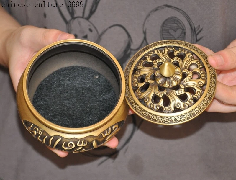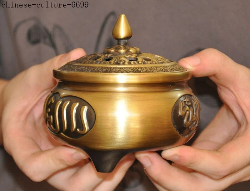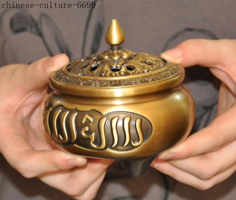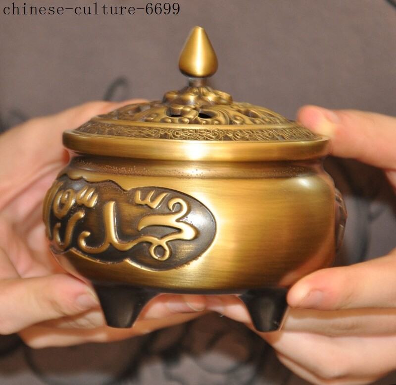 Here is an Marked Old Chinese bronze Buddhism Islamic text joss Incense Burner censer , As you can see the image, It is in good condition, and was created by skilled craftsmen in traditional style with fine handcrafts . This is a great piece of valuable collection, a valuable personal alter or a very good present. the handwork is very fine with incredible detailing. Don't miss out this chance to get it .Wish you good luck! Size:Height: 4 inch . Long: 3.8 inch . width: 3.8 inch Size:Height : 10 CM . Long: 9.5 cm . width: 9.5 cm Weight: 0.8 KG----included the weight of packing materials Materials: bronze Condition: Good condition Origin: China Shipping cost by Air Mail / EMS (7-15 days ) : $Free B L AJ DD we only accept paypal if you have any problems on payment,please inform us via ebay message . 1.We ship regularly Monday to Saturday (Beijing Time) and will ship your items within 1-2 days upon payment received. If we can not ship your item on time for some special reason, we will inform you via ebay message. 2.We are not responsible for nor can we offer any specific advices on import fees, duty, customs, VAT or taxes that you may have to pay when your order arrives. 3.We ship the items according to your Paypal address except the special notes from buyers! Be sure that your Paypal address is correct when you buy the items in ebay. We do not take responsibility for item loss due to wrong address. 4.Estimated delivery time: Shipping may be influenced by holidays, events and some other uncertainties. If you dislike the seemingly long shipping time, please think carefully to bid or buy the item. We do not want to get a negative or neutral or low DSR score because of shipping time. If you have special demand on shipping time, please inform me via ebay message. We want to give you a happy shopping experience, when you are not satisfied with our products, please contact us on EBAY, we are responsible seller, we will solve your problem, please believe us,thanks! If you're in any way dissatisfied with your purchase, let me know through "MY MESSAGES" or "Ask Seller Questions" or our mailbox. We will solve it for you. We are committed to ensuring that you are completely satisfied with every transaction. 100% Satisfaction guaranteed ! We will reply your mail with in 24 hours normally. Sometimes have a little delay due to the weekends or holidays. If you can't get our mail after 48 hours, please check your spam or contact to us via Ebay. In addition to contact us through eBay or you can send your message to our mailbox. Any question, please feel free to contact us, we will always do our best to serve you. Business Hours: Mon-Sat 9:00-17:30:00 (HongKong Time GMT+8:00)